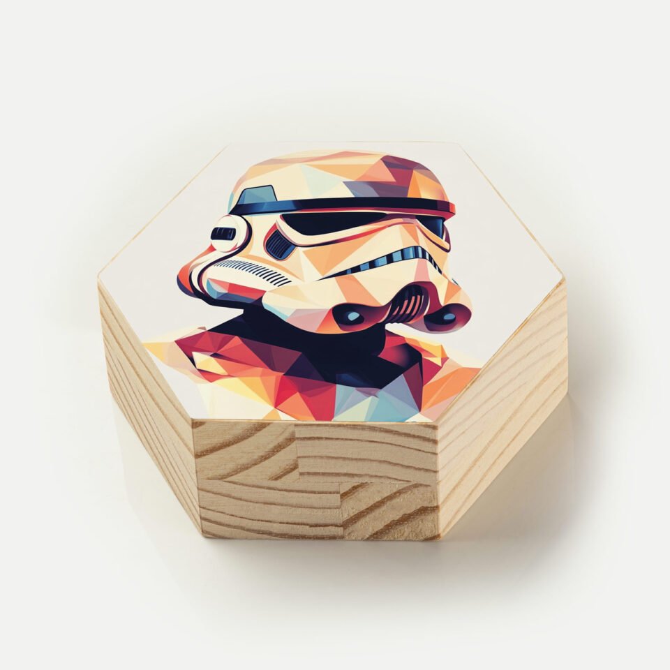 Totem com arte de stormtrooper LEGO em estilo vetorial. Ideal para fãs de cultura pop e decoração divertida.