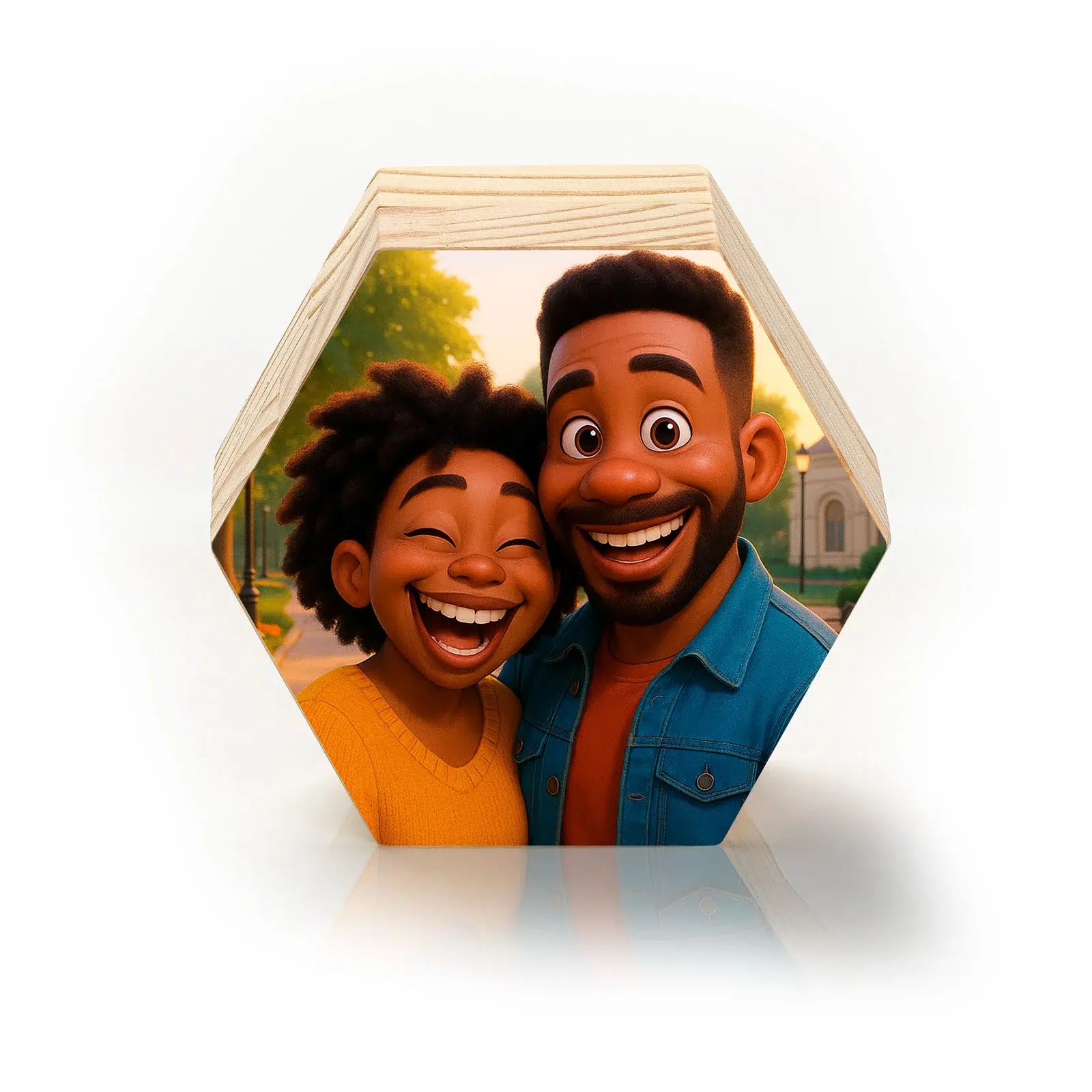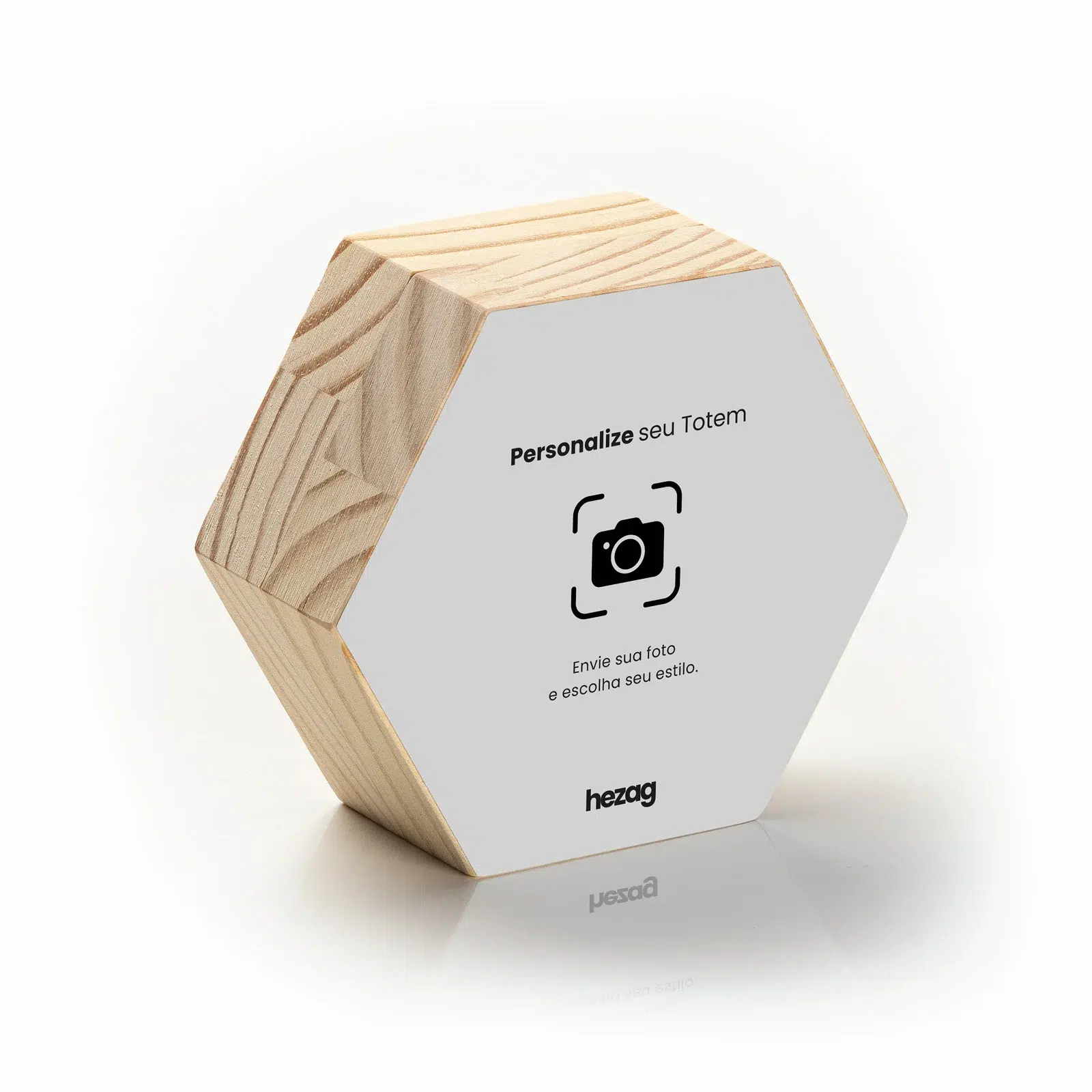 Com formato hexagonal e visual arrojado, o Totem Personalizado Hezag transforma sua foto em uma arte moderna e impactante. Escolha entre os estilos e receba uma peça feita com qualidade e afeto.
