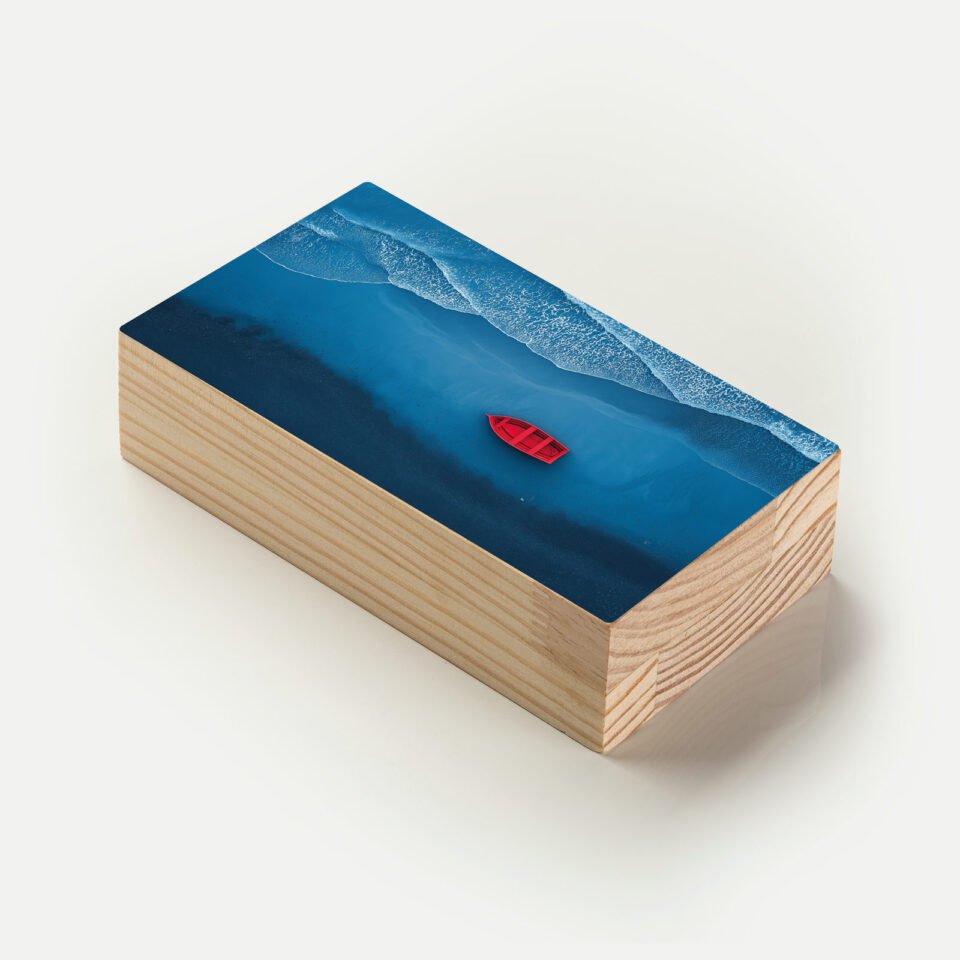 Um barco solitário em mar azul profundo: este totem evoca liberdade, introspecção e a beleza de navegar pelos próprios caminhos.