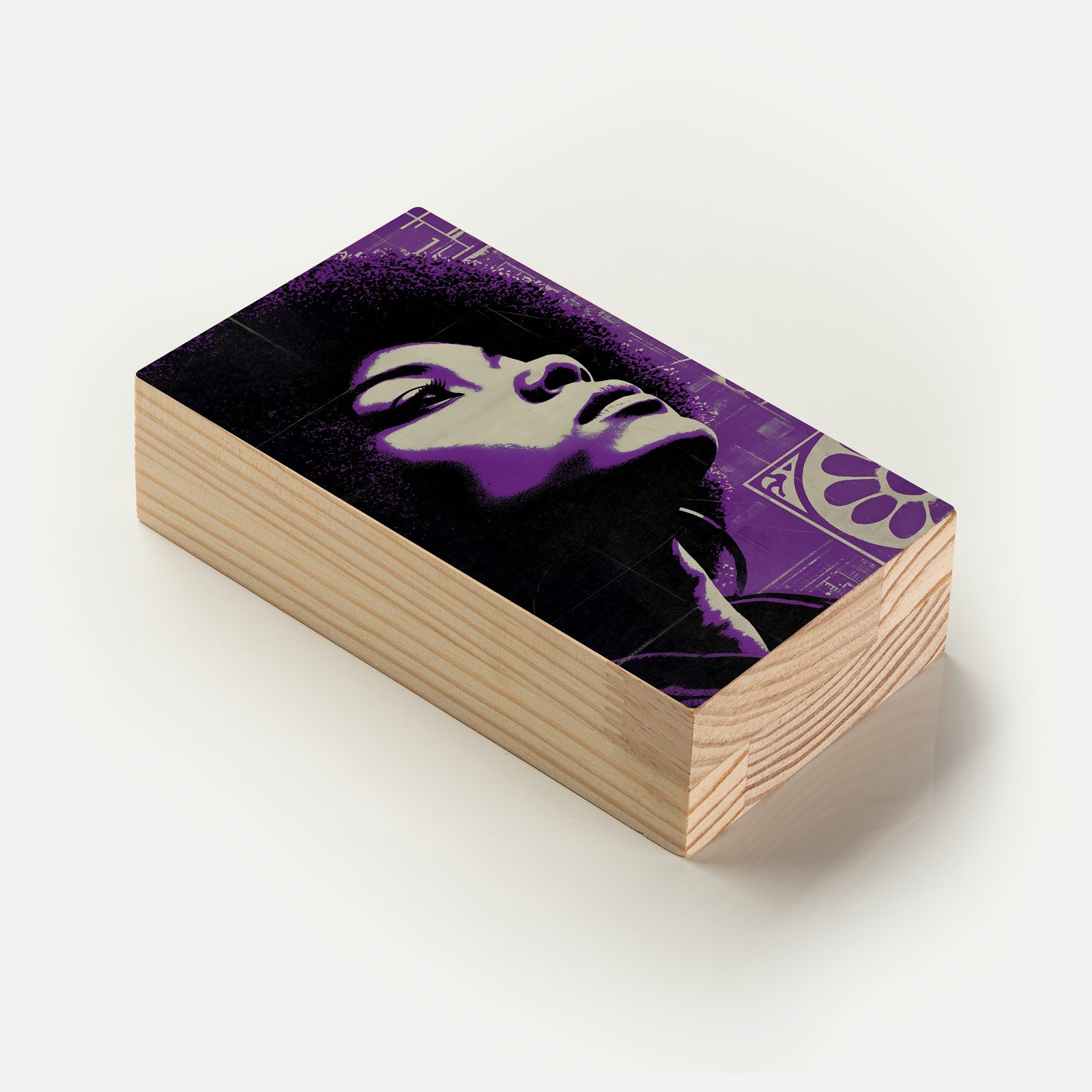 - Material: madeira pinus natural com impressão Fine Art e acabamento em metacrilato;