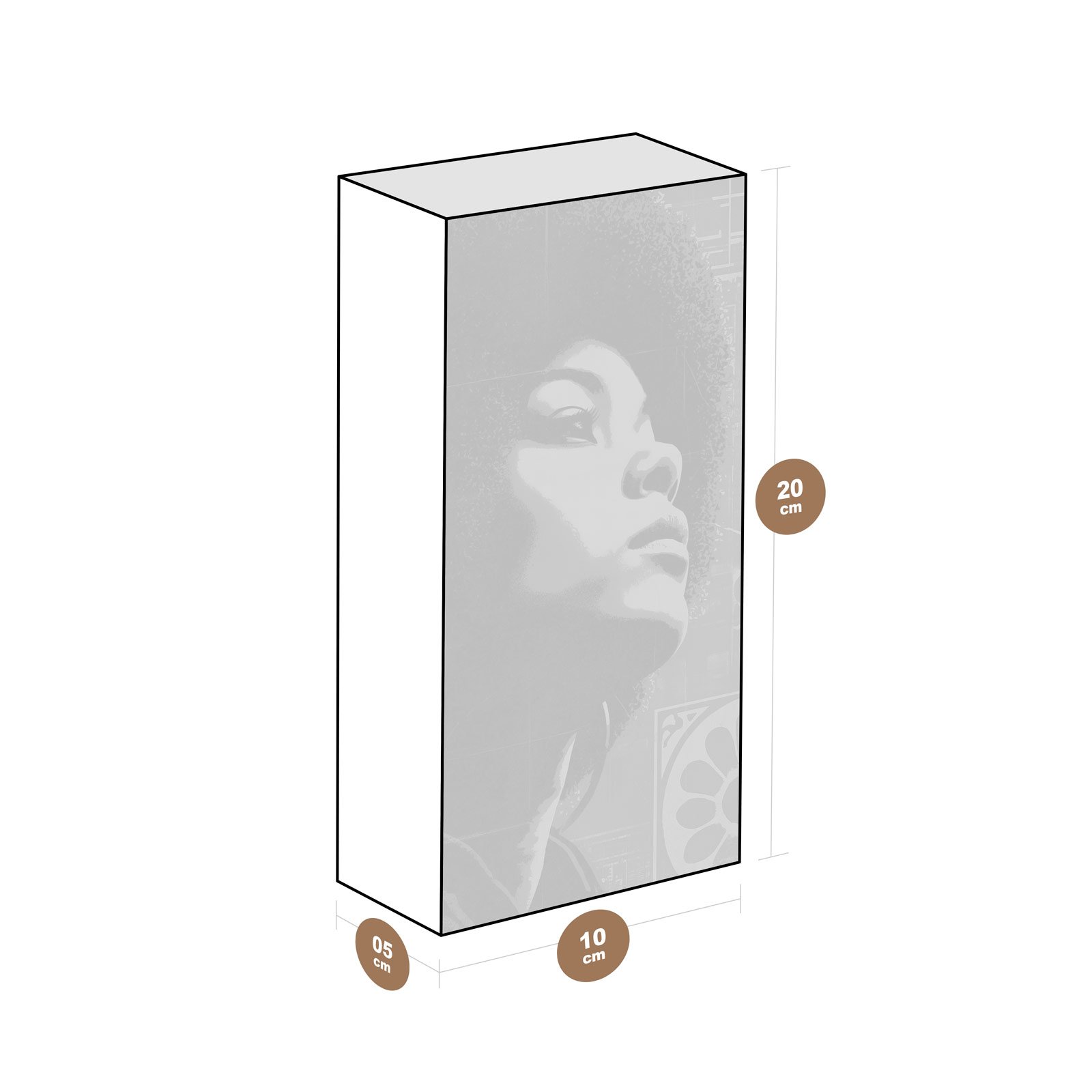 - Dimensões: 10 cm (largura) x 20 cm (altura) x 6 cm (profundidade);