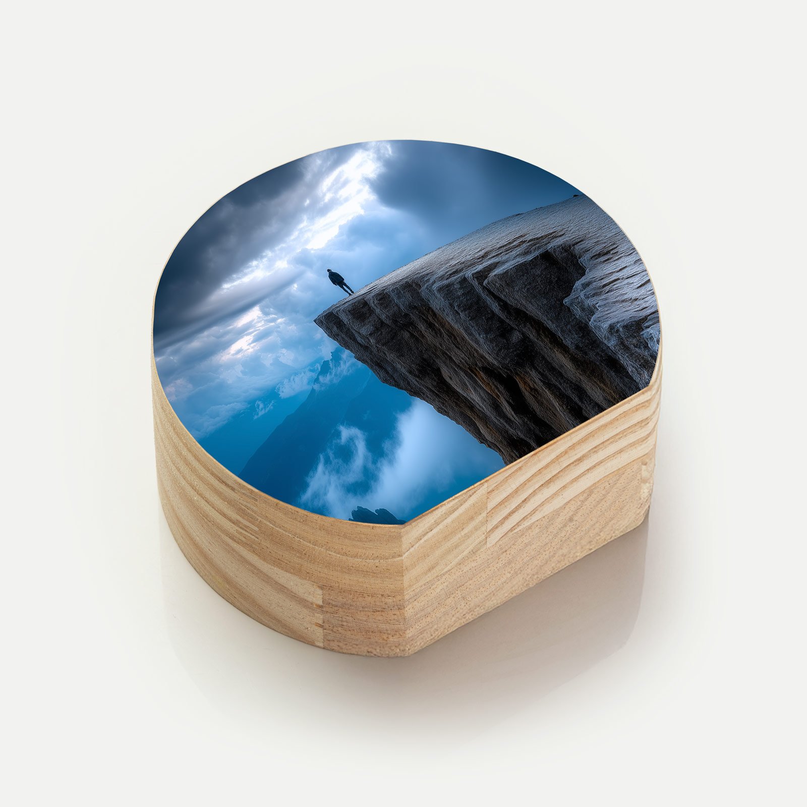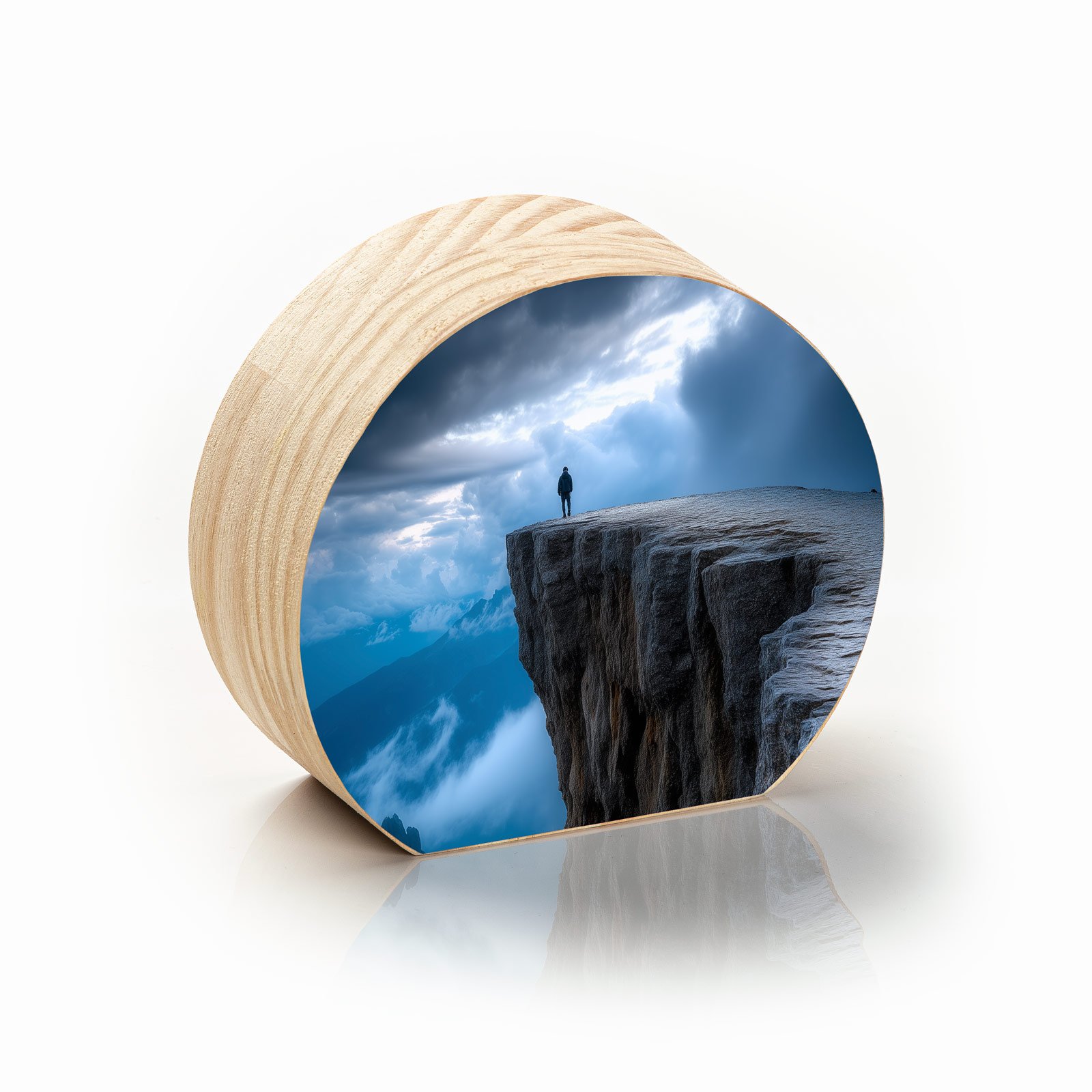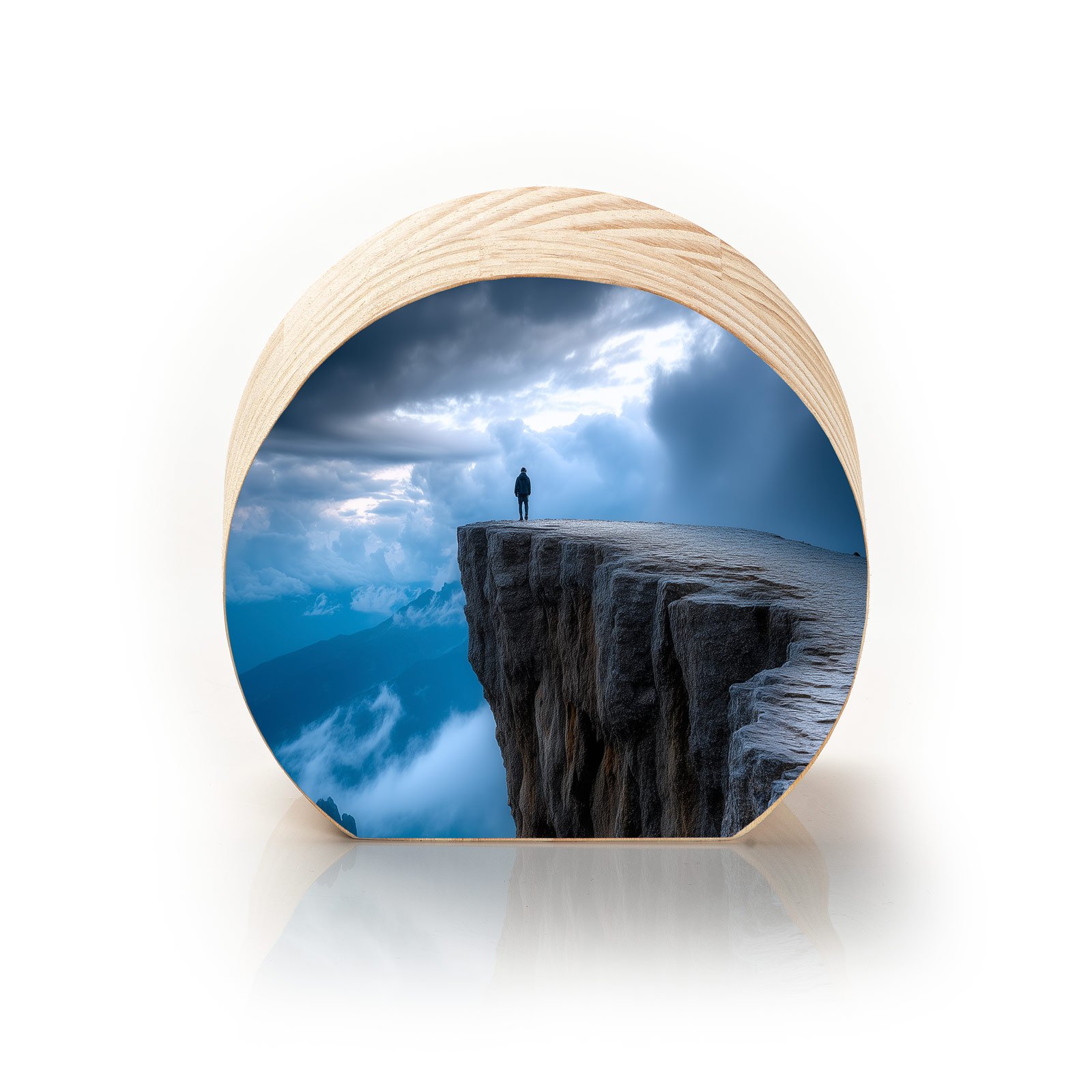 O “Além do Horizonte” simboliza a coragem de quem encara o desconhecido e contempla a vastidão da existência. A figura solitária diante do penhasco transmite introspecção, liberdade e a sensação de grandeza que a imensidão da natureza desperta.