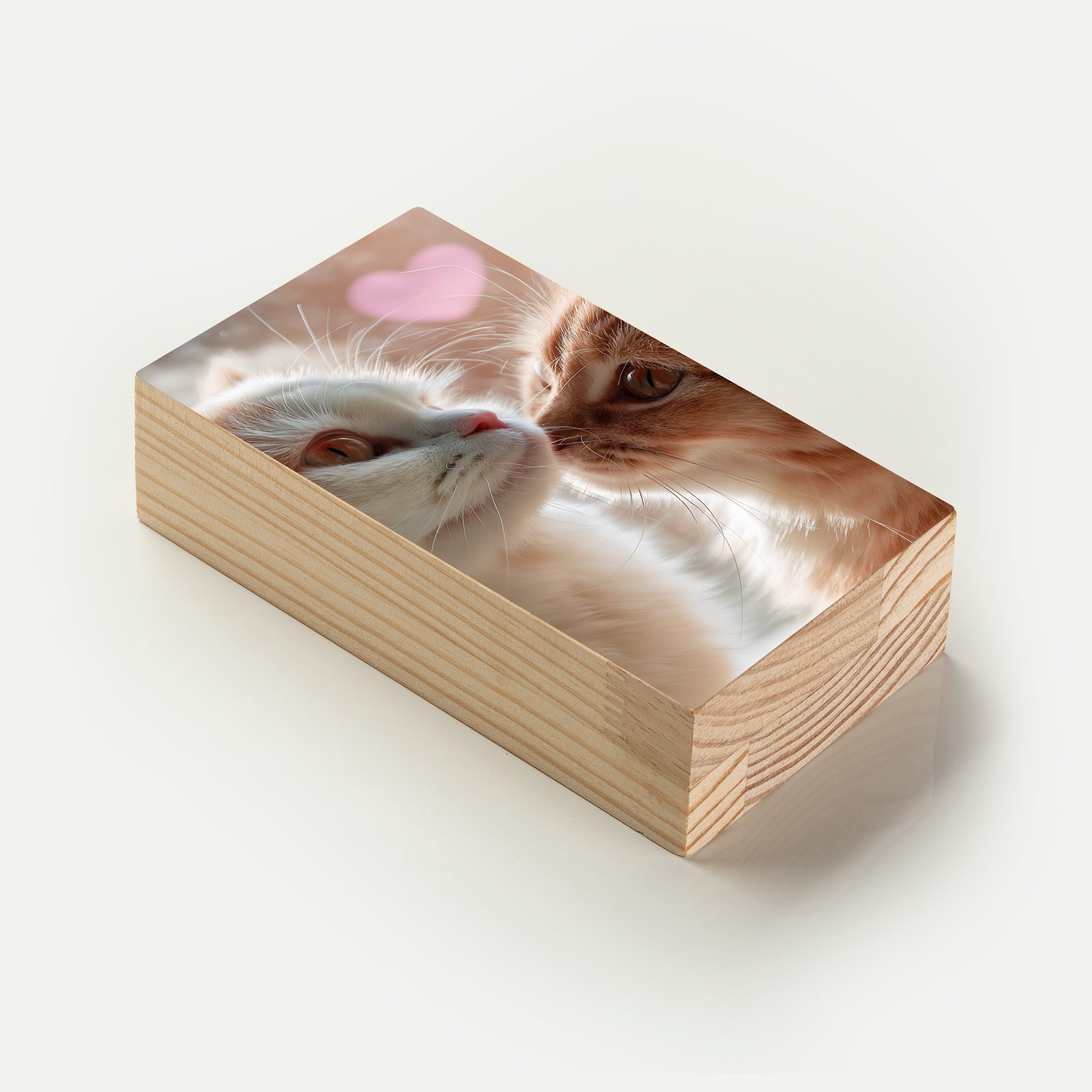 O “Amor Felino” celebra a ternura e a cumplicidade entre dois gatos que se encontram em um olhar apaixonado. Um detalhe delicado em forma de coração reforça a mensagem de carinho e aconchego que a peça transmite.