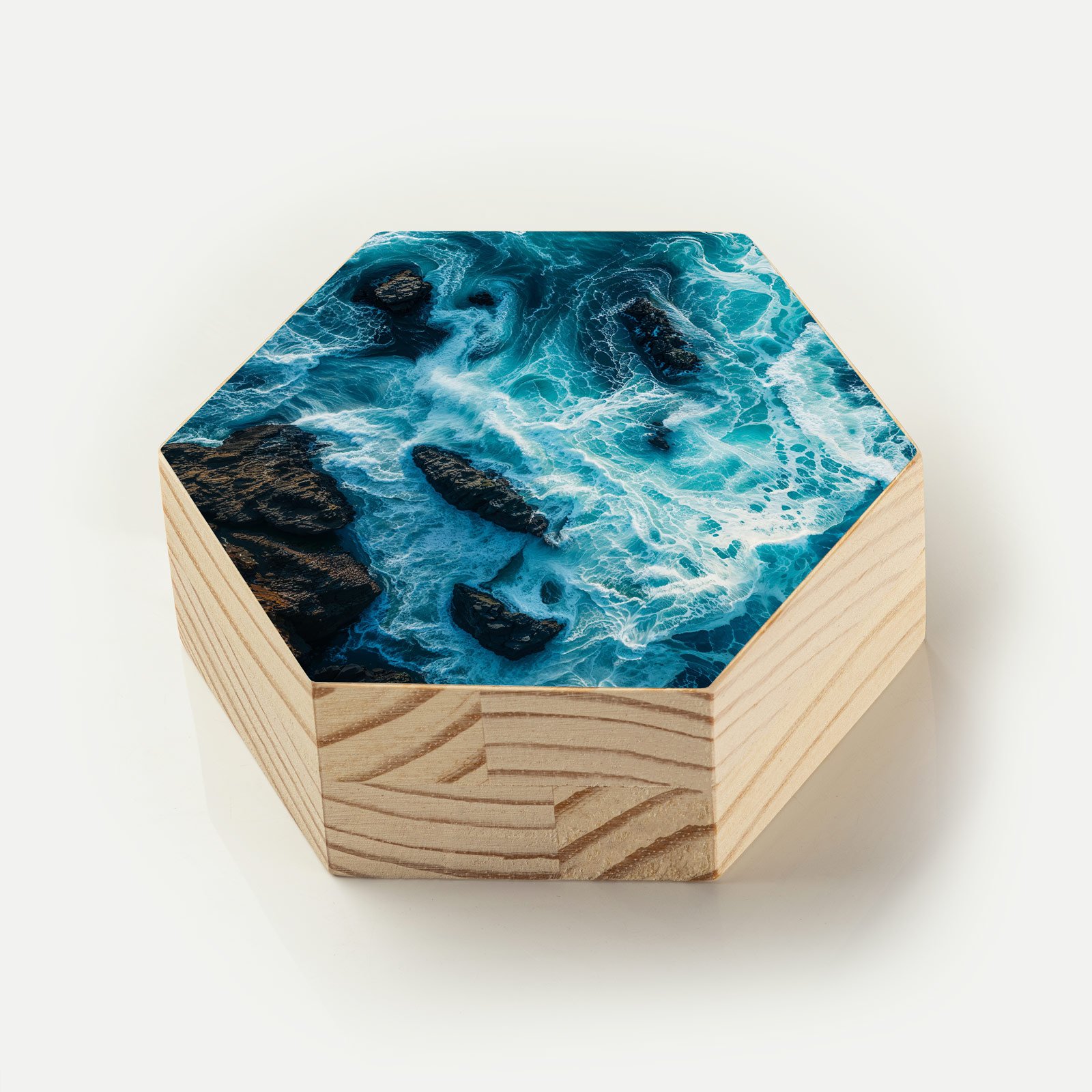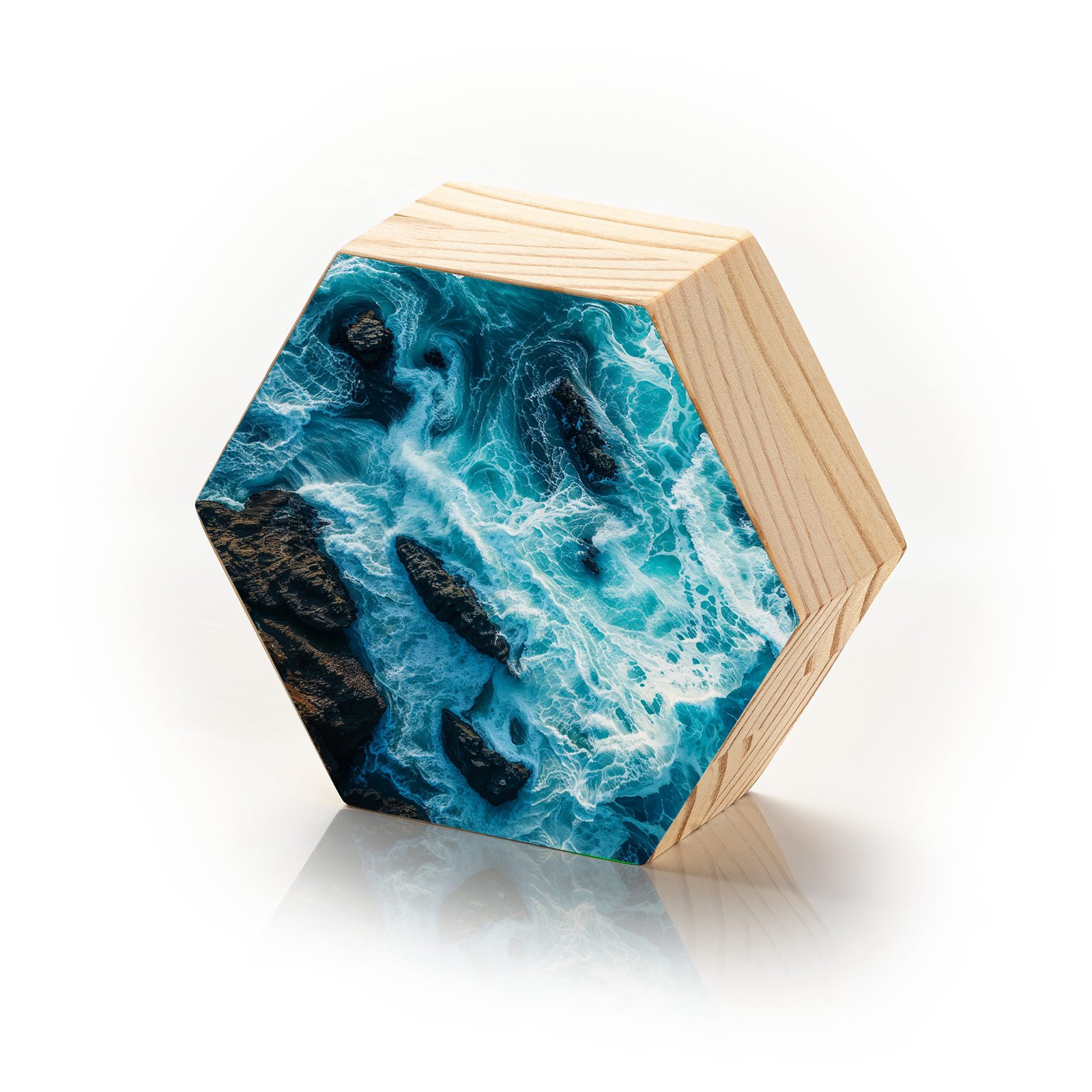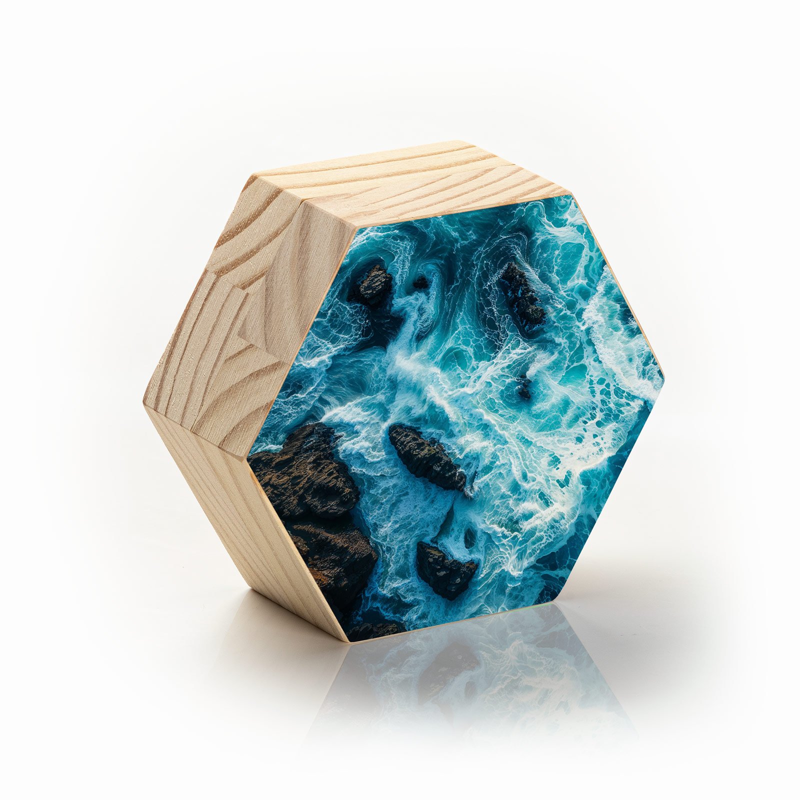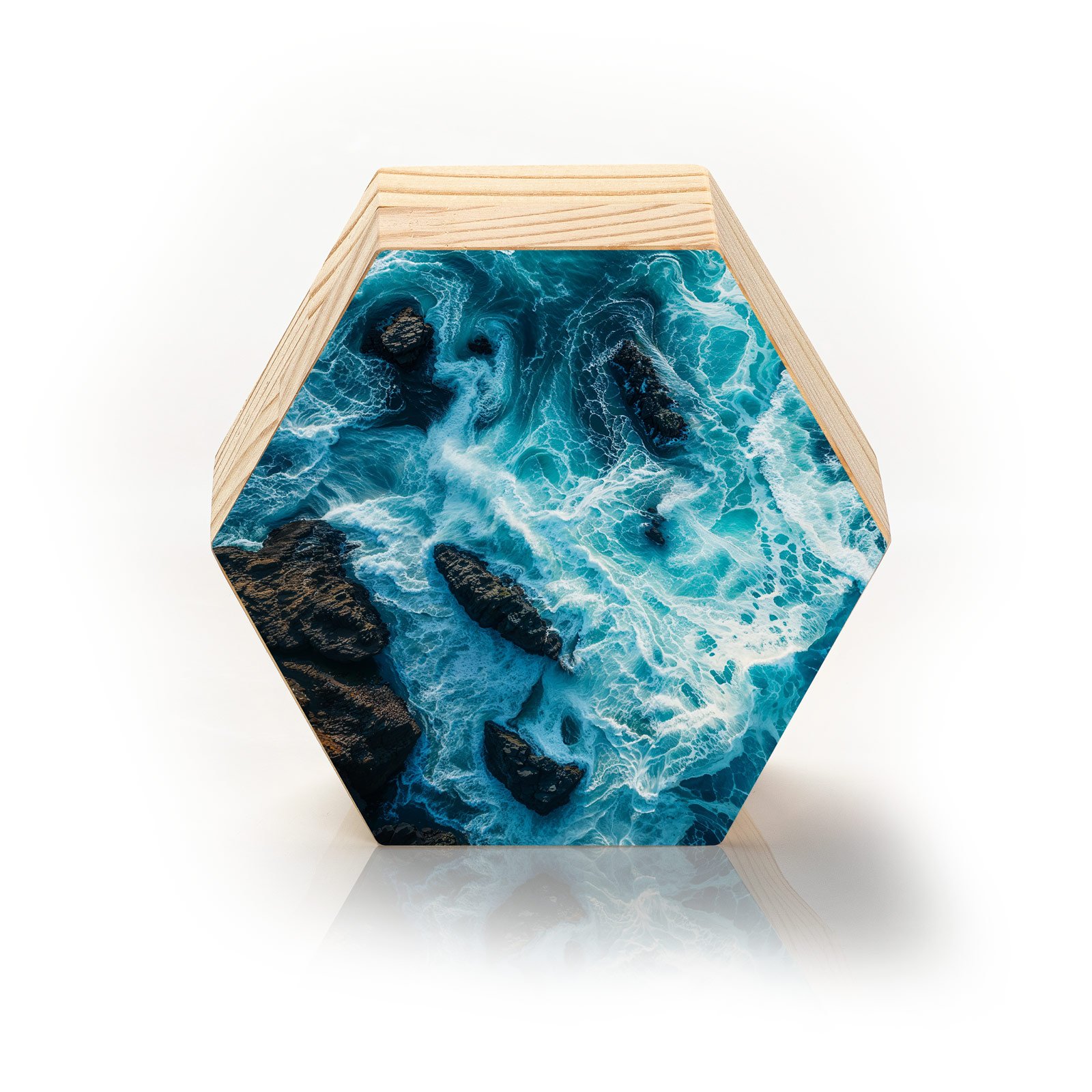 Debaixo da espuma branca, o mar carrega histórias profundas, segredos escondidos e uma força que nunca se apaga. O Totem Decorativo “Ânima do Oceano” captura o instante em que a energia das águas se choca com as pedras, revelando movimento, coragem e ancestralidade.