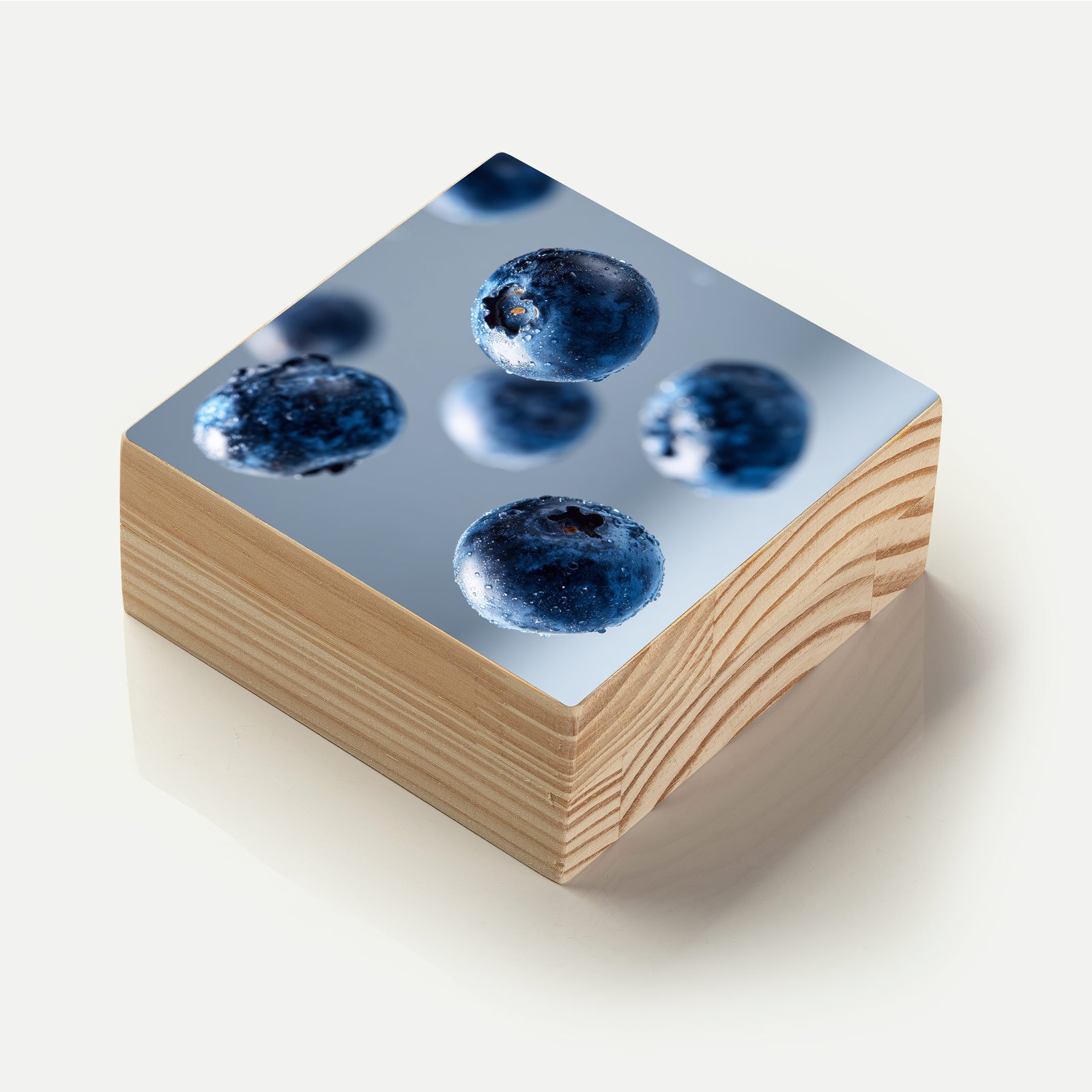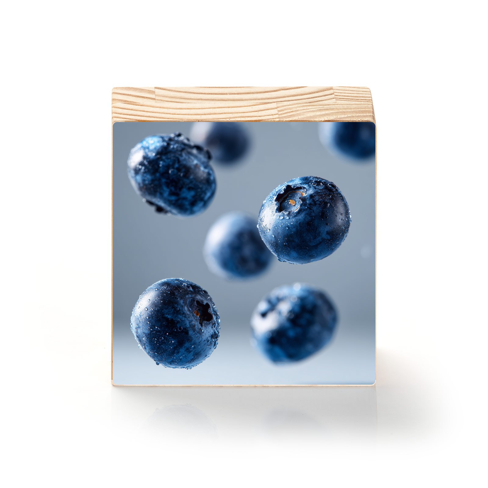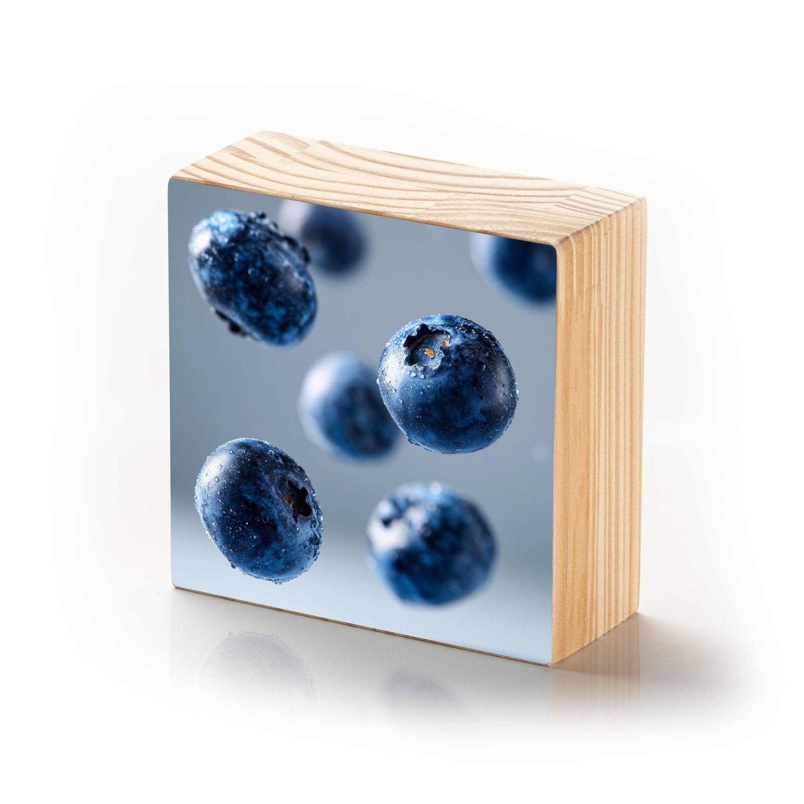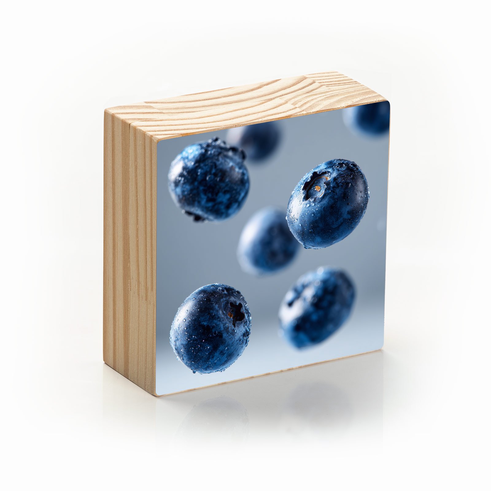 O “Blueberries em Suspensão” é uma celebração da leveza e da energia fresca da natureza. As frutas parecem flutuar no ar, cobertas por gotas cristalinas de água que reforçam sua pureza e vitalidade. Uma obra que transmite frescor, dinamismo e saúde em forma de arte.