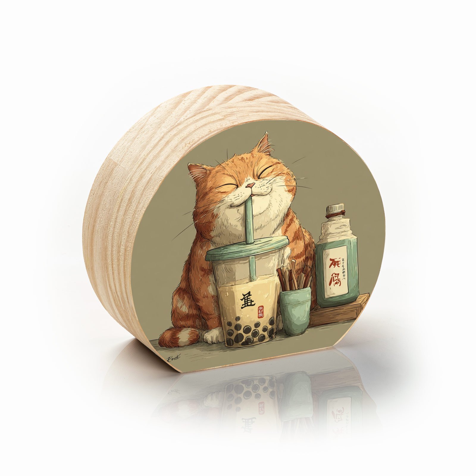 Com um ar de satisfação plena e olhos semicerrados de prazer, este simpático felino transforma cada gole de bubble tea em um ritual de felicidade. “Boba Cat Bliss” da Linha Luna, é uma ode aos pequenos prazeres, à doçura da vida e à arte de aproveitar o momento como se não houvesse pressa.