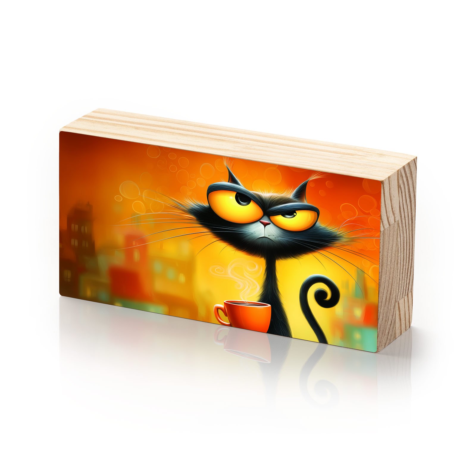 Com olhar afiado e expressão inconfundível, “Café & Ironia” retrata aquele momento em que o humor ácido encontra a primeira xícara do dia. A obra mistura carisma e irreverência em uma cena divertida, transformando a figura do gato em um ícone de atitude e estilo.
