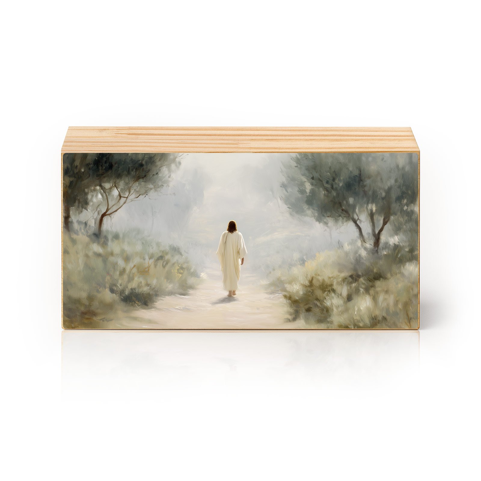 Em meio à névoa suave de um caminho sereno, a figura de Cristo caminha em direção à luz, convidando-nos a trilhar uma jornada de fé, esperança e renovação. O totem “Caminho da Paz” transmite silêncio, presença e propósito uma obra que fala à alma com ternura e profundidade.