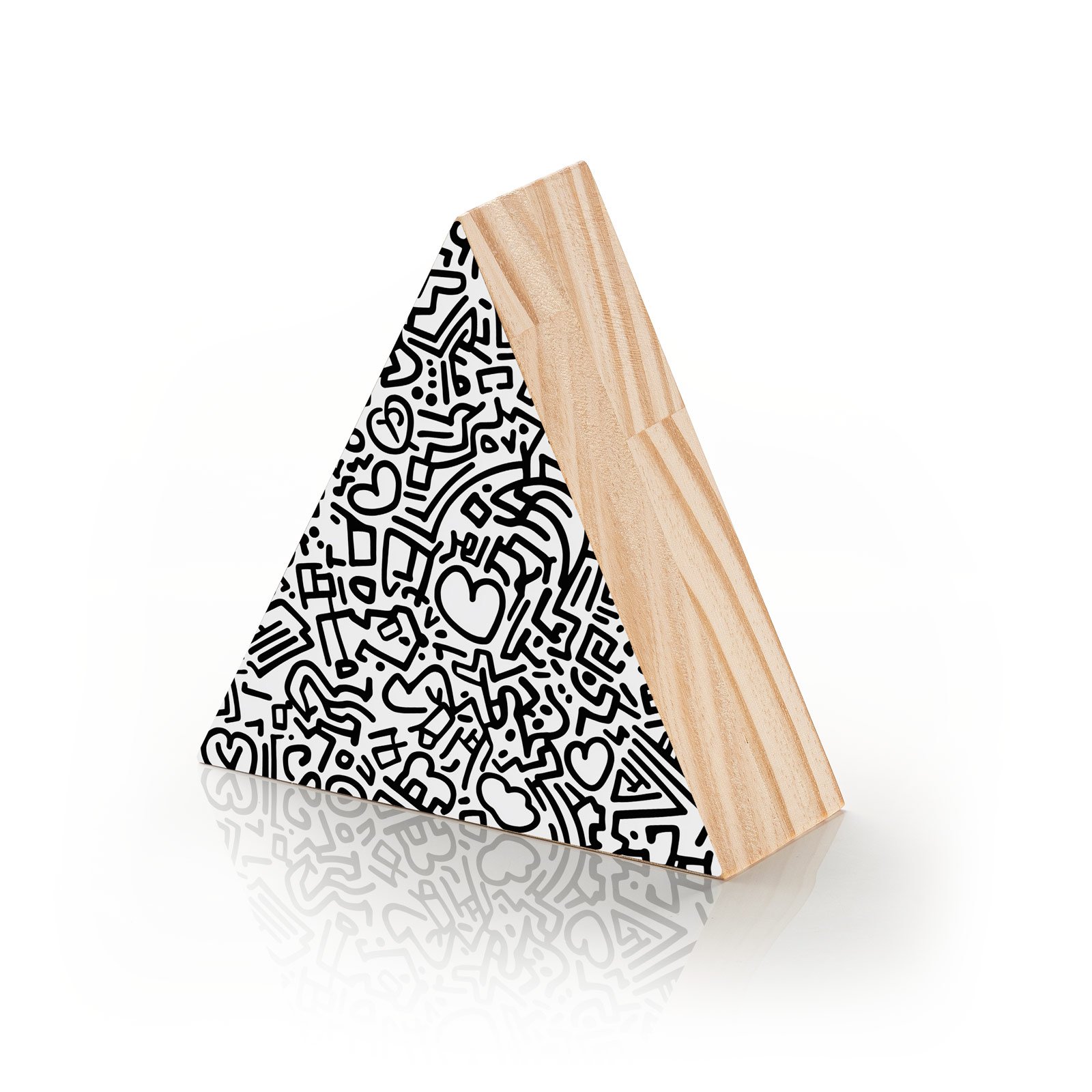 Mergulhe no ritmo visual da cidade com o Totem Decorativo ‘Caos do Amor’ da Linha Trion, uma peça vibrante em sua simplicidade. Com traços em preto e branco que lembram a arte de rua e o grafite moderno, esse totem mistura corações, setas e símbolos em uma dança gráfica que representa o amor, o caos e a liberdade de ser quem se é tudo ao mesmo tempo.