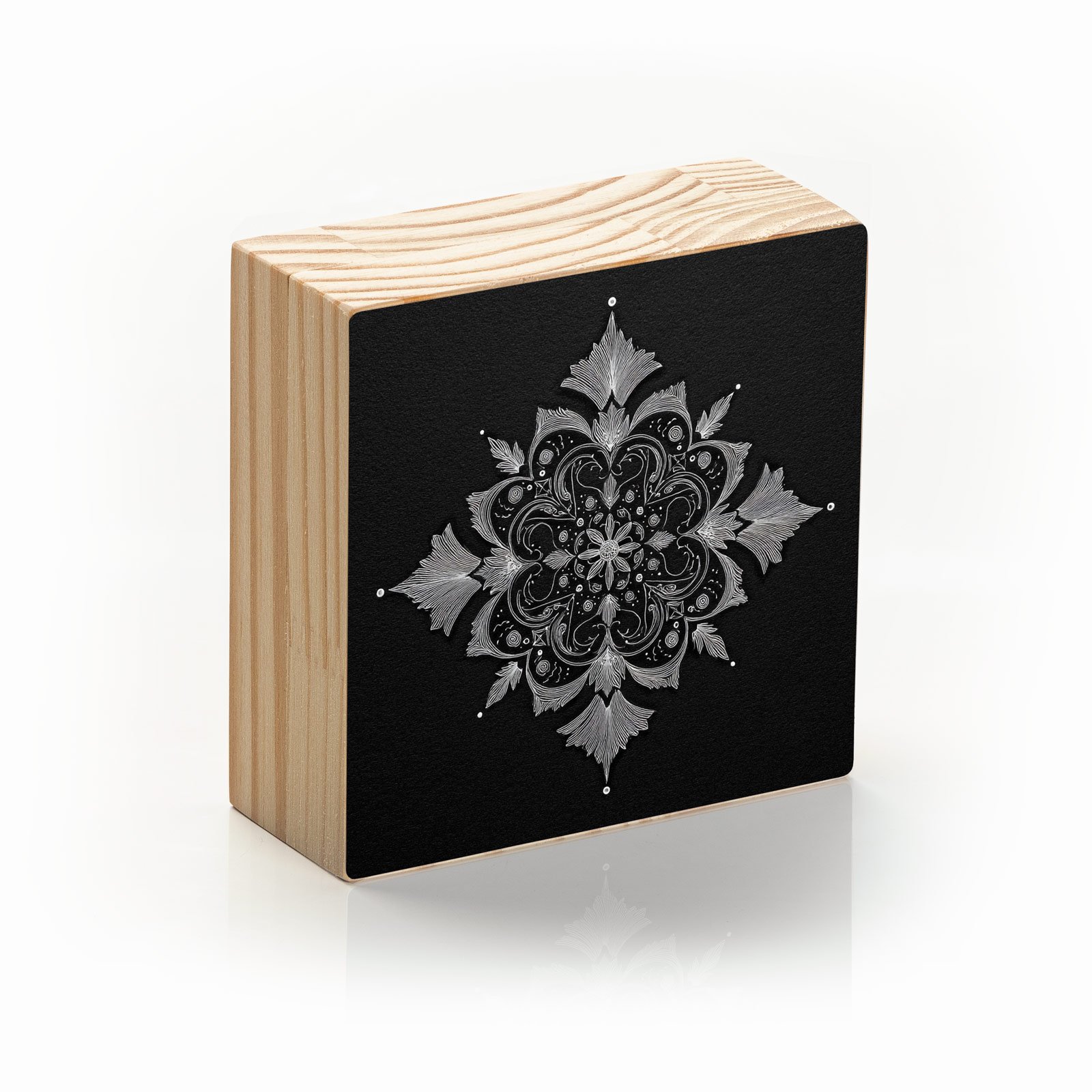 - Material: madeira pinus natural com impressão Fine Art e acabamento em metacrilato;