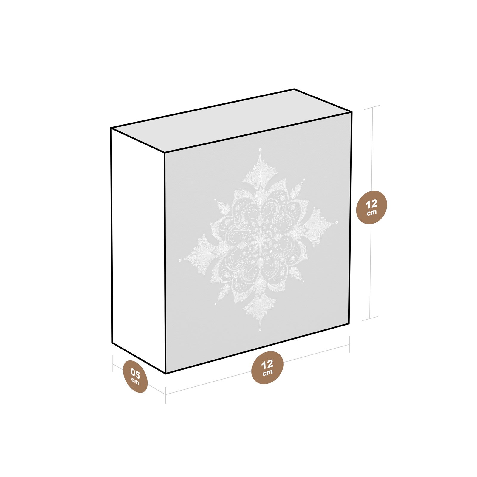 - Dimensões: 12 cm (largura) x 12 cm (altura) x 6 cm (profundidade);