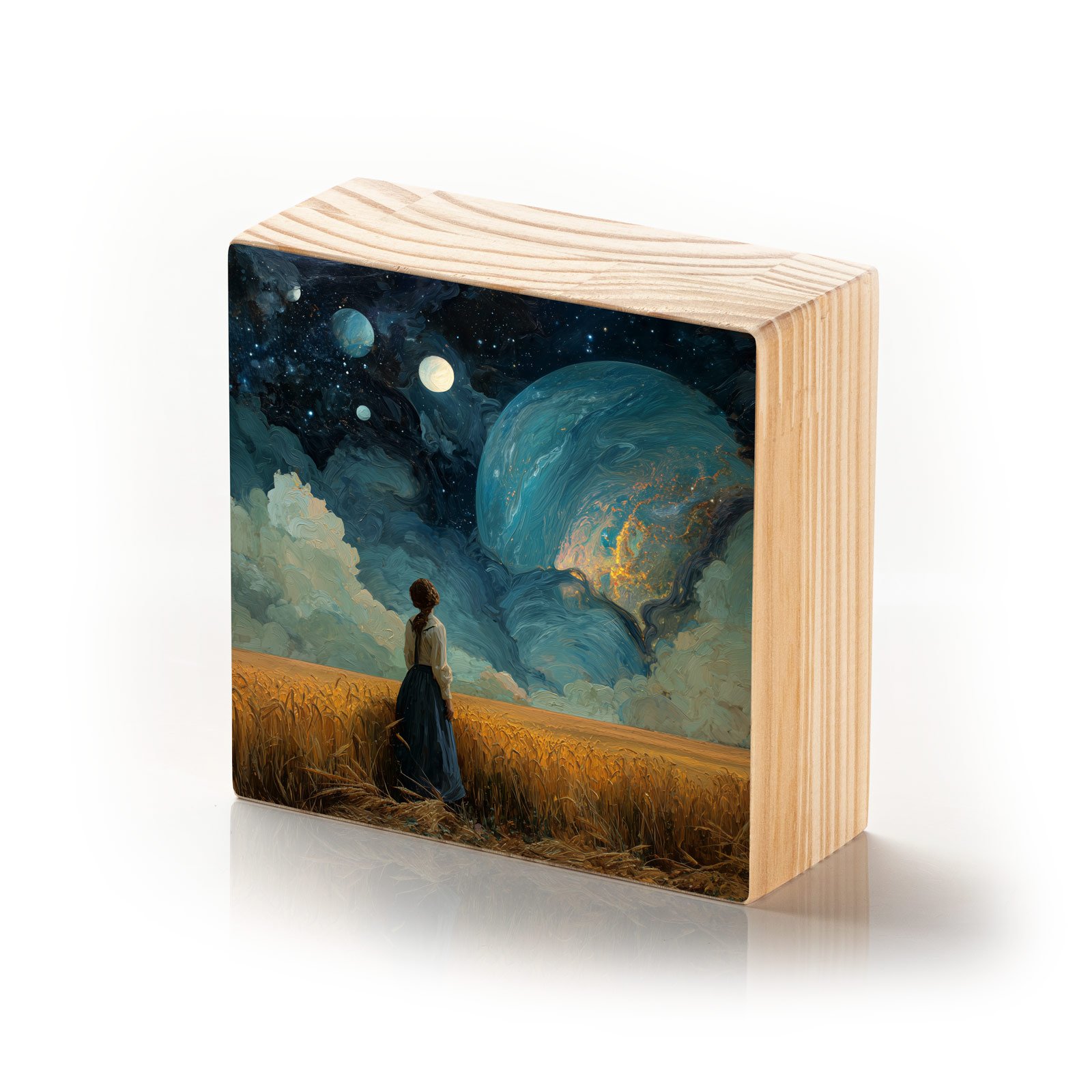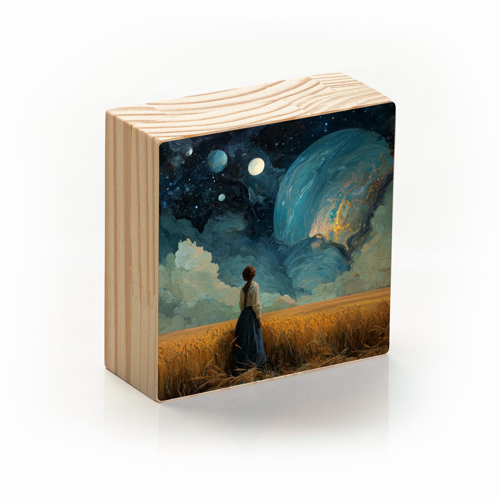 - Material: madeira pinus natural com impressão Fine Art e acabamento em metacrilato;