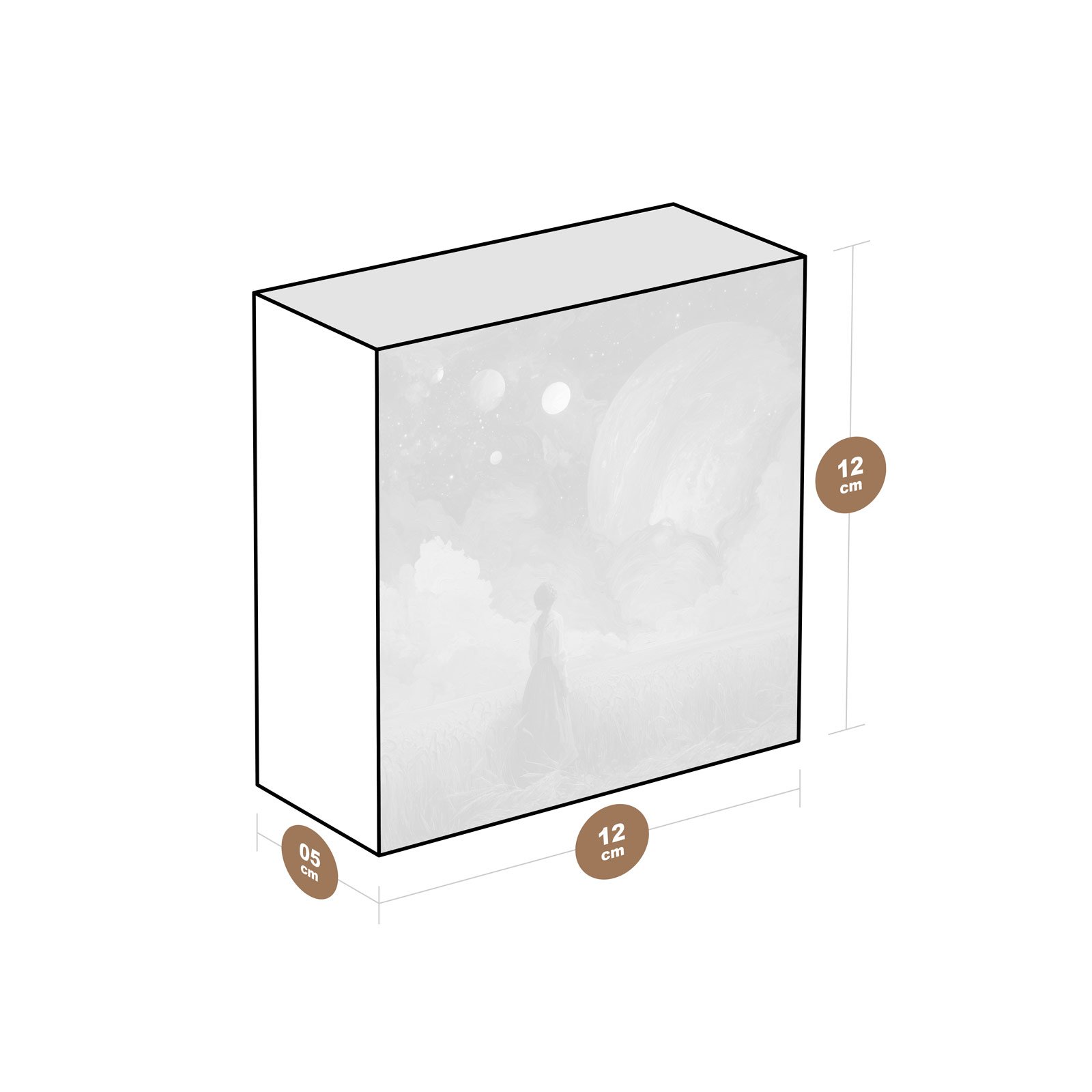 - Dimensões: 12 cm (largura) x 12 cm (altura) x 6 cm (profundidade);
