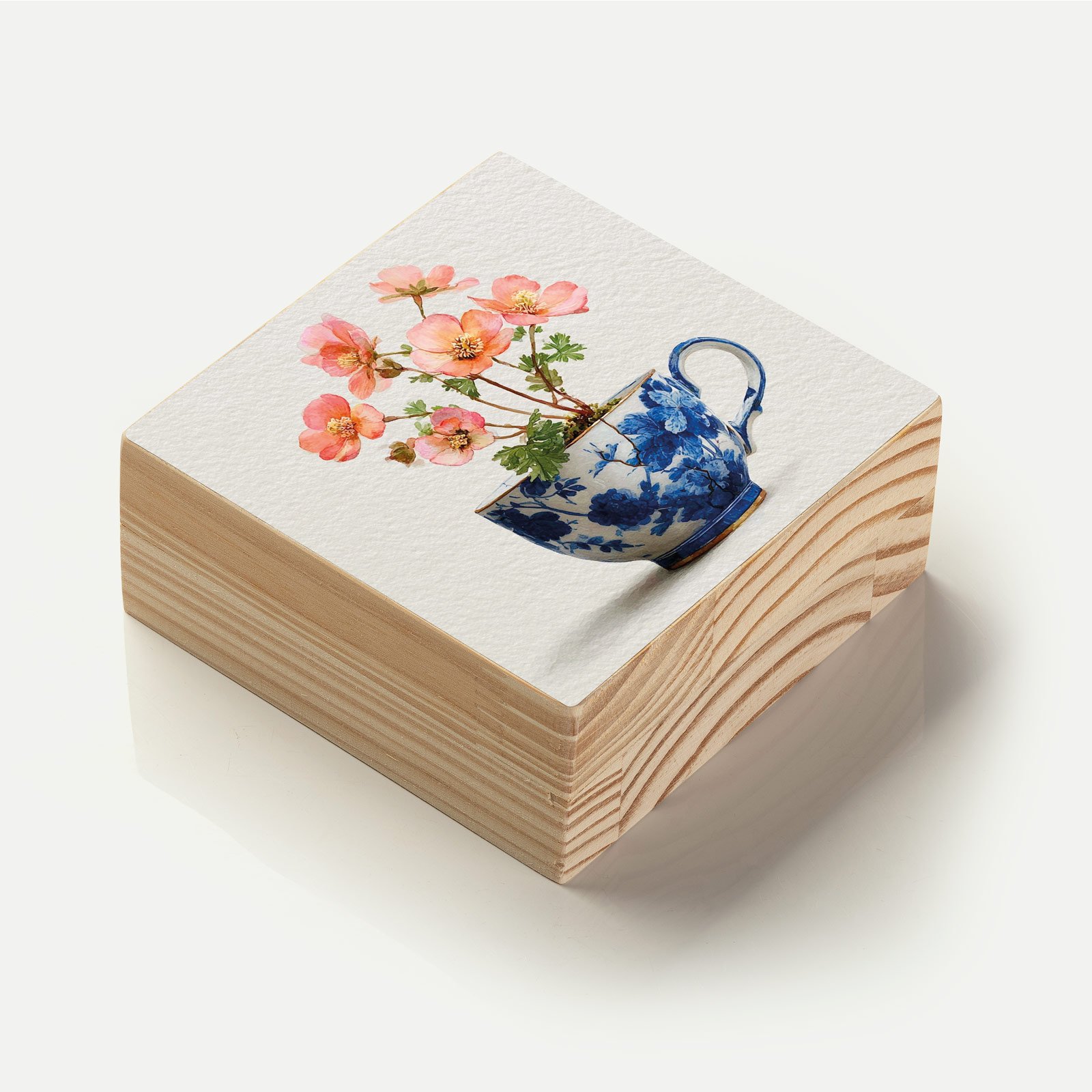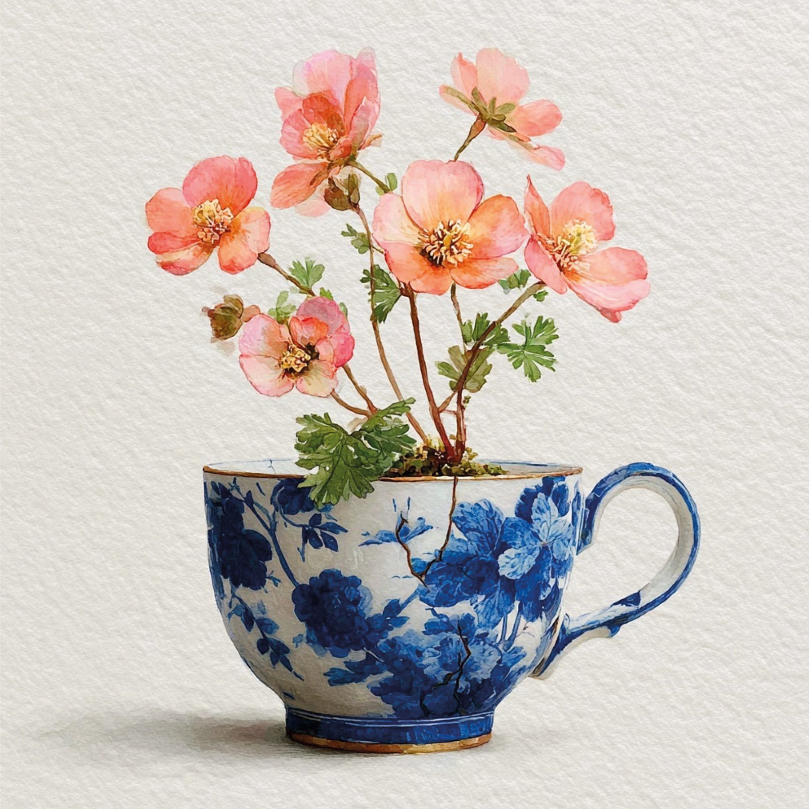 Entre a porcelana azul e branca, herança de um tempo em que servir chá era um gesto de afeto, flores rosadas desabrocham como sorrisos ao amanhecer. “Chá de Primavera” da Linha Square, captura a beleza singela de um arranjo improvisado, onde uma simples xícara se transforma em jarro e a vida floresce nas pequenas coisas.