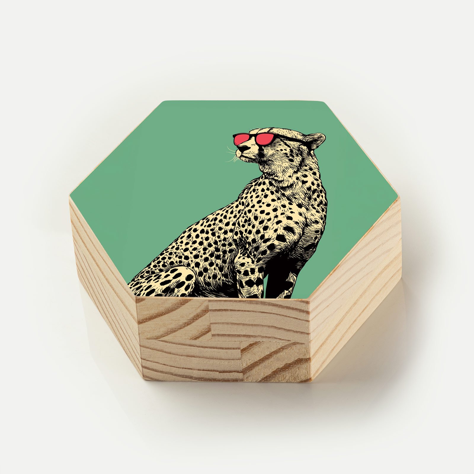 Com atitude despojada e charme irreverente, “Cheetah Cool” transforma o felino mais veloz do mundo em ícone de estilo. De óculos escuros e postura confiante, ele é a representação perfeita da mistura entre natureza selvagem e cultura urbana.