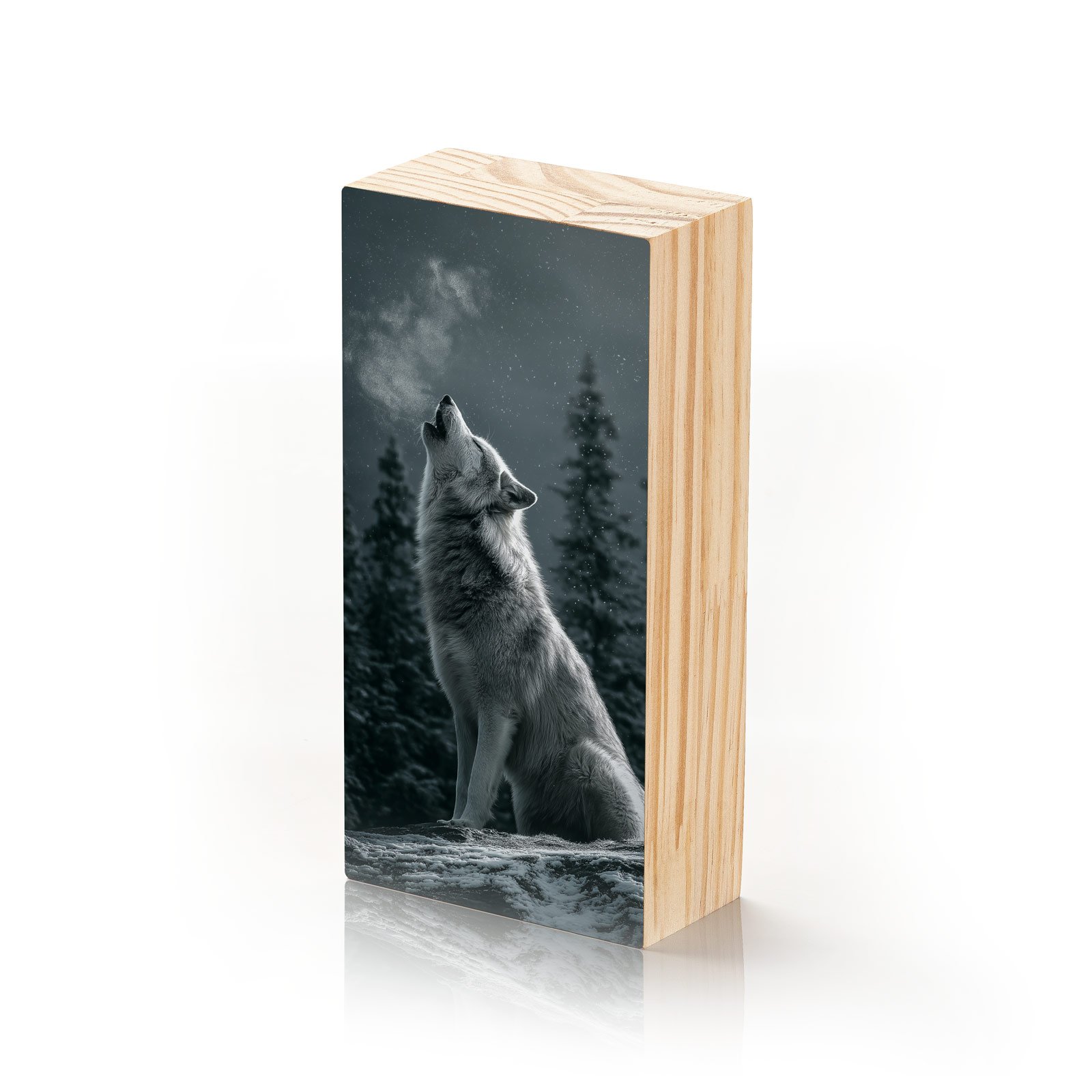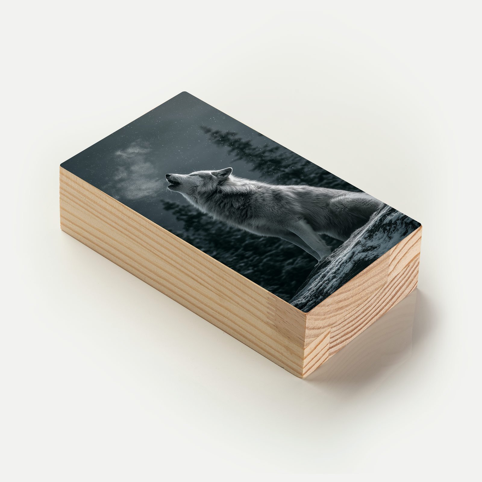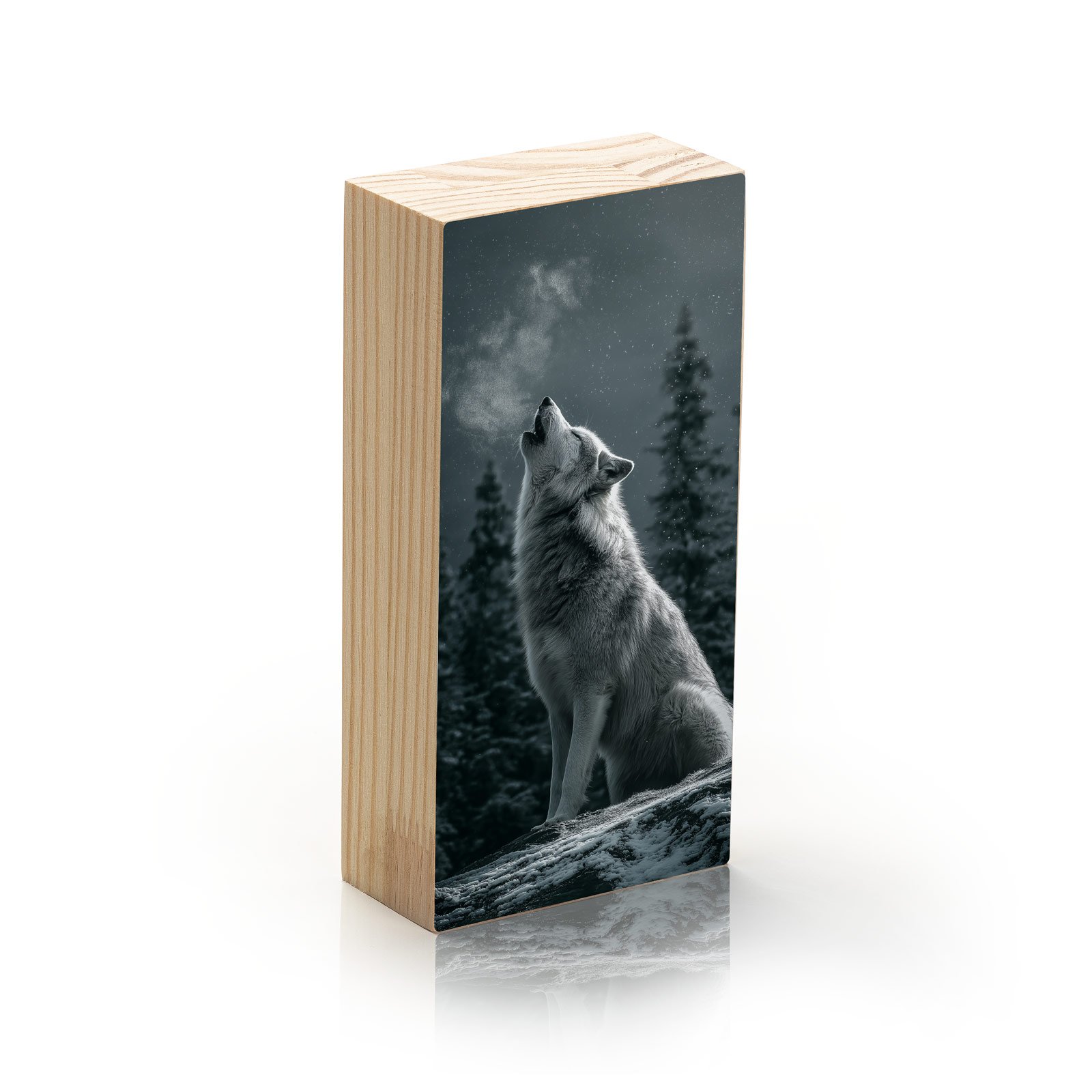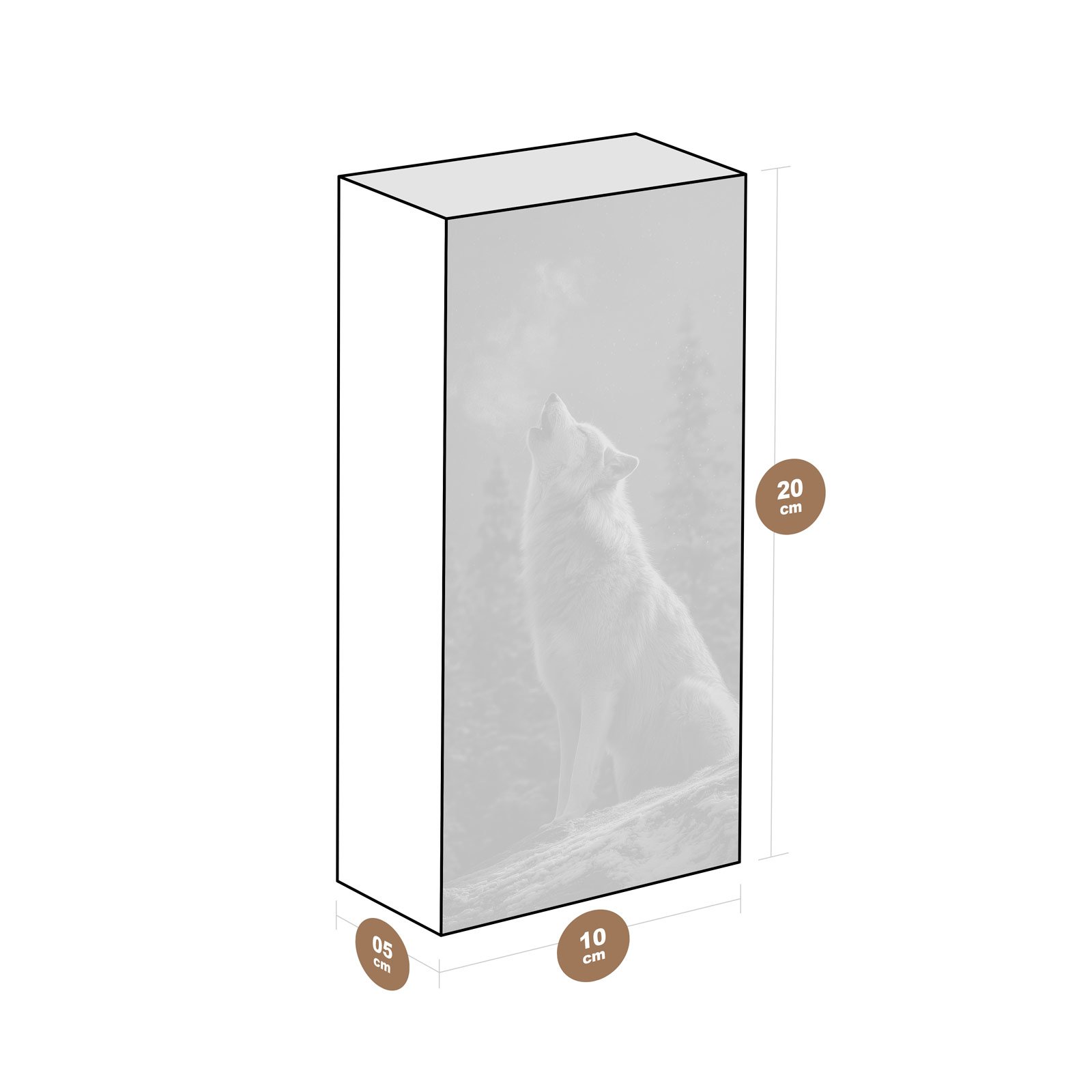 Sob o céu estrelado e o frio cortante, “Clamor da Noite” retrata o lobo em seu uivo ancestral, evocando mistério, coragem e liberdade. A respiração que se transforma em névoa é símbolo da resistência diante da escuridão, enquanto a imponência do animal desperta respeito e admiração. Uma peça intensa que traz a energia selvagem da natureza para qualquer ambiente.