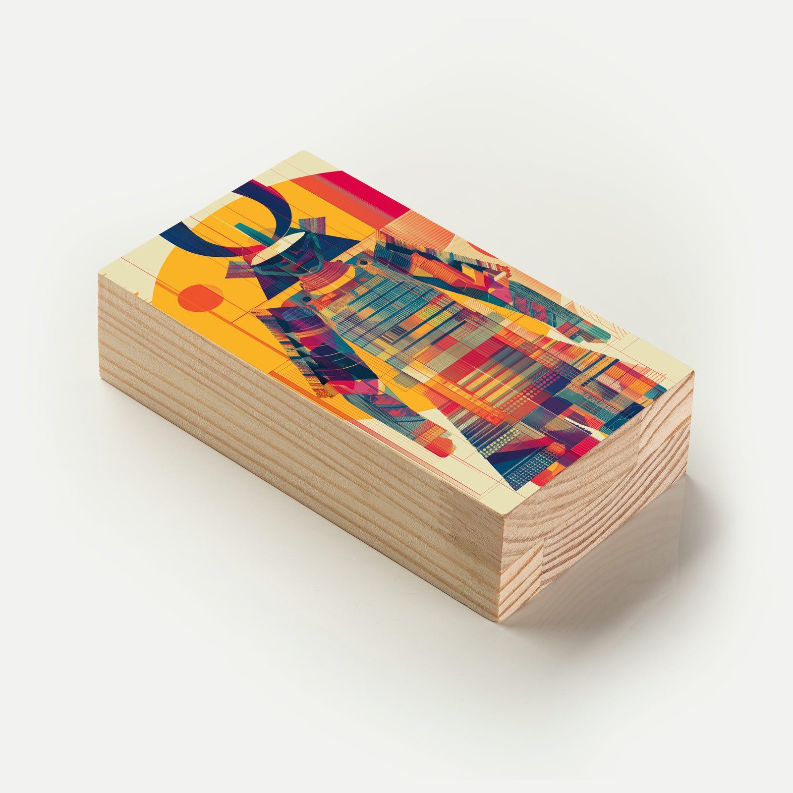 - Material: madeira pinus natural com impressão Fine Art e acabamento em metacrilato;
