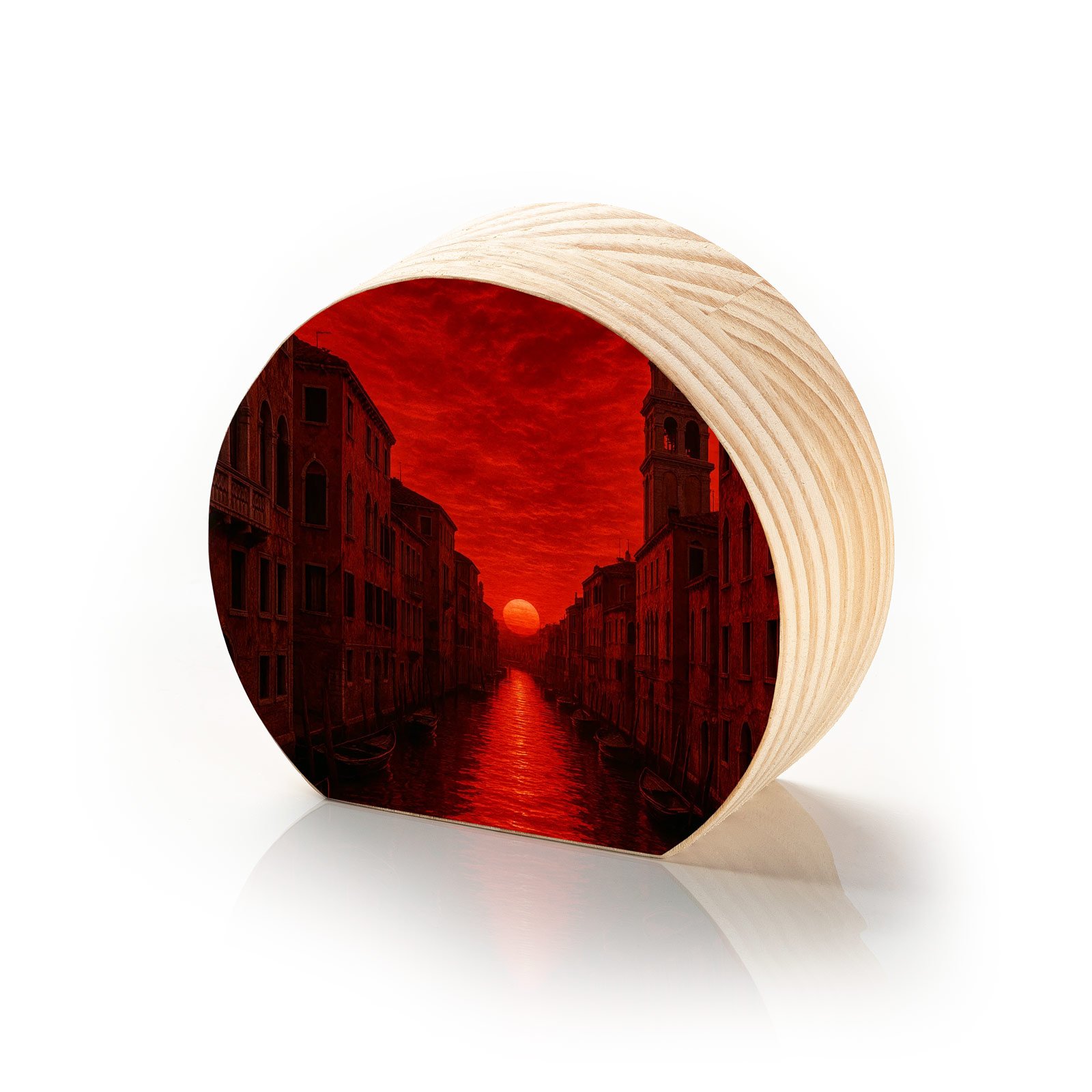 Luz intensa, romance silencioso e o fascínio da arquitetura histórica. O Totem Decorativo “Crepúsculo Veneziano” da Linha Luna captura o momento em que o sol se despede entre os canais de uma cidade encantadora, mergulhando tudo em um tom vermelho profundo e poético. Uma imagem poderosa que combina nostalgia, beleza e paixão.