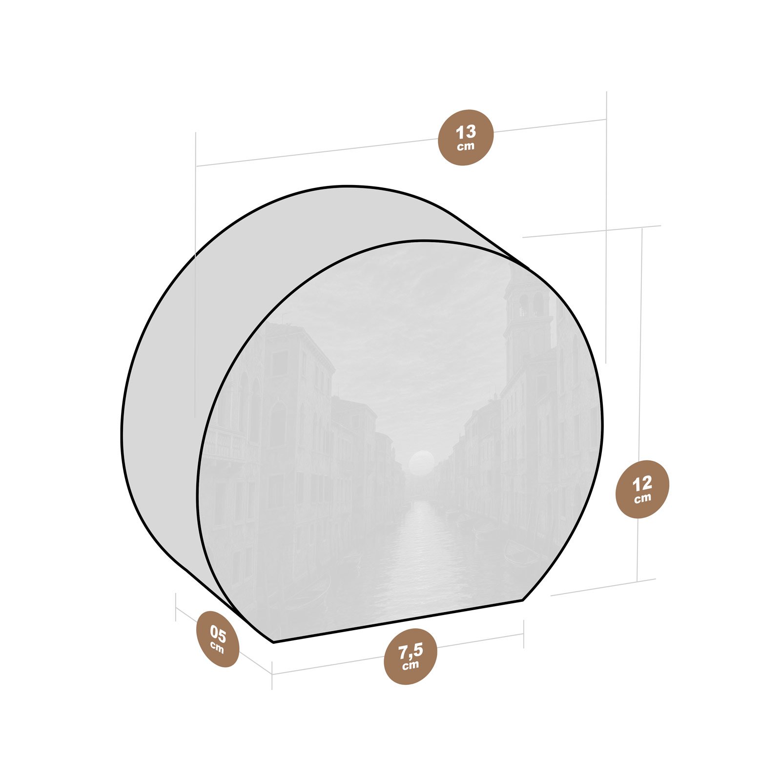 - Dimensões: 13 cm (largura) x 12 cm (altura) x 5 cm (profundidade);