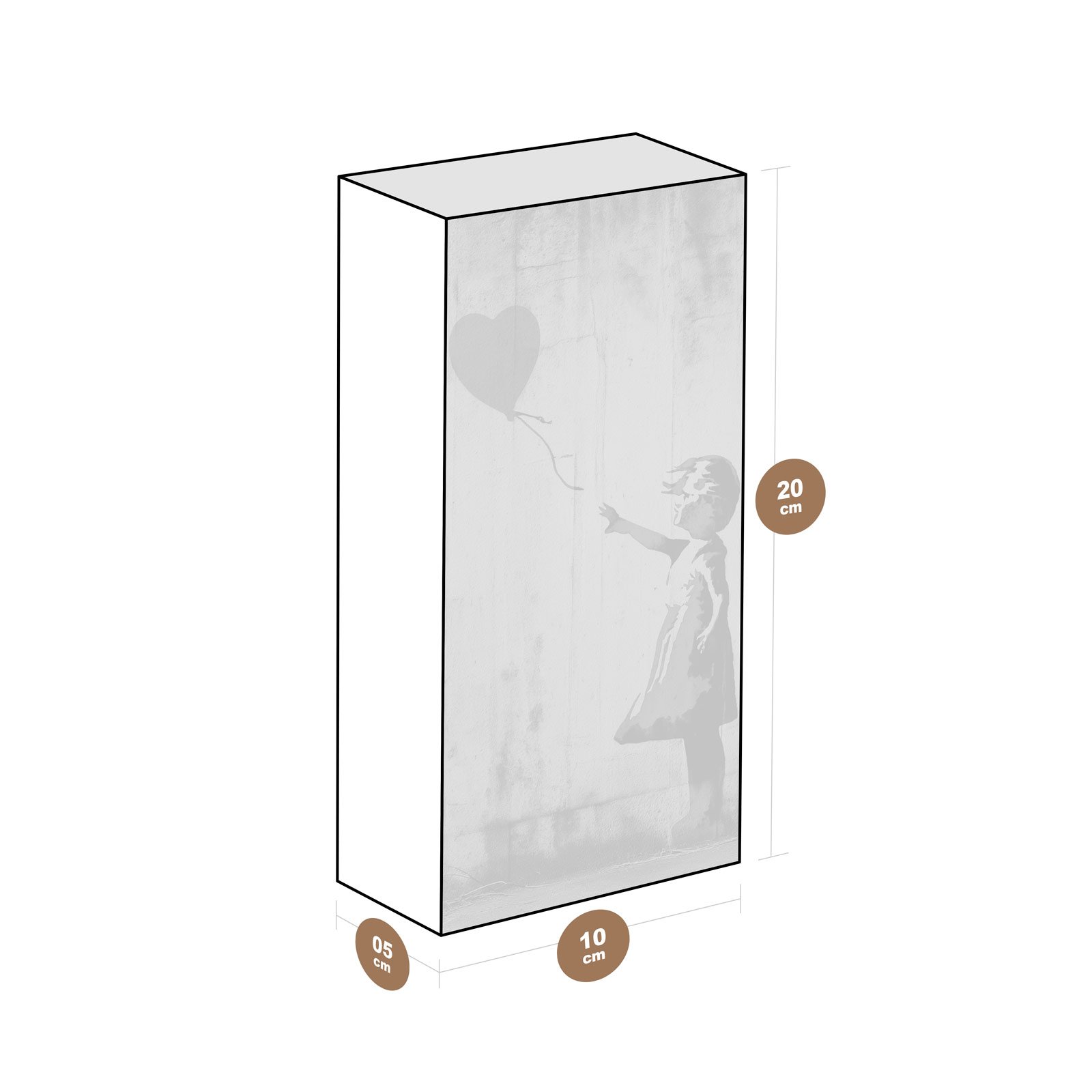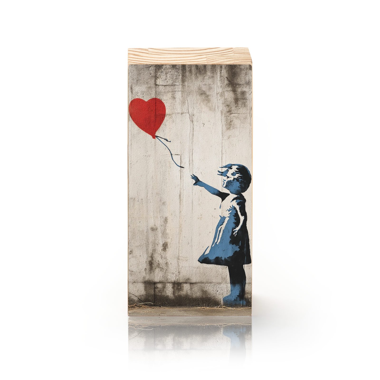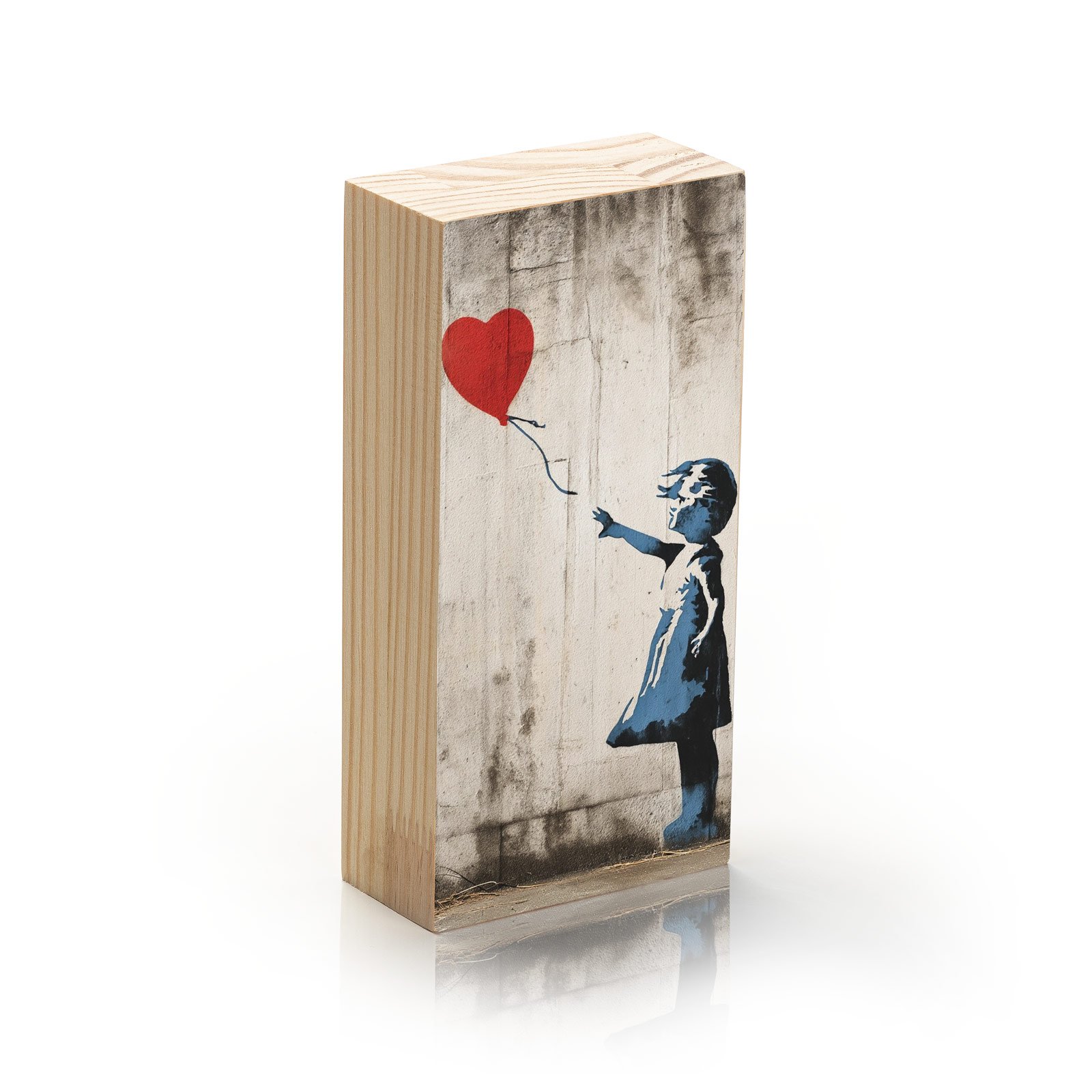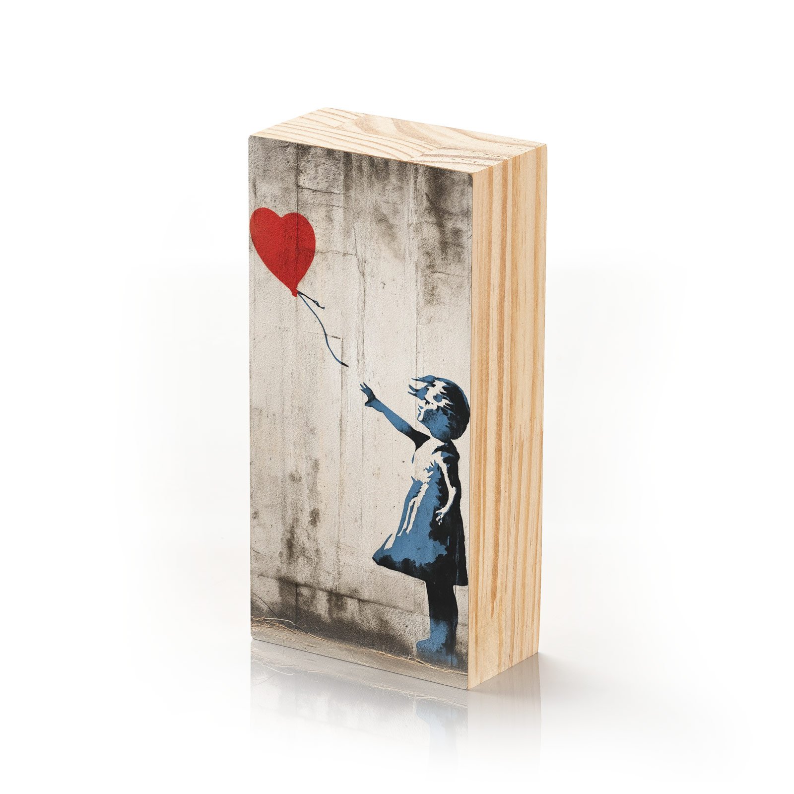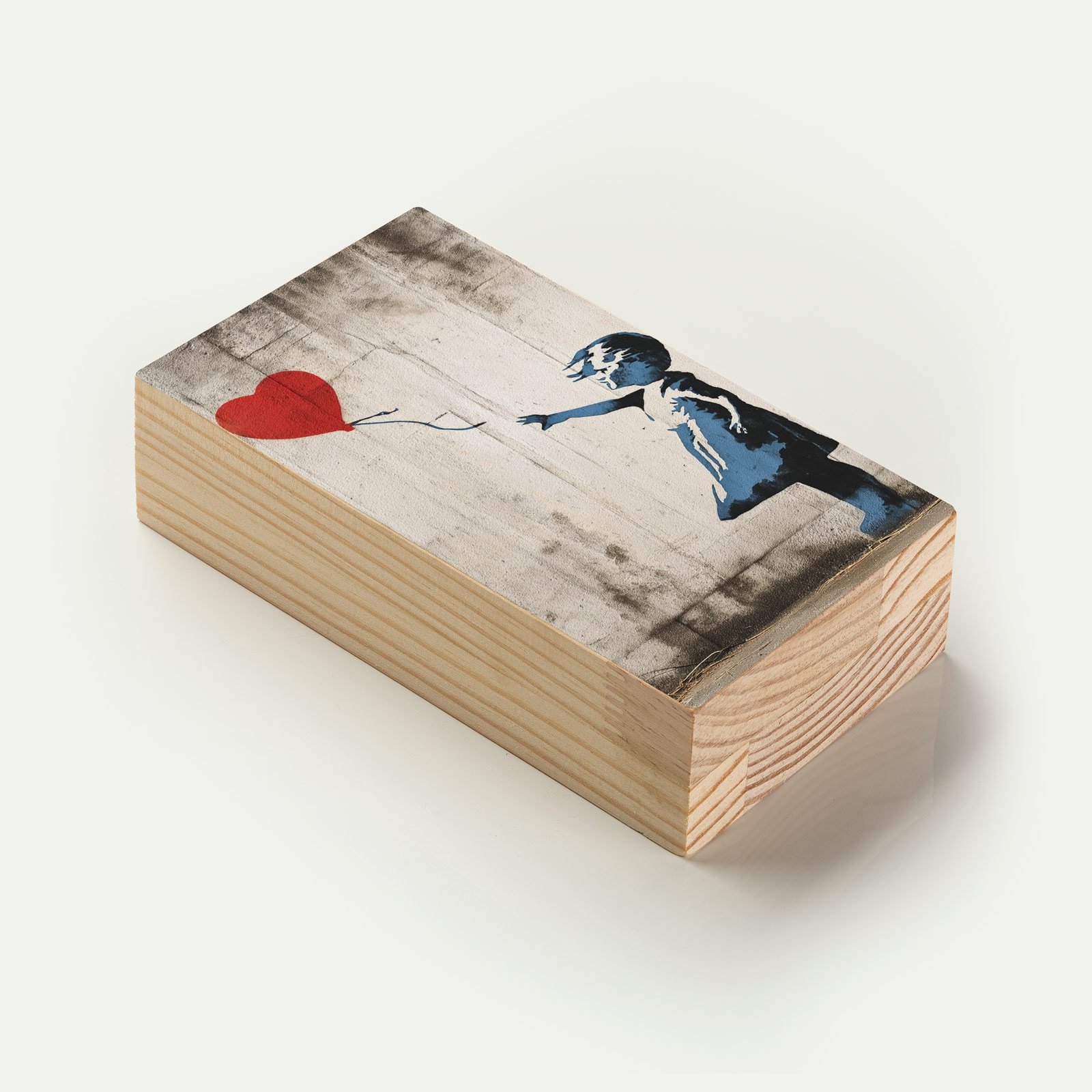 Inspirado em uma das imagens mais marcantes da arte urbana contemporânea, “Deixar Ir” da Linha Vert, expressa, com simplicidade e força visual, o momento em que algo (ou alguém) parte carregando um pedaço do nosso afeto. A menina estende a mão para o balão em forma de coração que escapa, simbolizando despedidas, esperança, inocência e o poder emocional do desapego.