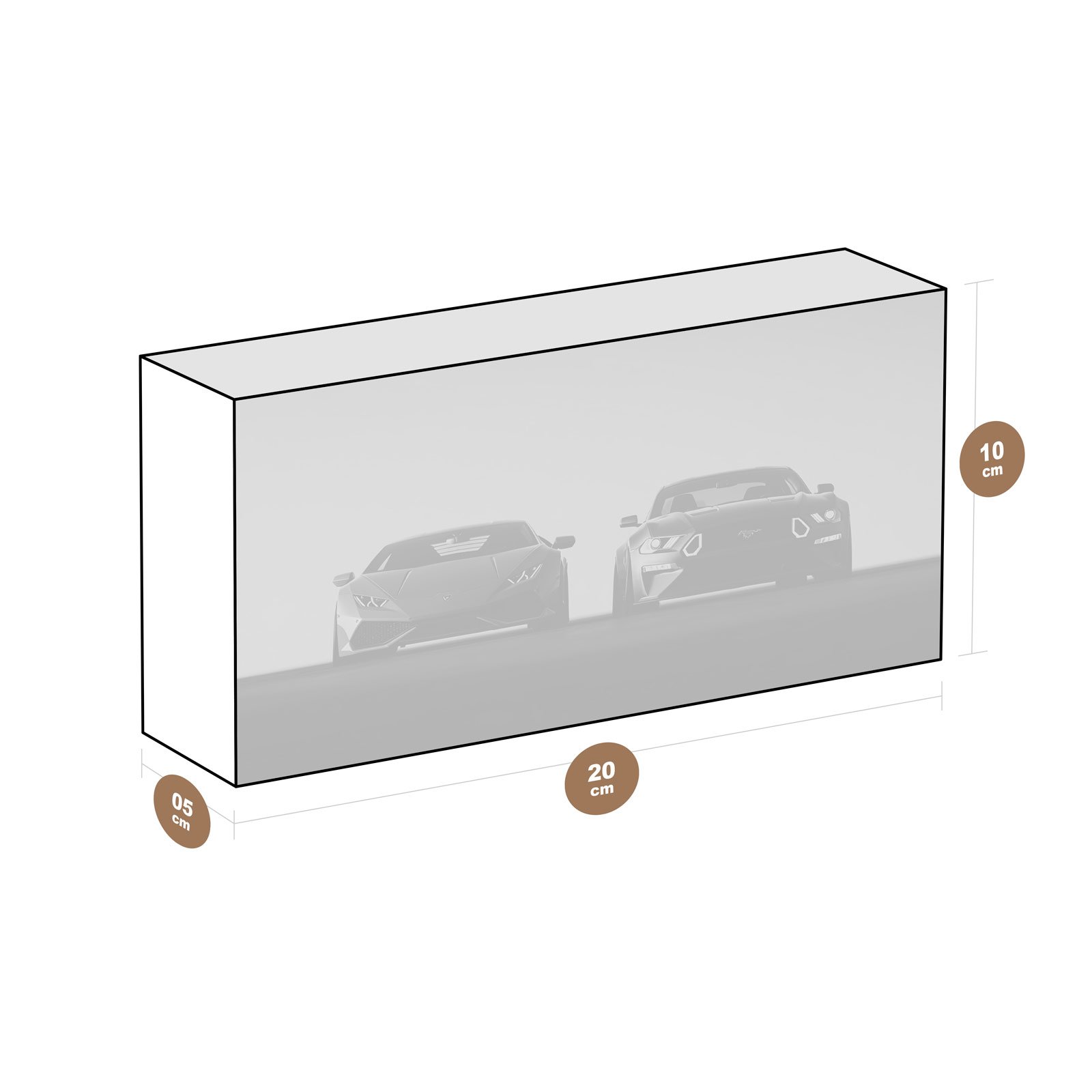 - Acabamento em metacrilato, com realce de cores, profundidade visual e proteção contra umidade e raios UV;