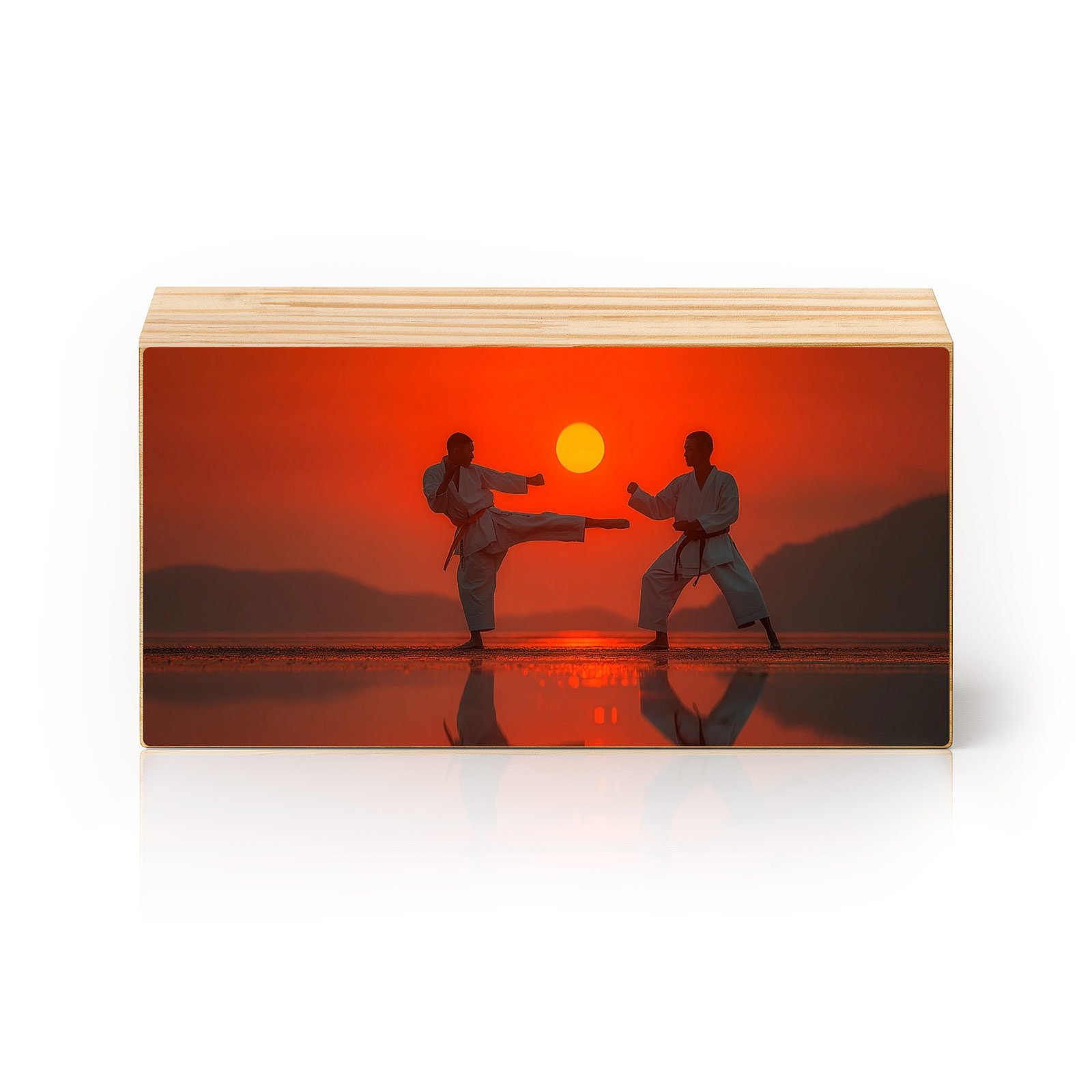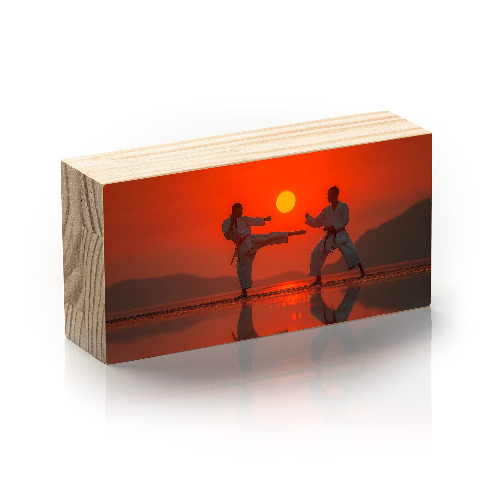 Duas silhuetas em pleno combate técnico, emolduradas por um pôr do sol escaldante. “Disciplina do Sol Nascente” da Linha Horizon, é mais do que uma cena de treino — é um tributo à honra, ao respeito e à busca incessante por equilíbrio interior. Cada gesto, um ritual. Cada movimento, uma filosofia.