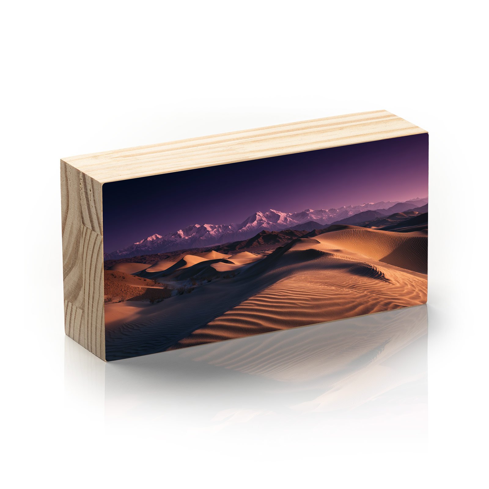 O encontro entre a vastidão dourada das dunas e o céu em tons de púrpura cria um espetáculo poético em “Dunas ao Entardecer” da Linha Horizon. A suavidade das areias moldadas pelo vento contrasta com a imponência das montanhas ao fundo, despertando sensações de mistério, calma e contemplação.