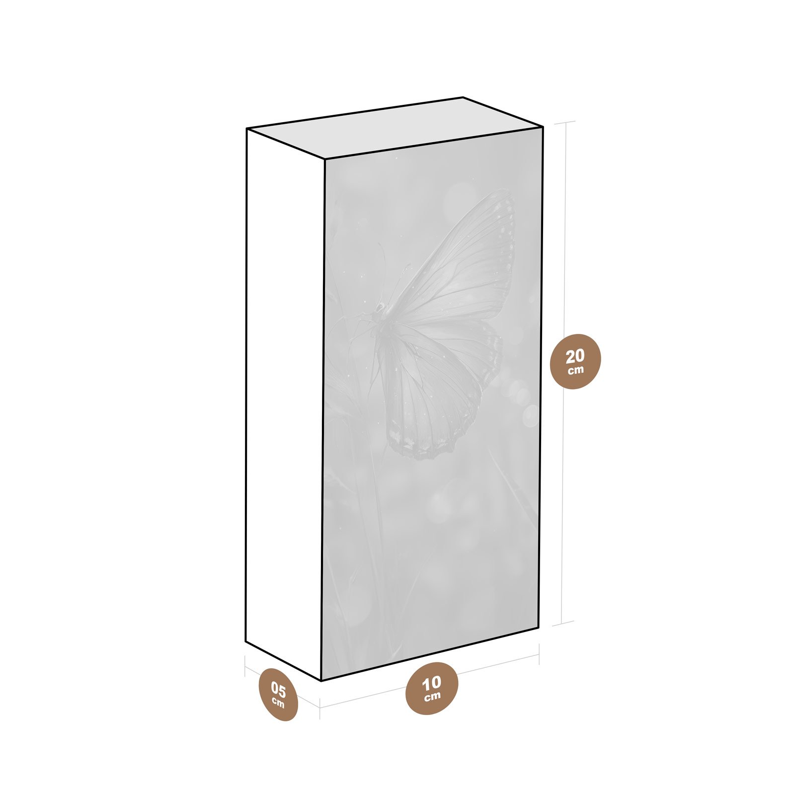 - Dimensões: 10 cm (largura) x 20 cm (altura) x 6 cm (profundidade);