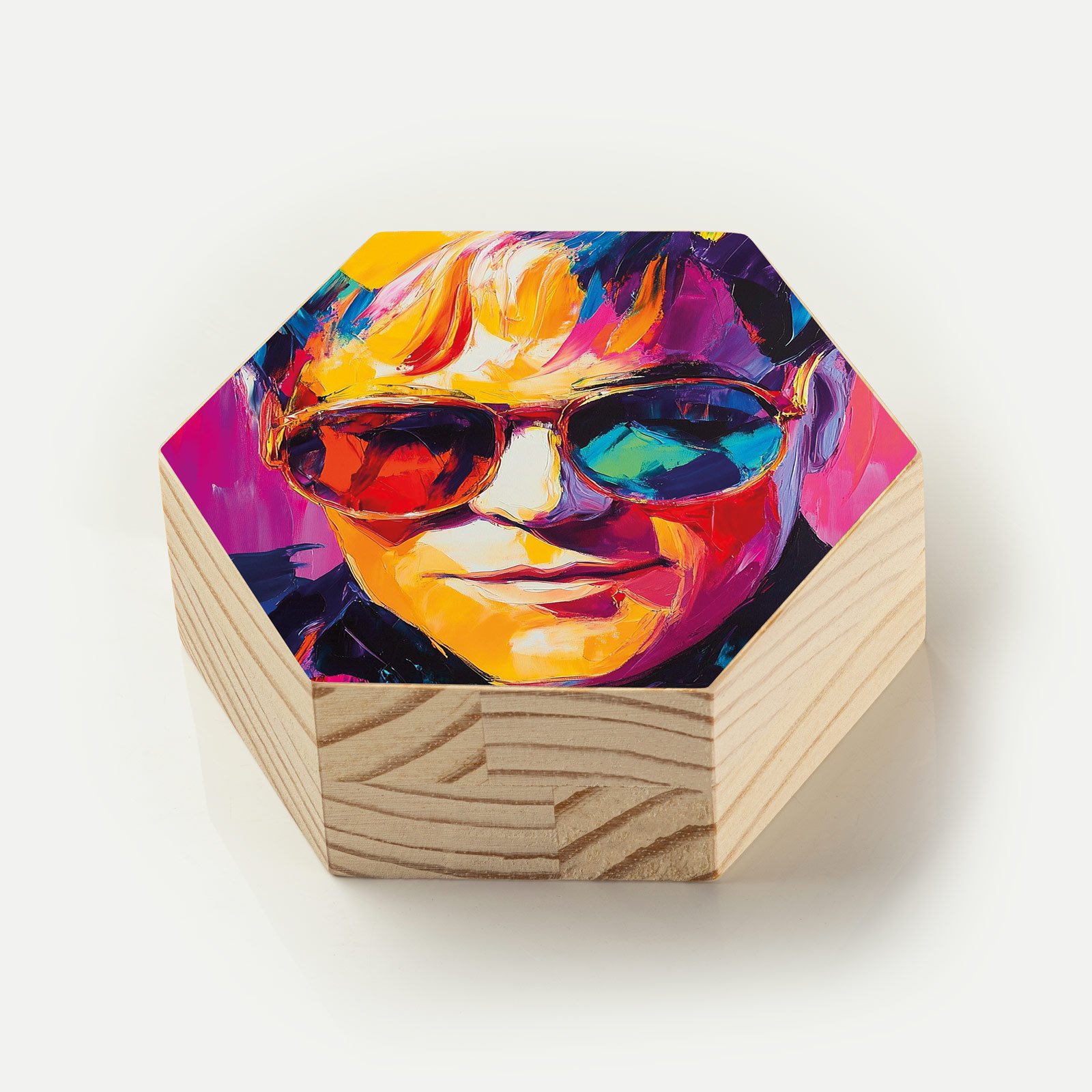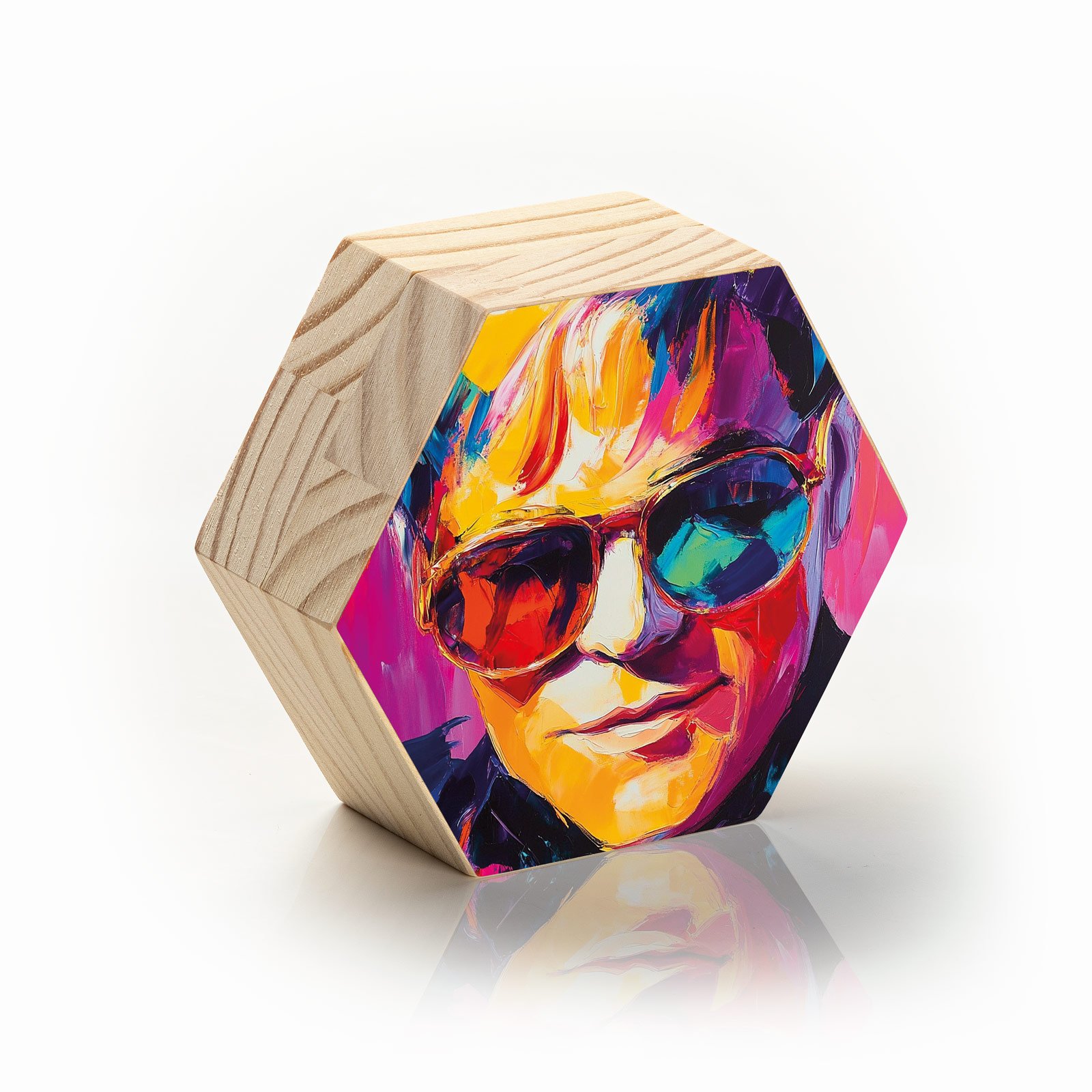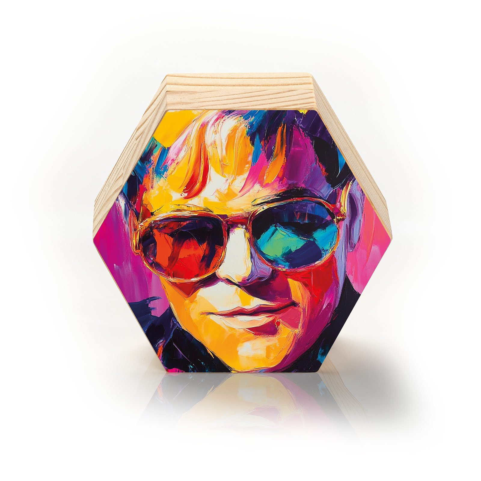 Destaque sua decoracão com o Totem Decorativo da Linha Hezag inspirado em uma das figuras mais icônicas da música mundial. Com um retrato vibrante de Elton John, esta peça é pura expressão artística e estilo pop. Sua combinação de cores intensas e pinceladas marcantes transforma qualquer ambiente com personalidade e energia.