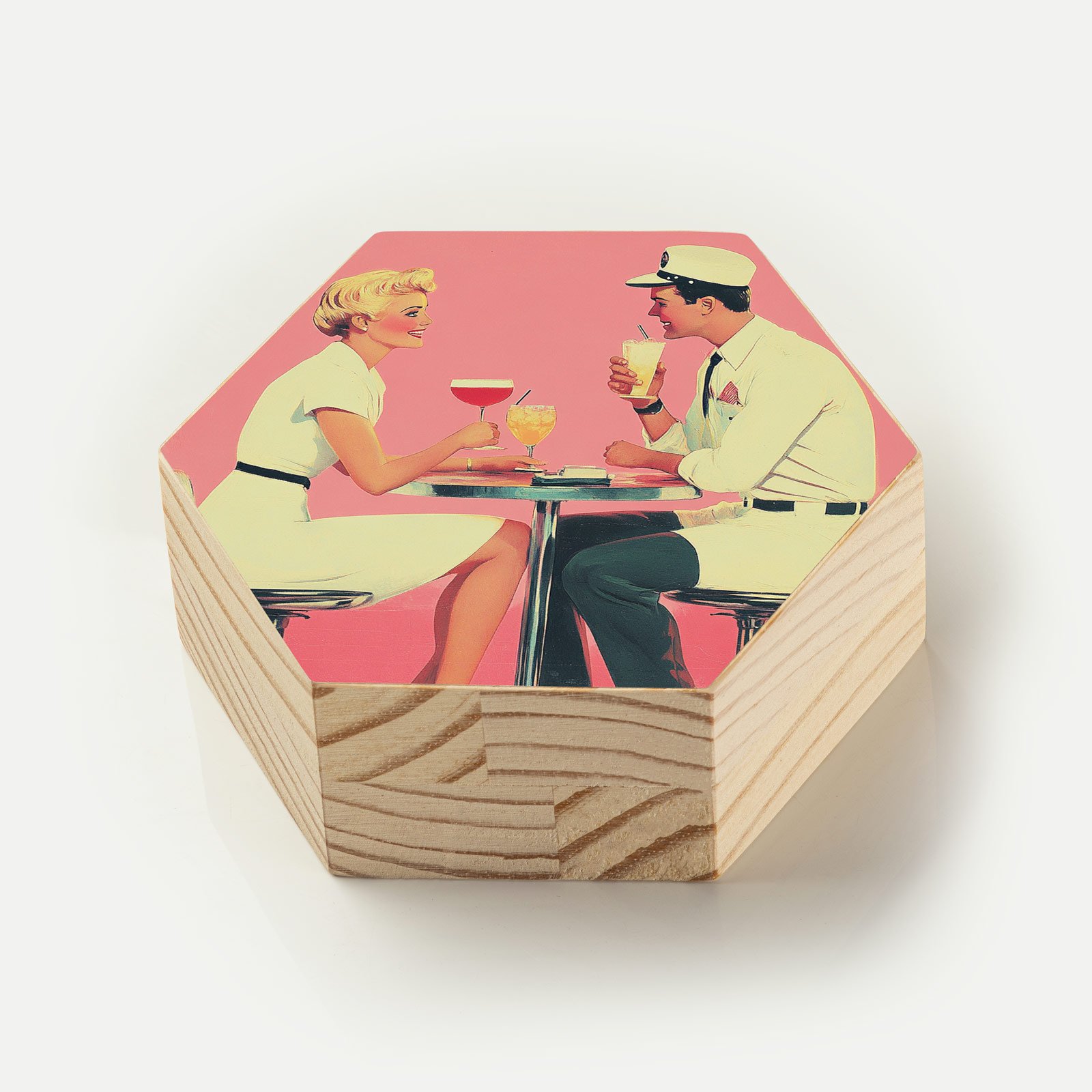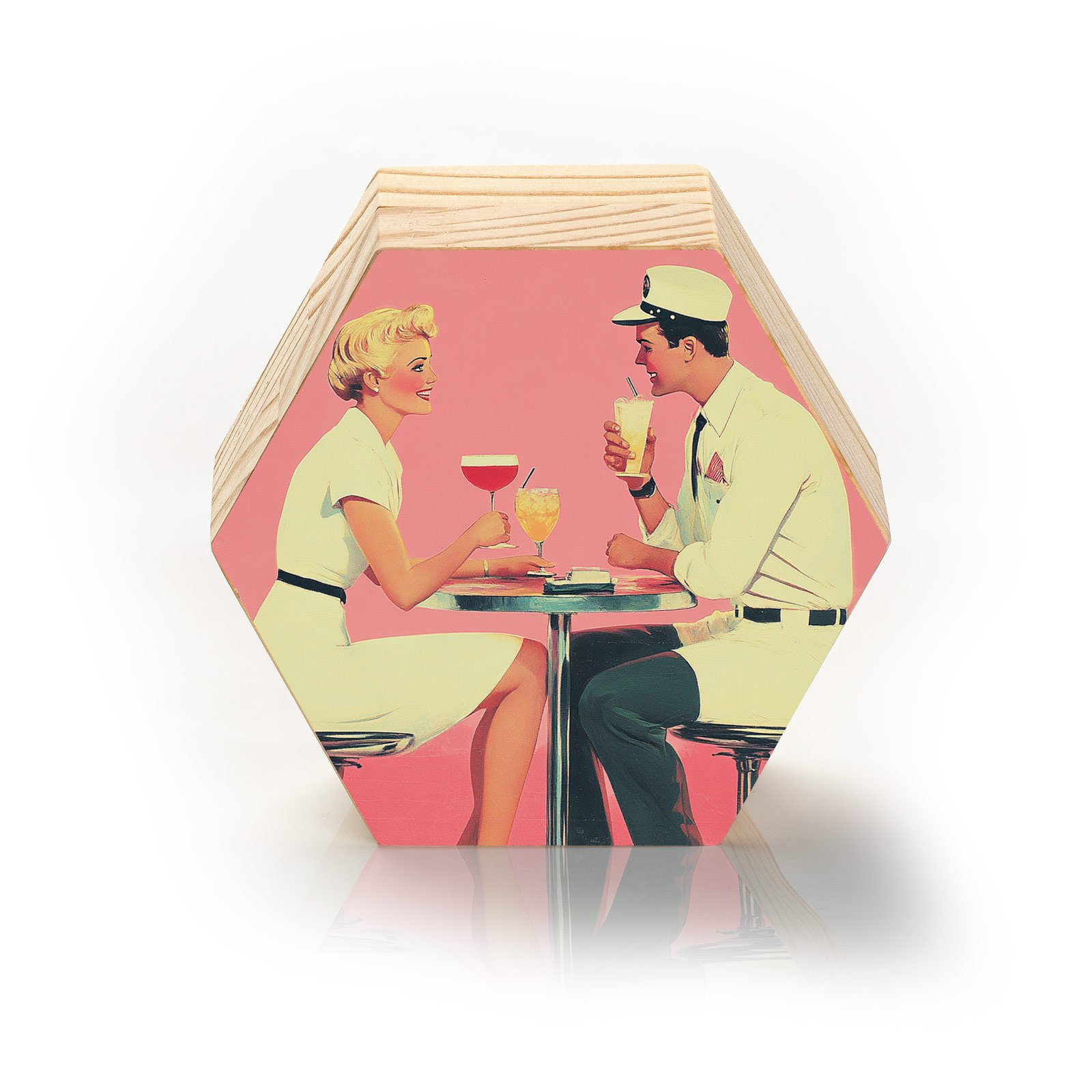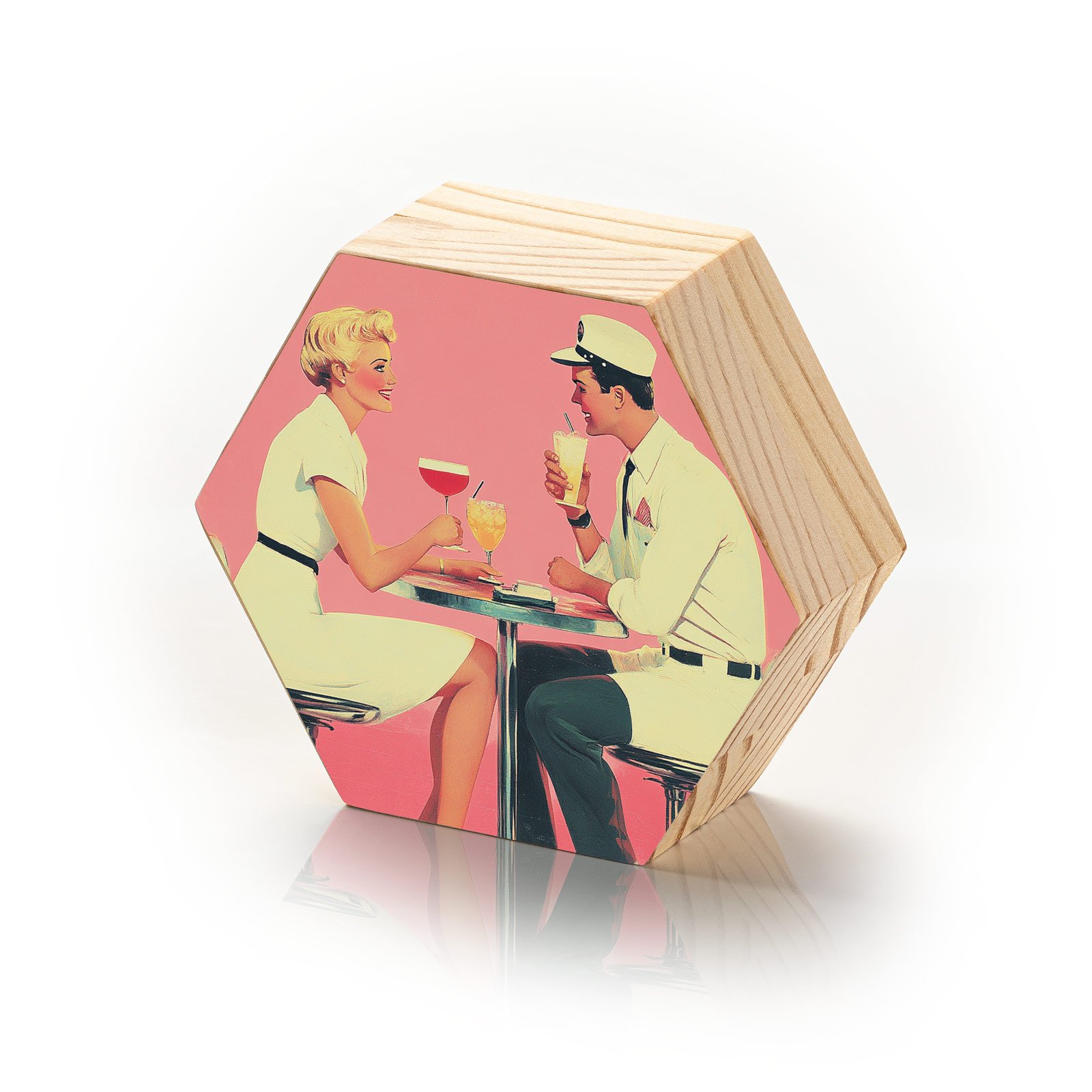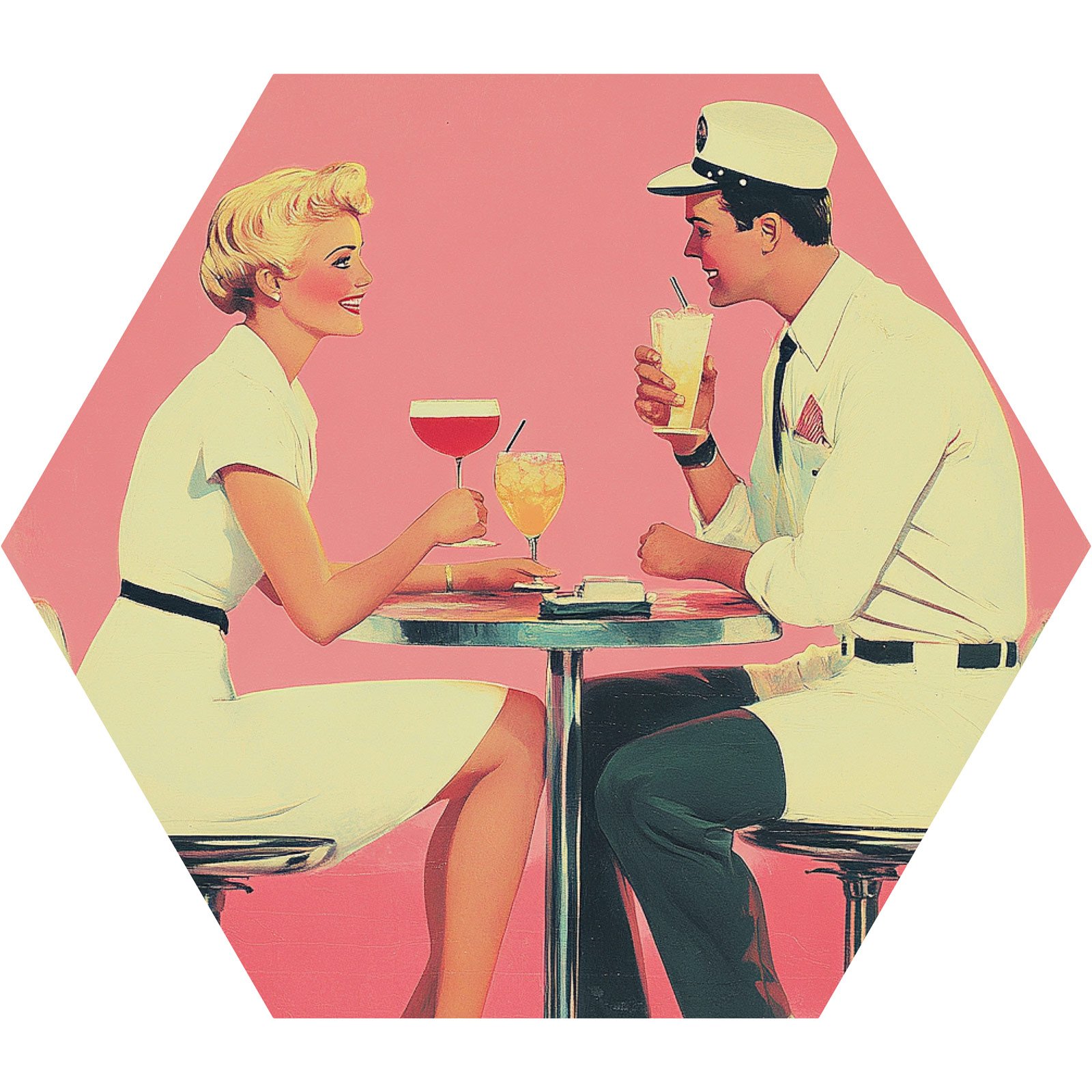 Celebre o charme dos encontros à moda antiga com o Totem Decorativo ‘Encontro Retrô’, uma peça que traz à tona a estética romântica e nostálgica dos anos 1950. Em um estilo pop retrô encantador, este totem apresenta um casal trocando sorrisos em um café, com vestidos claros e uniformes, em meio a um fundo rosa vibrante que irradia leveza, romantismo e boas memórias.