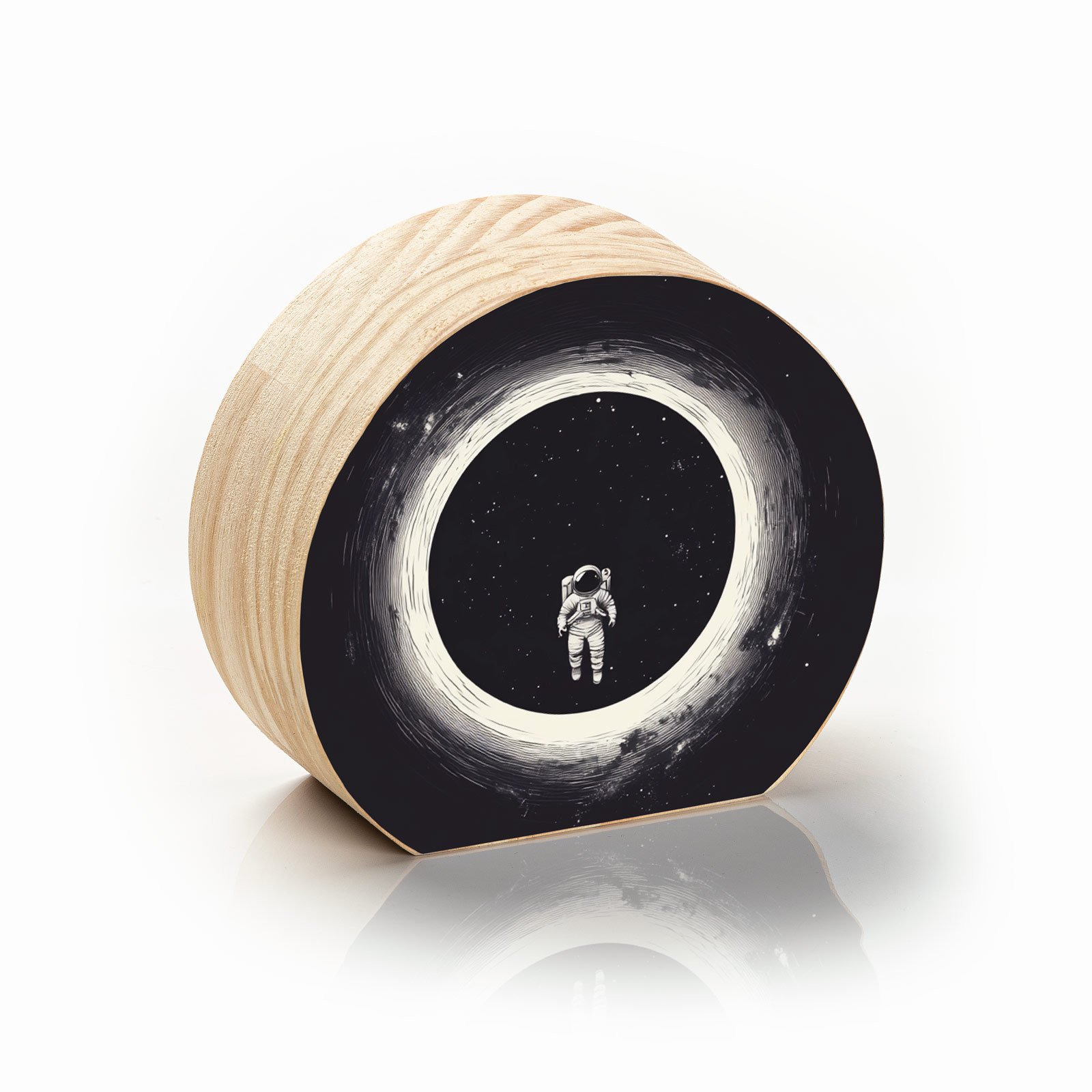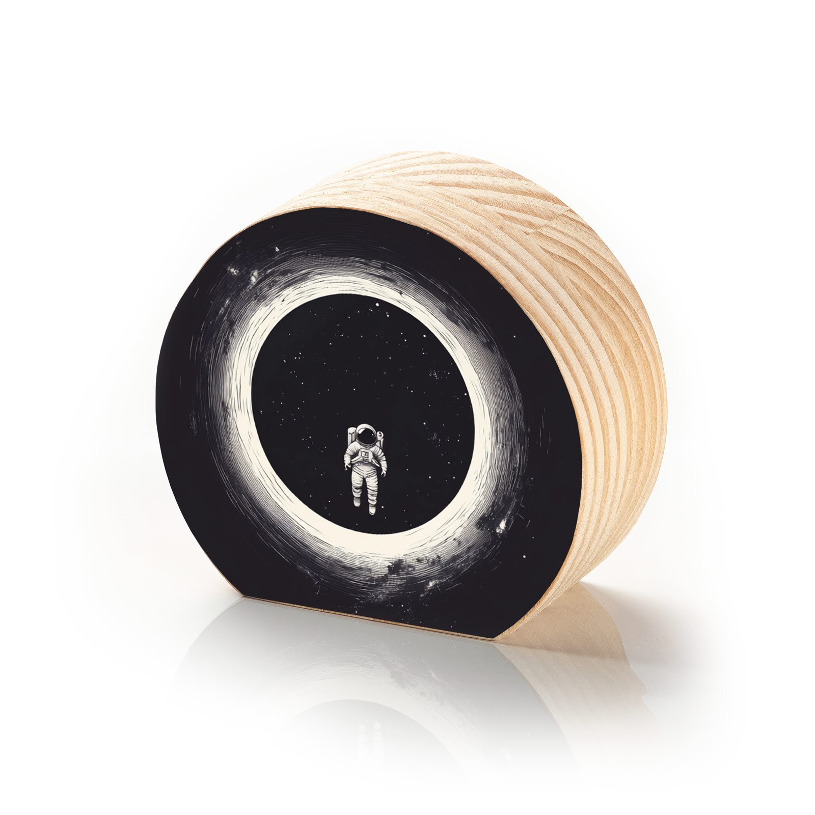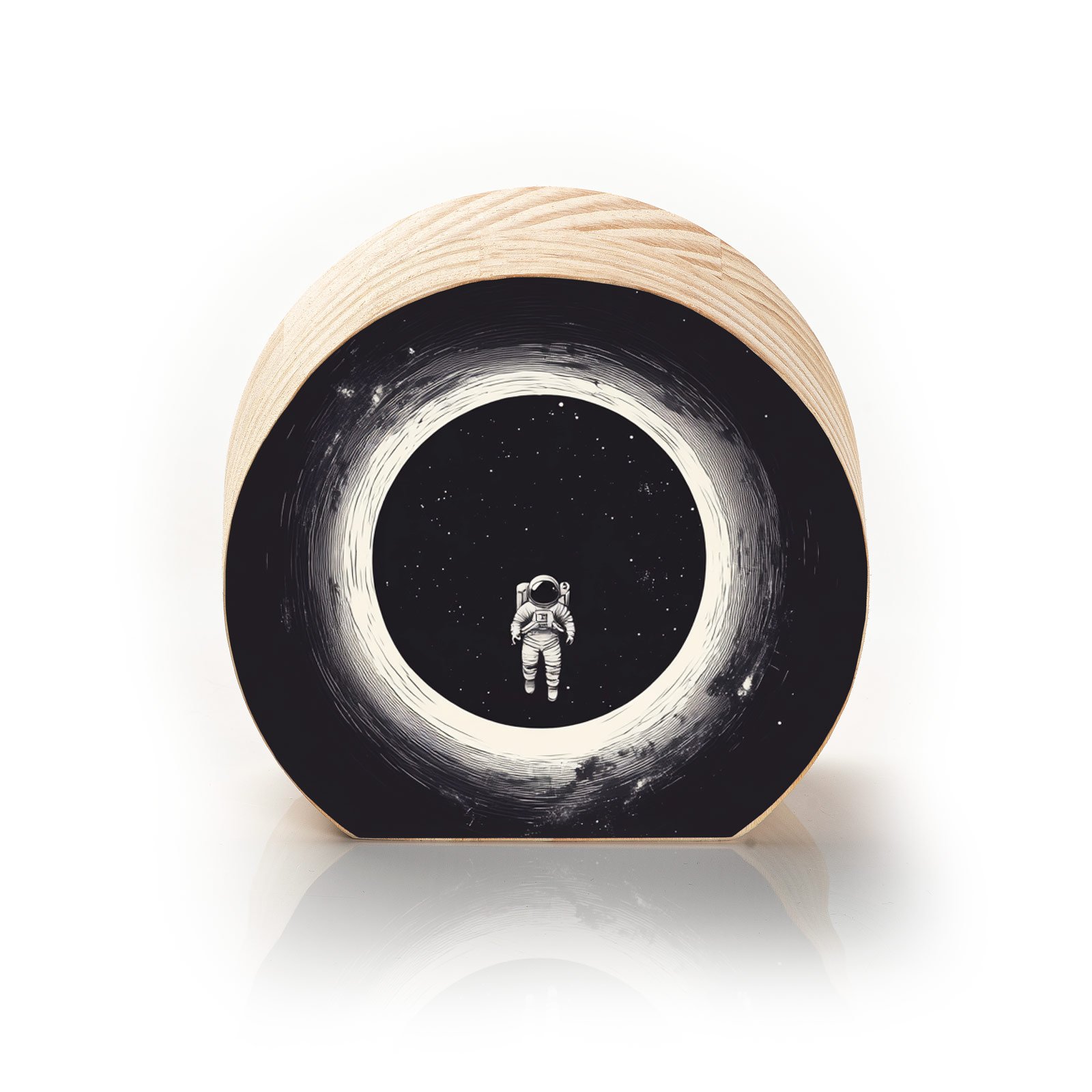 Viaje para o infinito com o Totem Decorativo ‘Entre Galáxias’ da Linha Luna, uma peça que traduz a solidão poética e o fascínio do universo. No centro do vórtice escuro, o astronauta solitário flutua em silêncio, envolto por um halo de luz cósmica que nos convida a refletir sobre a imensidão, os mistérios e a beleza do desconhecido.