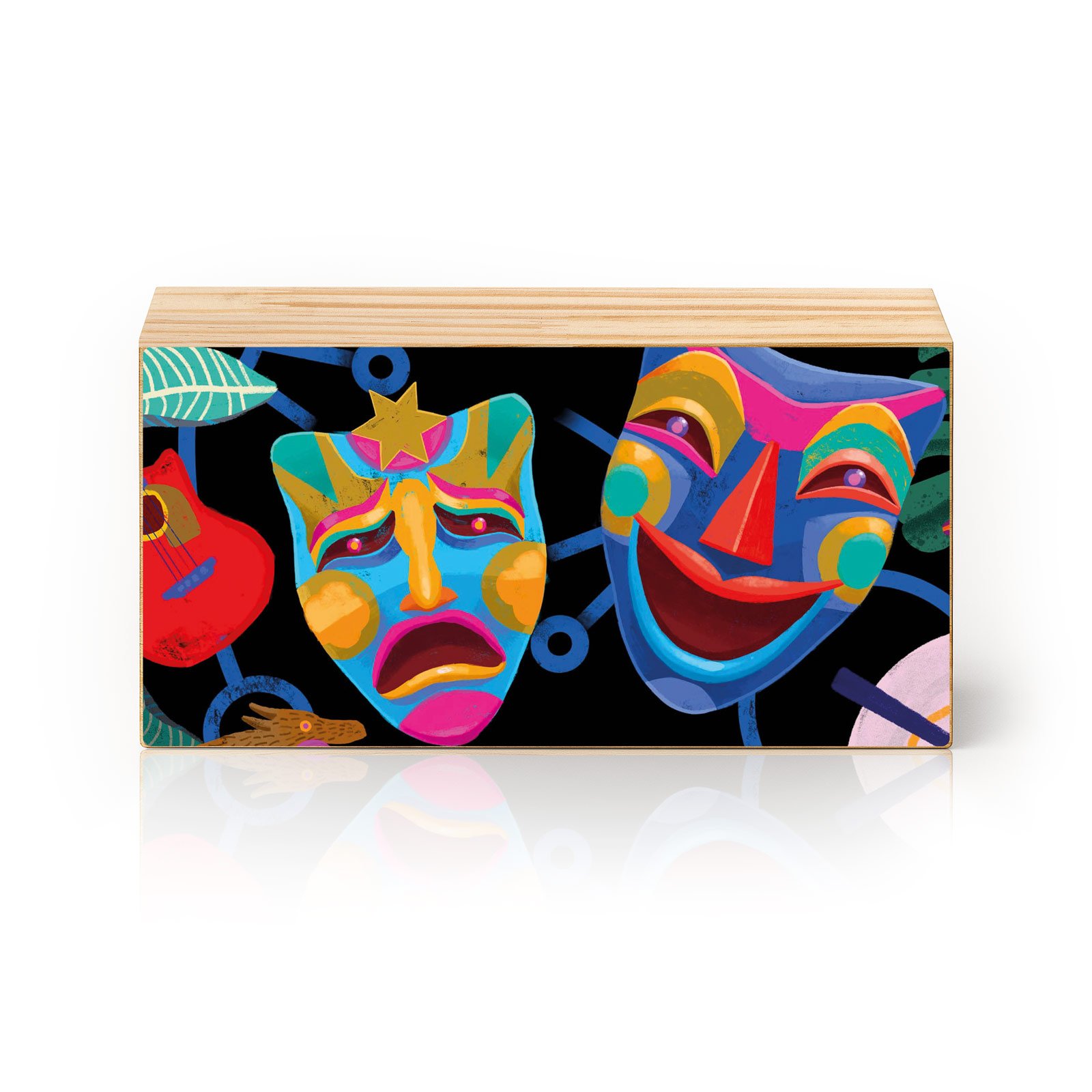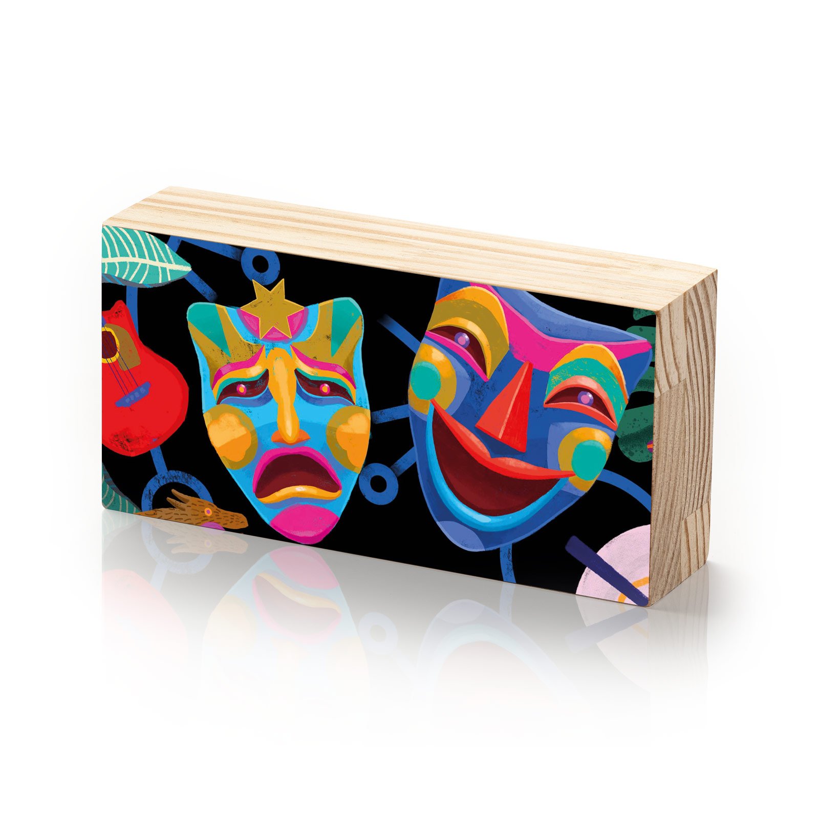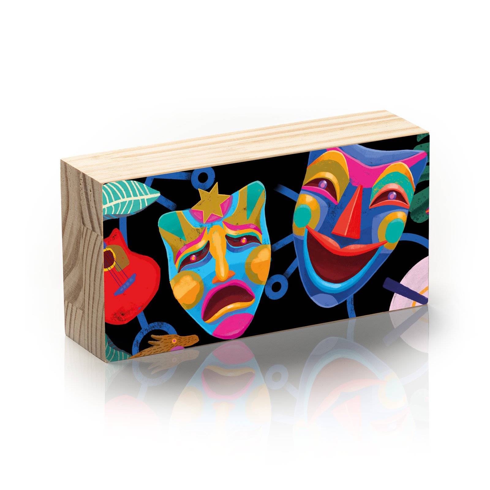 Dê vida às emoções com o Totem Decorativo “Entre Risos e Lágrimas”, uma peça expressiva da linha Horizon da HomeTotem criada por Rogério Pedro. Inspirada nas máscaras clássicas do teatro, esta obra funde a alegria e a dor em uma explosão de cores, formas e símbolos. Um tributo visual à força da arte cênica — onde cada expressão é um mundo e cada cena, uma verdade.