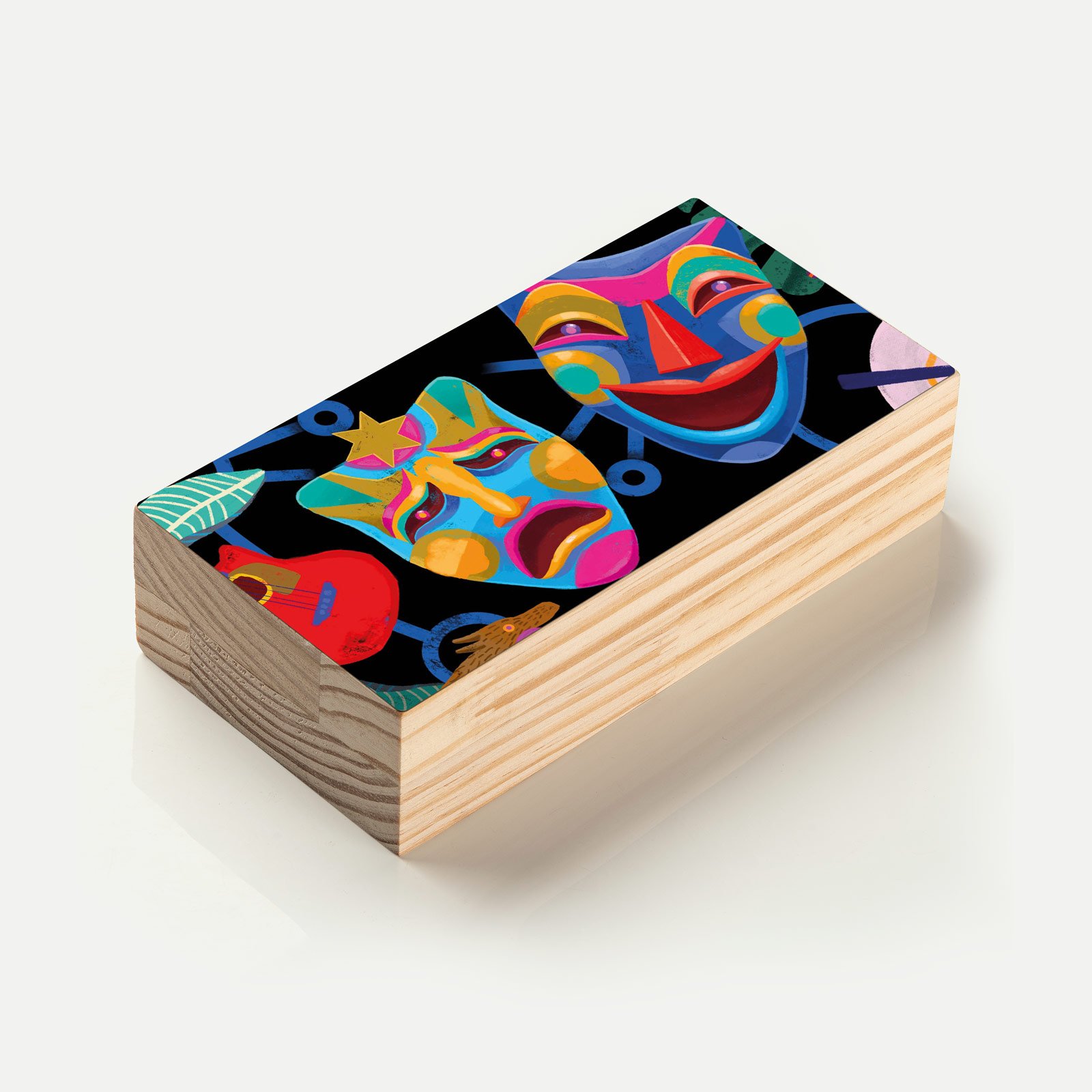 - Material: madeira pinus natural com impressão Fine Art e acabamento em metacrilato;