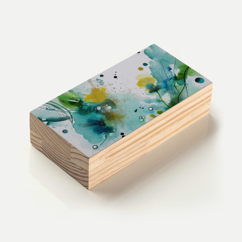 - Material: madeira pinus natural com impressão Fine Art e acabamento em metacrilato;