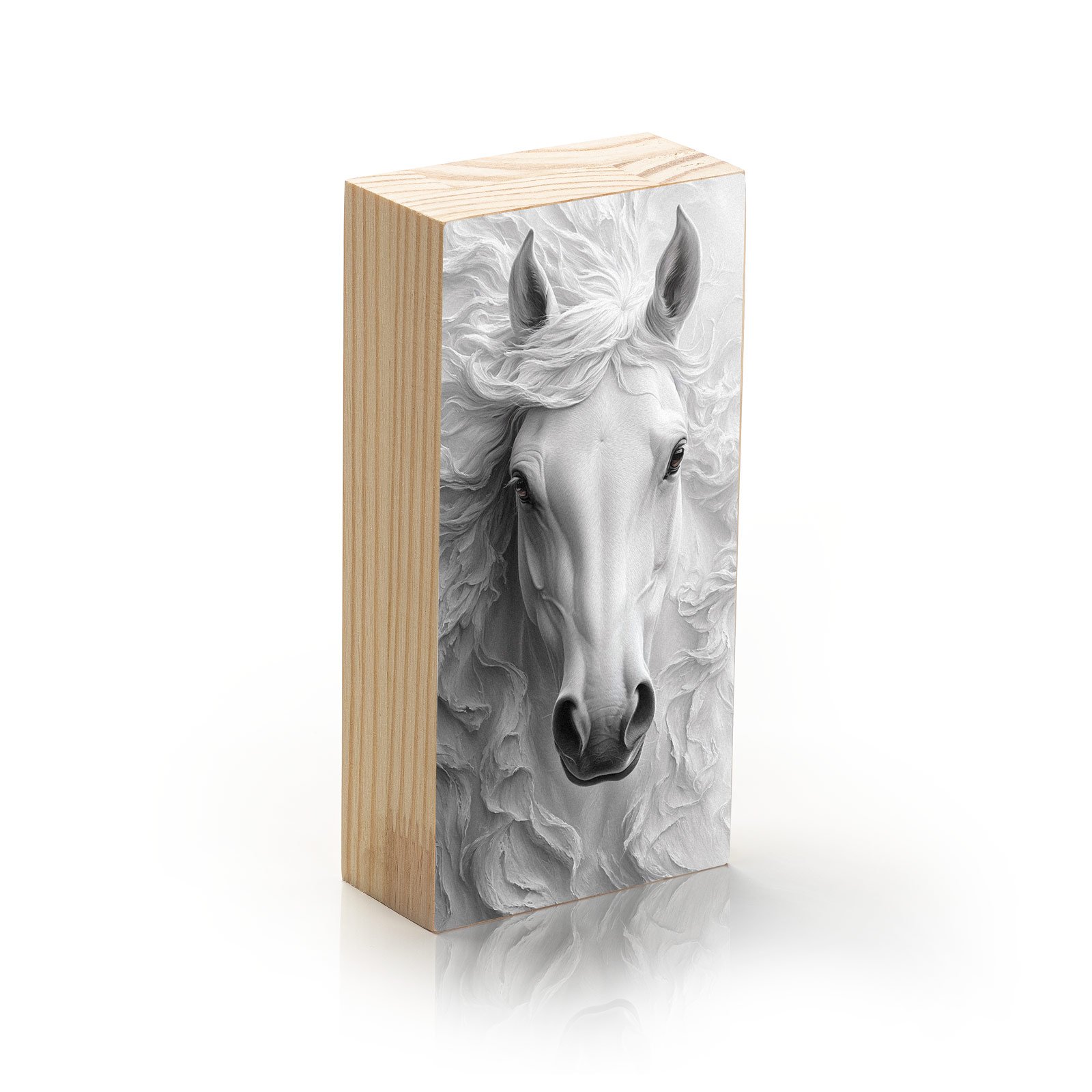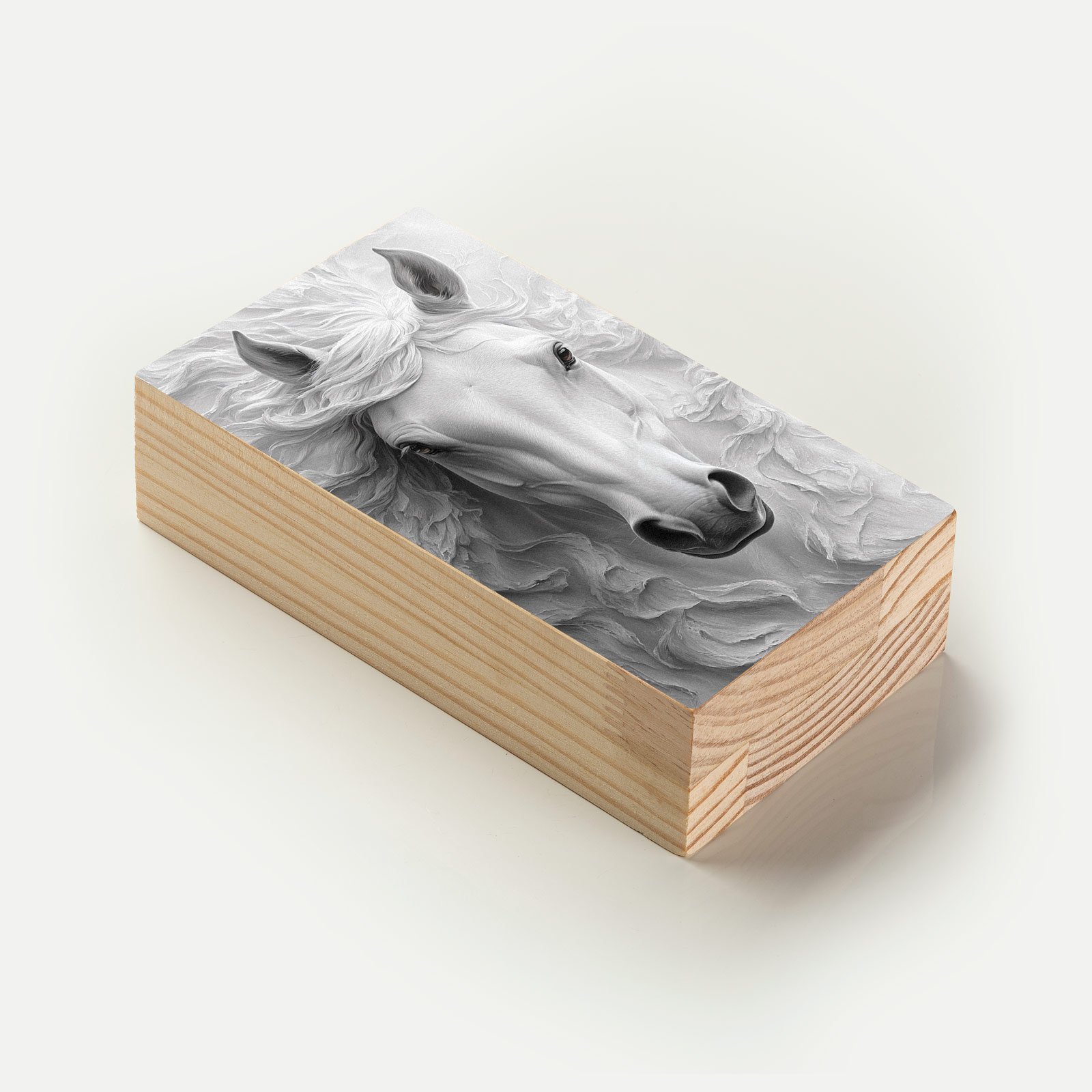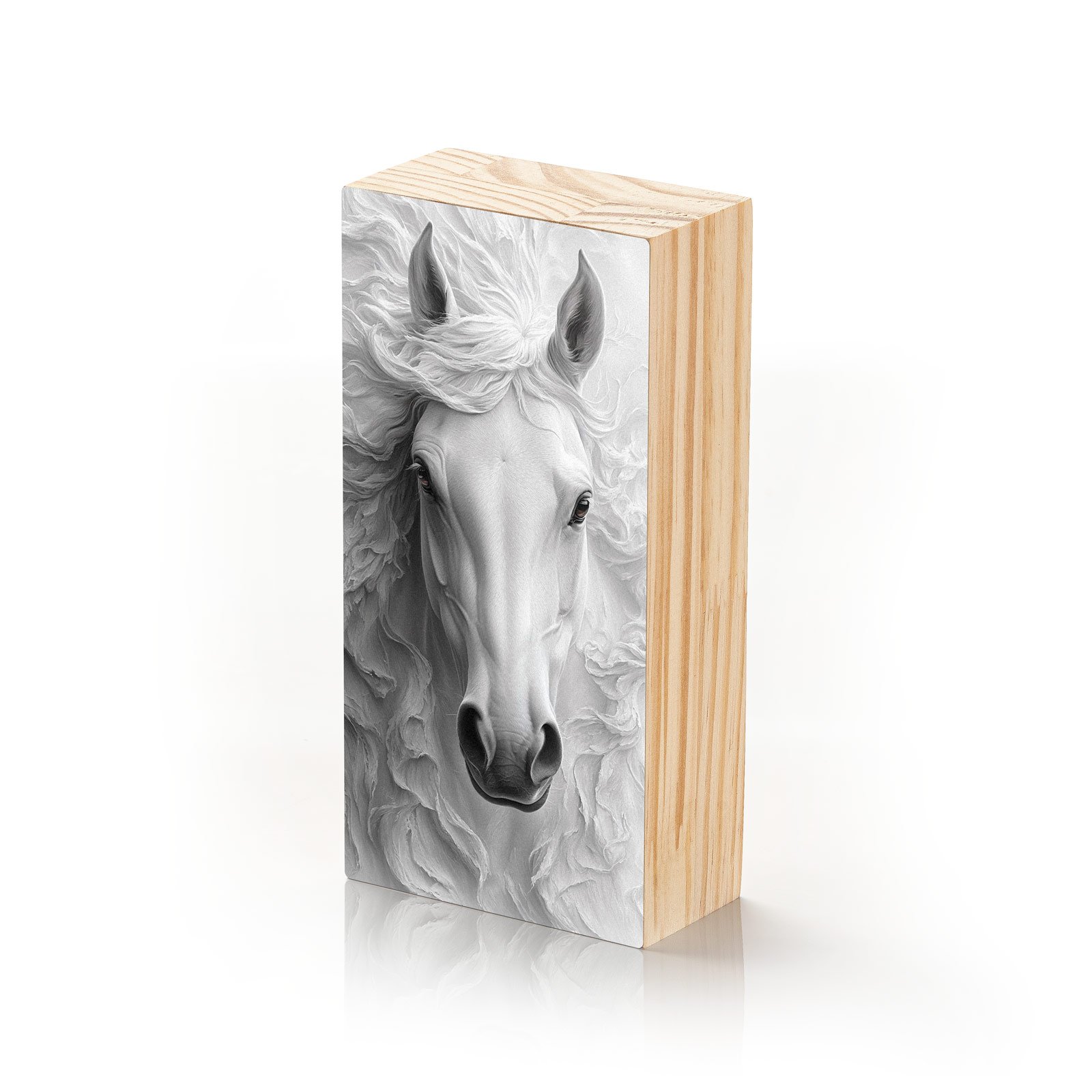 Intenso e majestoso, o Totem Decorativo ‘Espírito Indomável’ da Linha Vert captura a força e a liberdade de um cavalo branco em uma obra impressionantemente detalhada. Com um olhar penetrante e a crina em movimento, a imagem em preto e branco transmite potência, elegância e um espírito selvagem que ressoa profundamente com a ideia de força interior e independência.