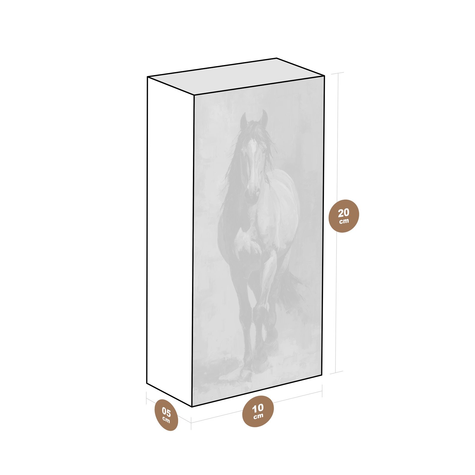 - Dimensões: 20 cm (altura) x 10 cm (largura) x 5 cm (profundidade);