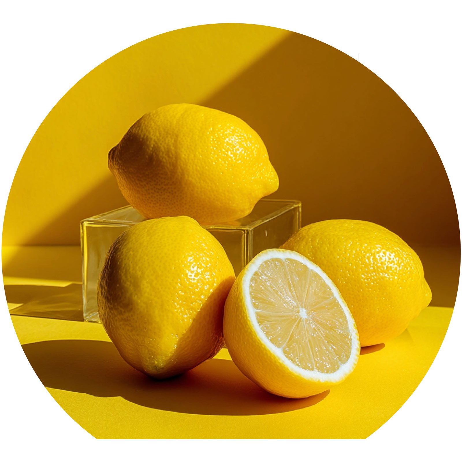 Com sua explosão vibrante de amarelo, “Essência Solar” traduz em arte a energia e o frescor do limão, símbolo de vitalidade e renovação. A composição geométrica entre formas naturais e o brilho suave da luz revela a simplicidade sofisticada de quem encontra beleza no cotidiano.