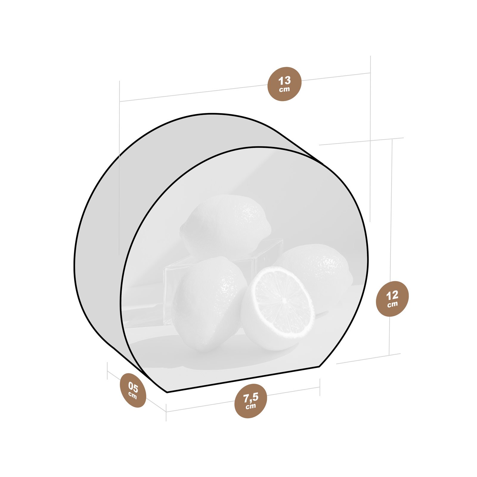- Dimensões: 13 cm (largura) x 12 cm (altura) x 5 cm (profundidade);