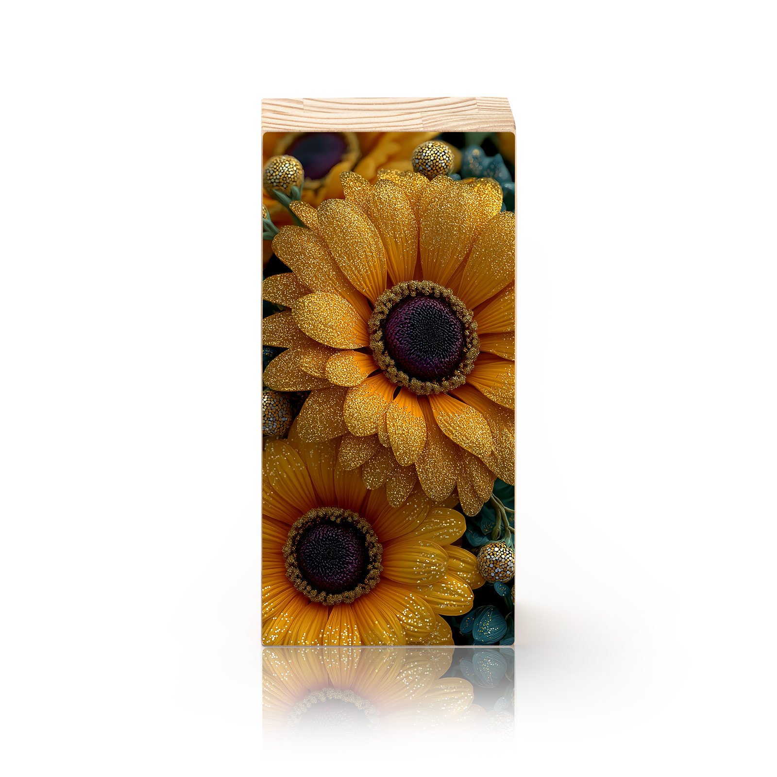 O Totem “Eternidade em Girassóis” ideal para salas de estar iluminadas, varandas internas, cozinhas gourmet ou ambientes que pedem frescor e vitalidade.