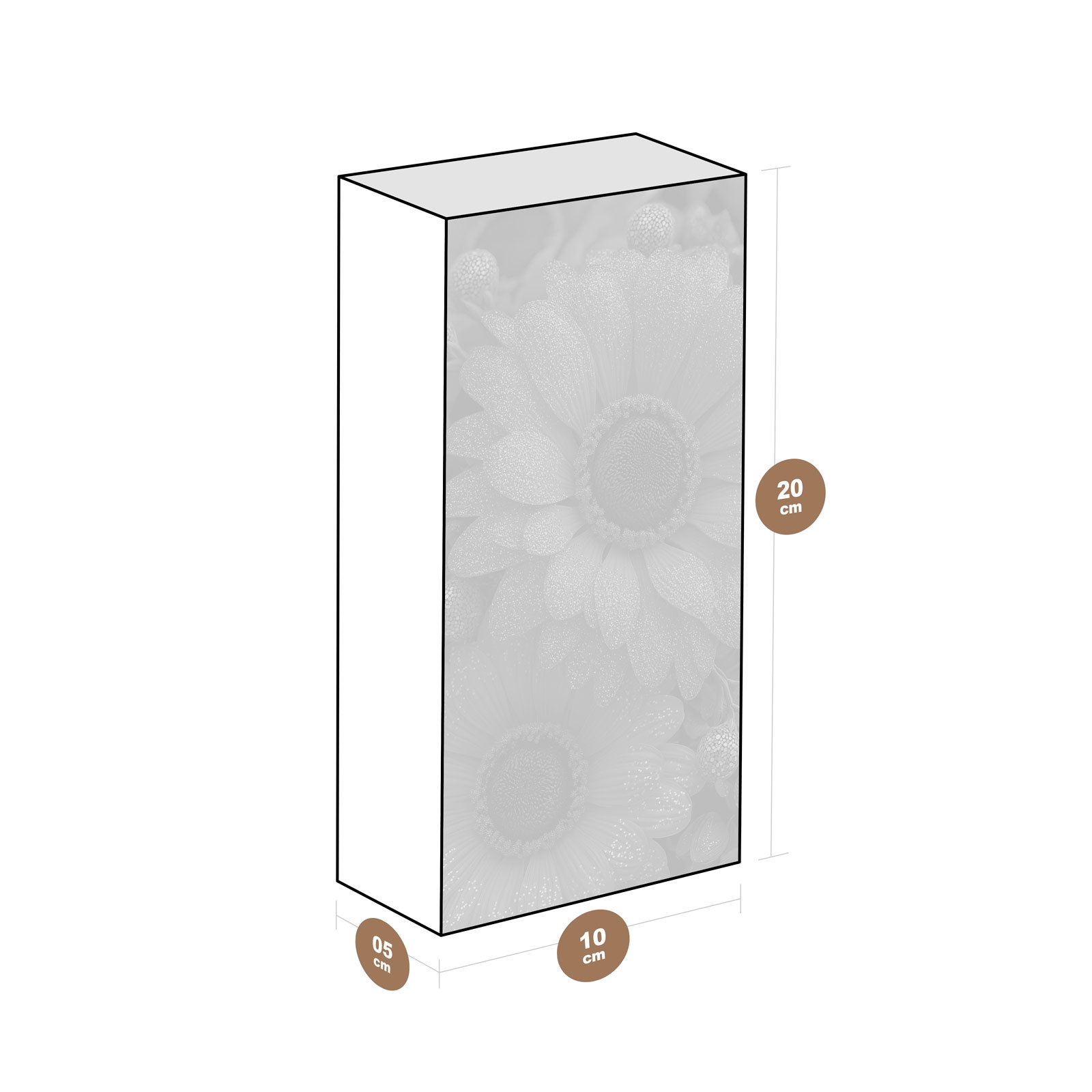 - Dimensões: 20 cm (altura) x 10 cm (largura) x 5 cm (profundidade);