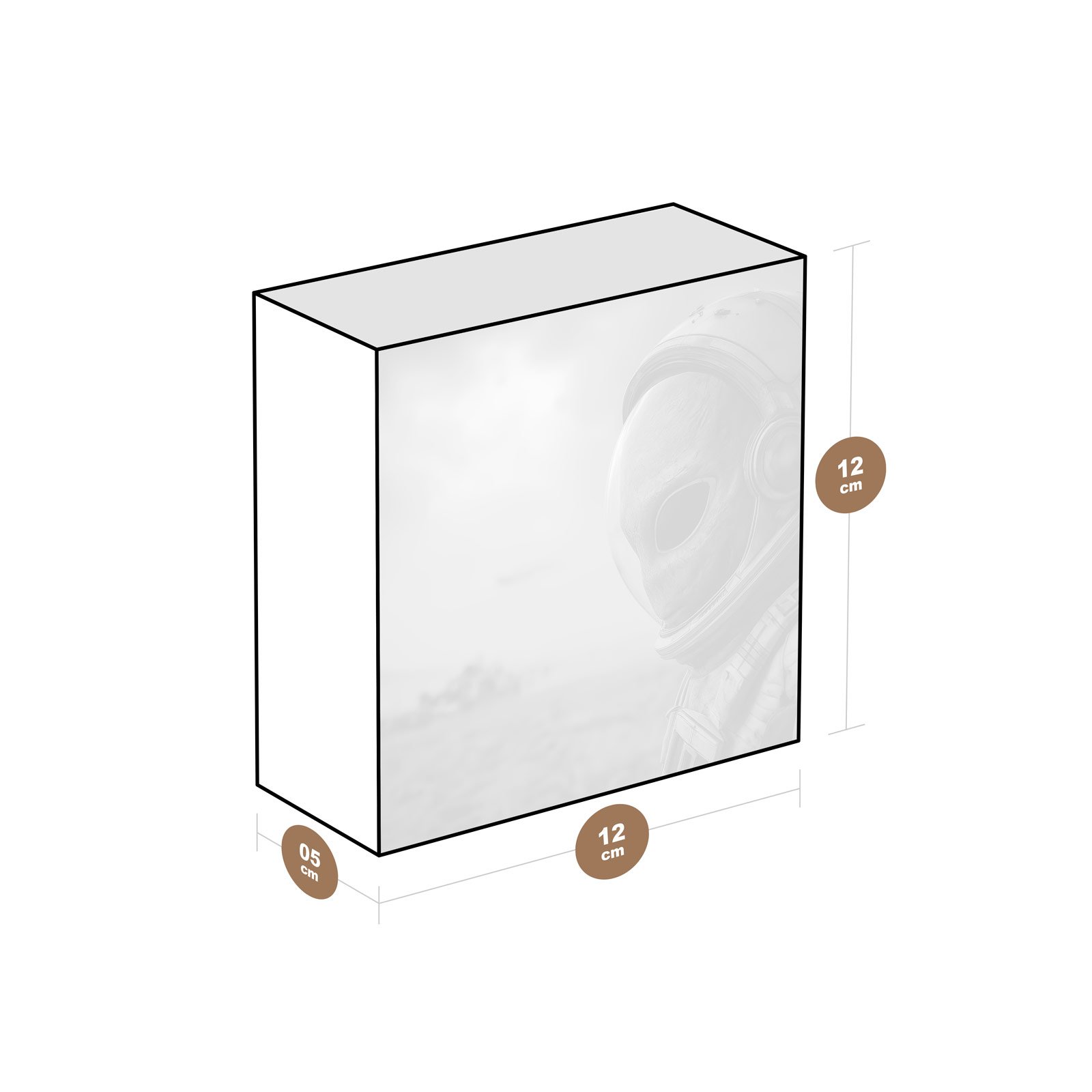 - Dimensões: 12 cm (largura) x 12 cm (altura) x 5 cm (profundidade)