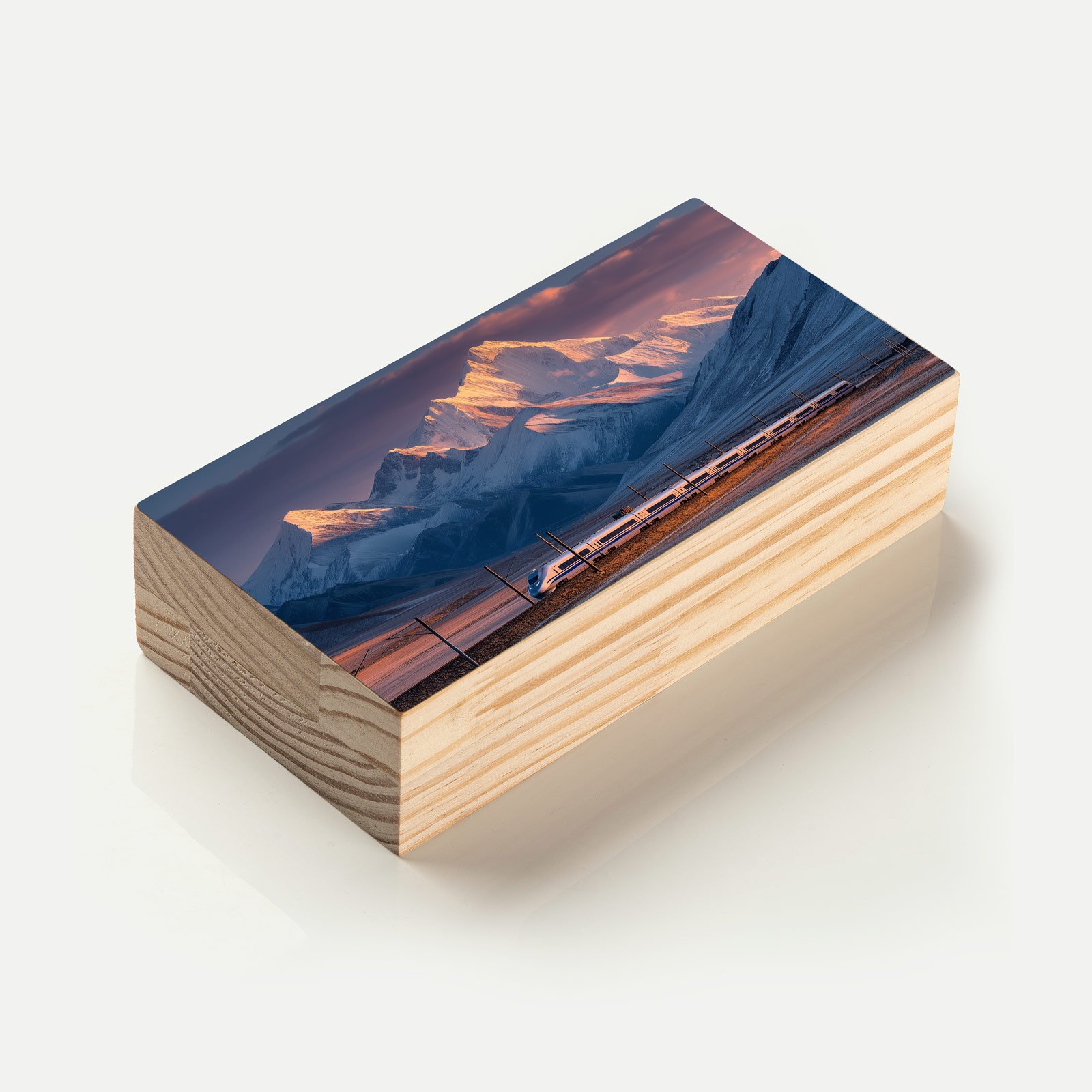 Cortando vales gelados e montanhas eternas, “Expresso dos Himalaias” captura a harmonia entre a força da natureza e a inovação humana. O trem avança diante de picos imponentes banhados pela luz dourada do entardecer, simbolizando movimento, conquista e contemplação. Uma peça que conecta o olhar ao horizonte e transforma qualquer ambiente em convite para viajar sem sair do lugar.