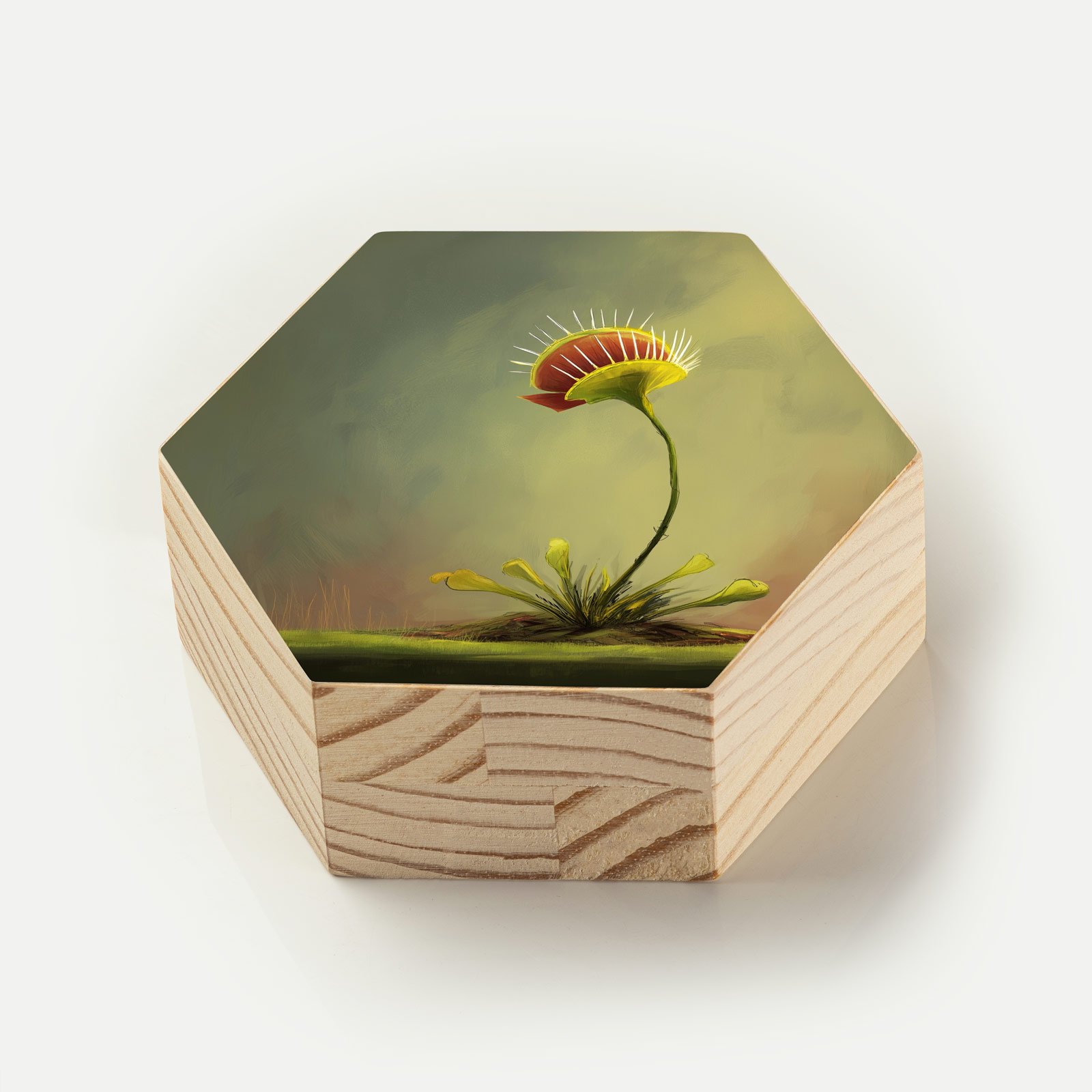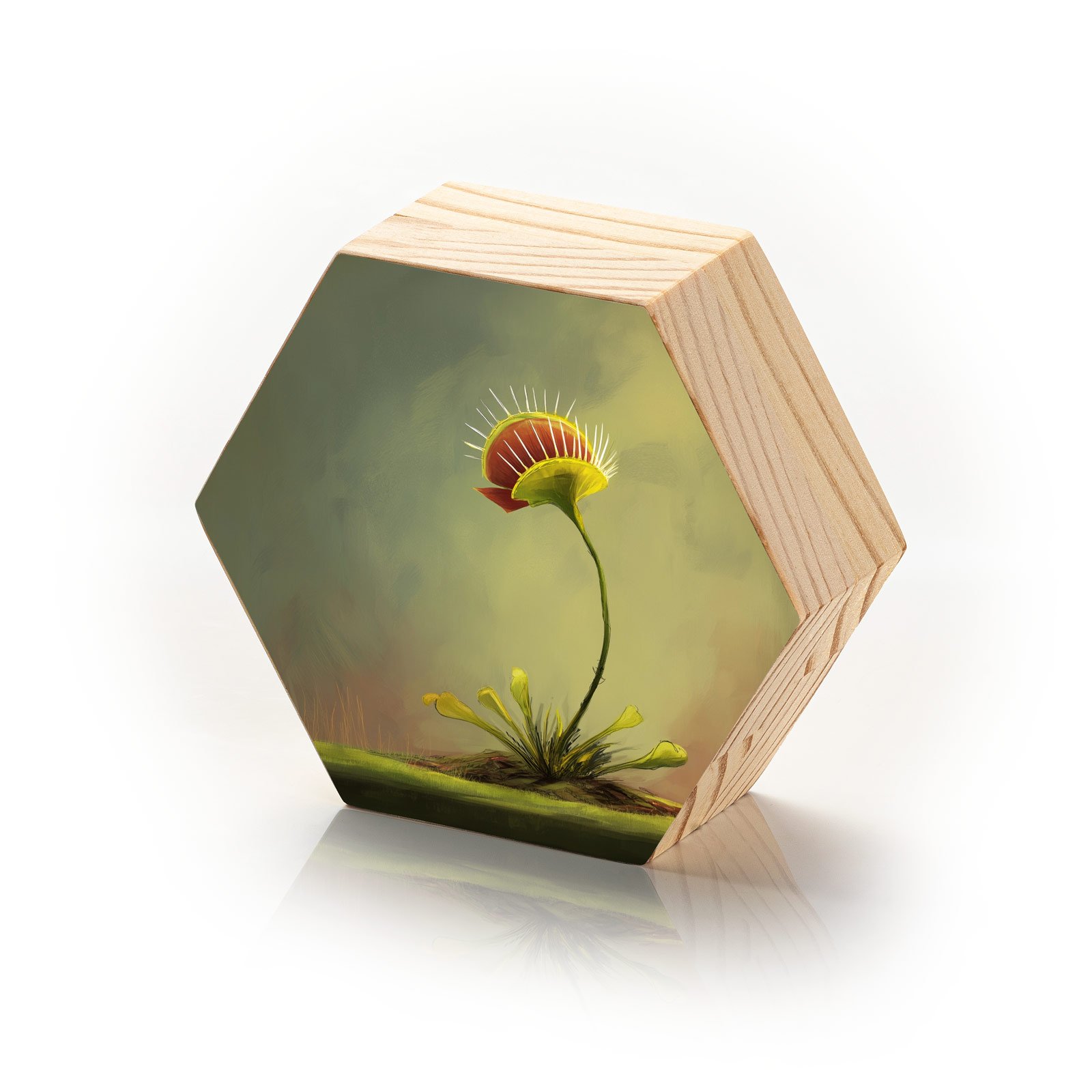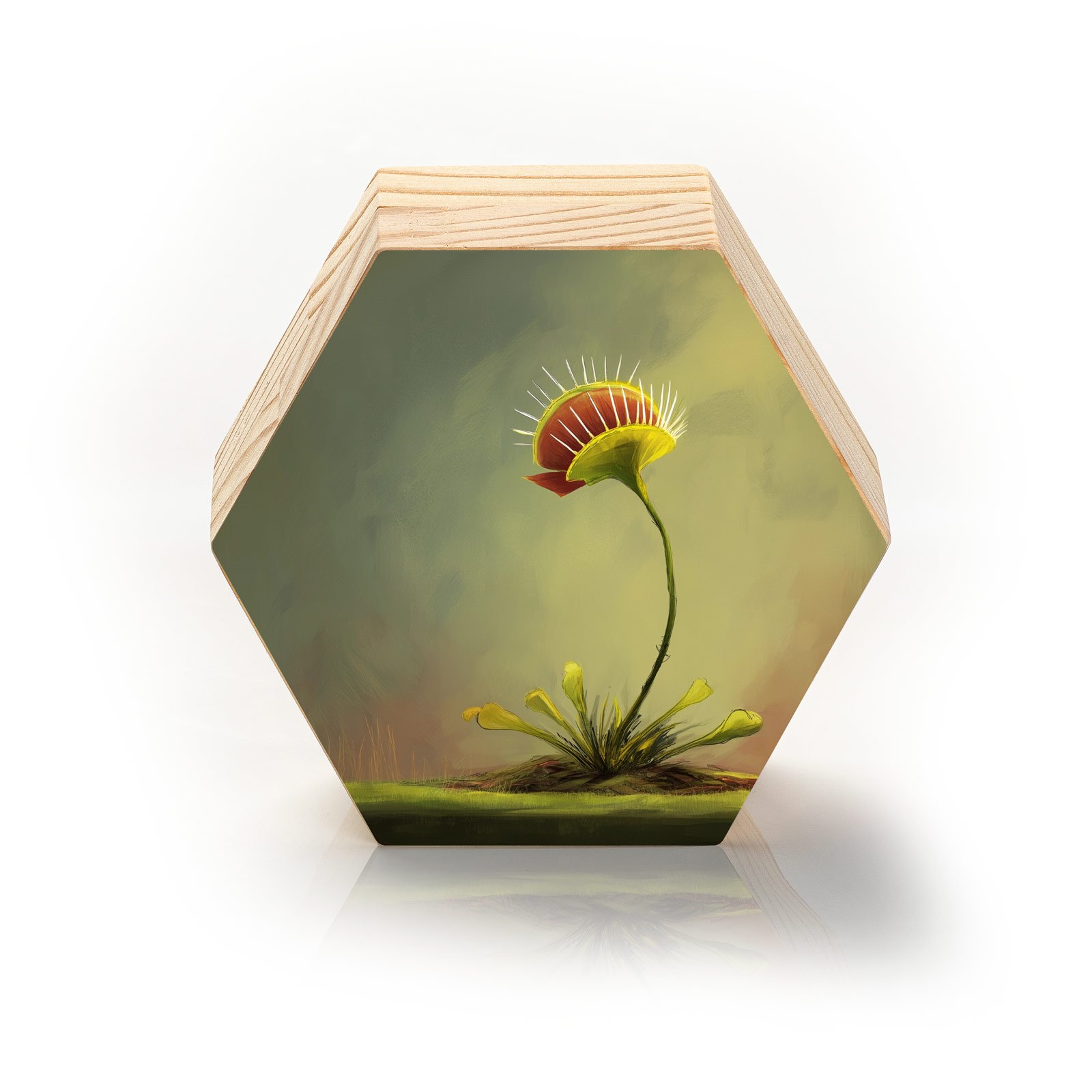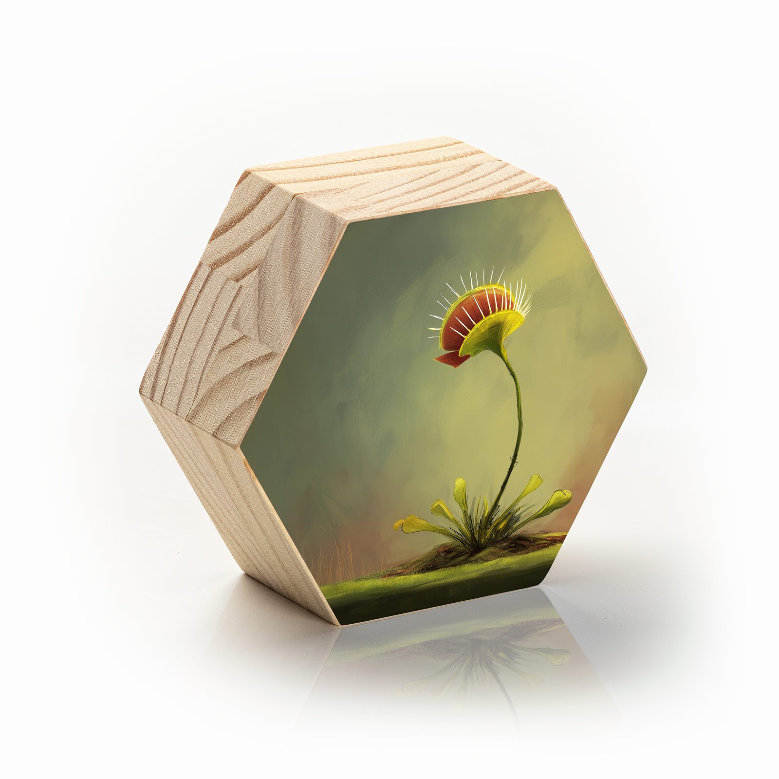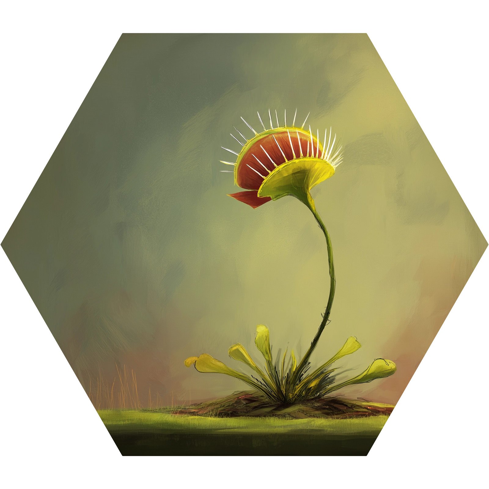 Delicada e feroz, natural e extraordinária. O Totem Decorativo “Fera Botânica” da Linha Hezag traz à tona o encanto das plantas carnívoras, unindo beleza e instinto em uma ilustração que exala personalidade. Com traços artísticos suaves e cores terrosas envolventes, a peça convida a refletir sobre os contrastes da natureza viva.
