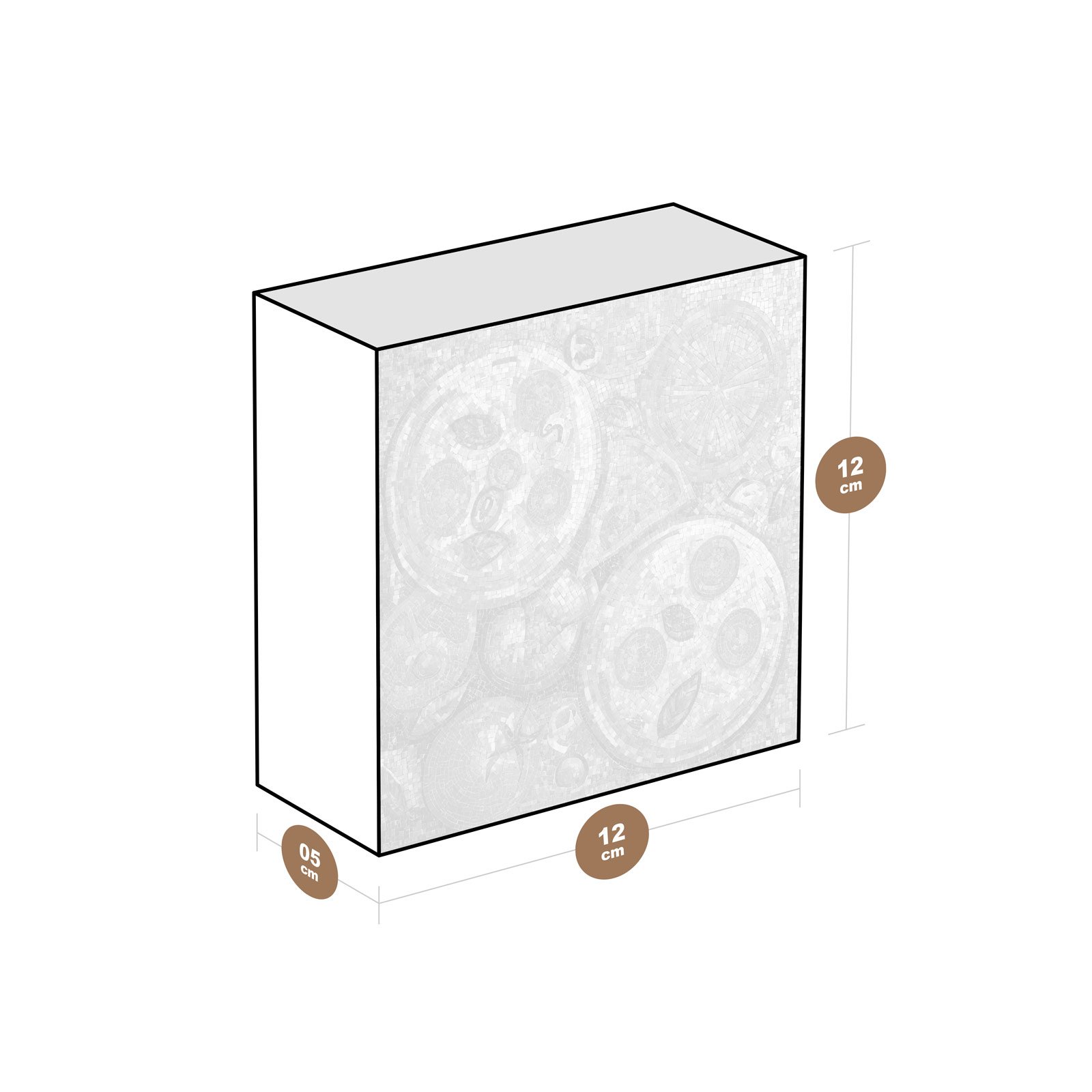 - Dimensões: 12 cm (largura) x 12 cm (altura) x 6 cm (profundidade);