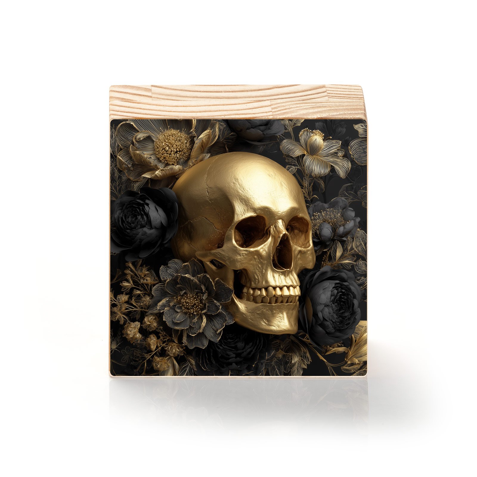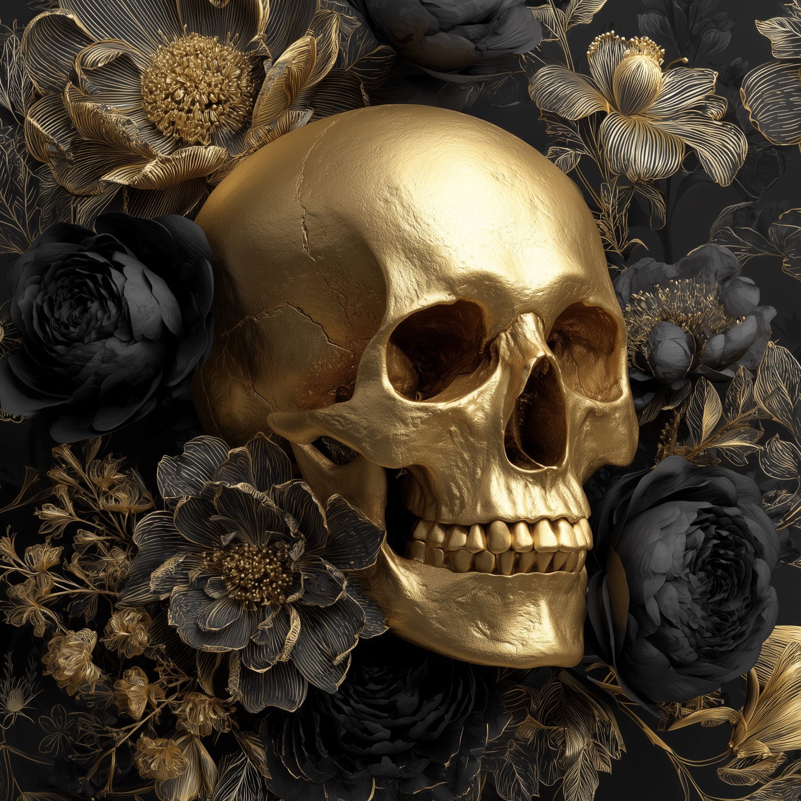 Entre a efemeridade das flores e a permanência da morte, “Flor e Caveira Dourada” da Linha Square, é uma obra que confronta beleza e transitoriedade. Com uma caveira dourada envolta por flores negras e douradas, esse totem é um manifesto visual de força, elegância sombria e reflexão sobre o tempo.