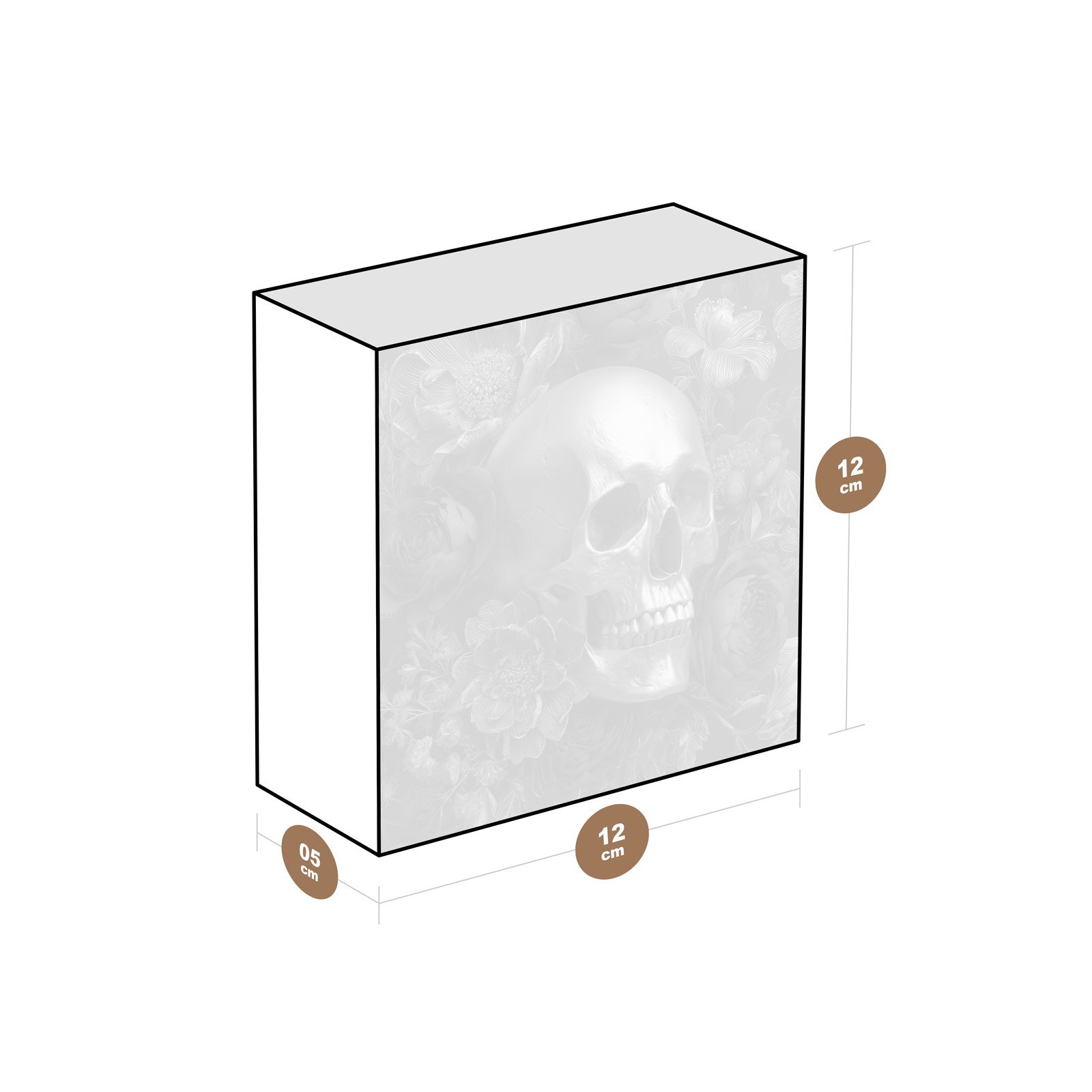 - Dimensões: 12 cm (largura) x 12 cm (altura) x 6 cm (profundidade);