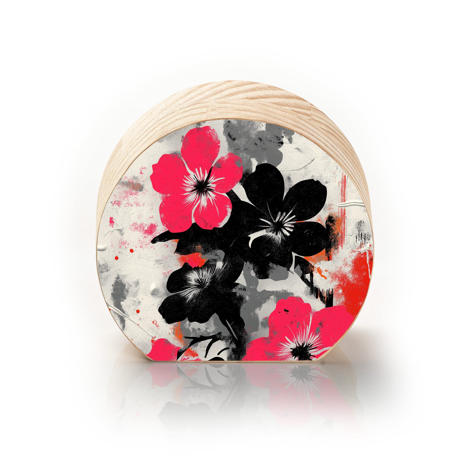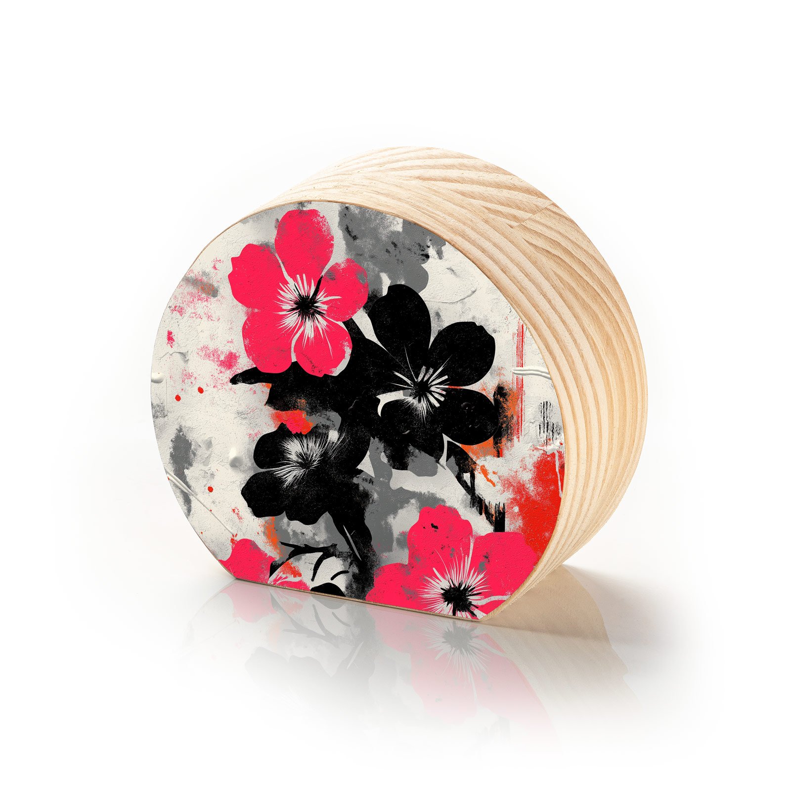 Nem tudo que floresce é suave. “Flores em Rebeldia” da Linha Luna, mistura o delicado com o caótico, trazendo um jardim grafitado em preto e rosa vibrante sobre texturas urbanas em cinza. Uma obra que ecoa atitude e poesia em igual medida.