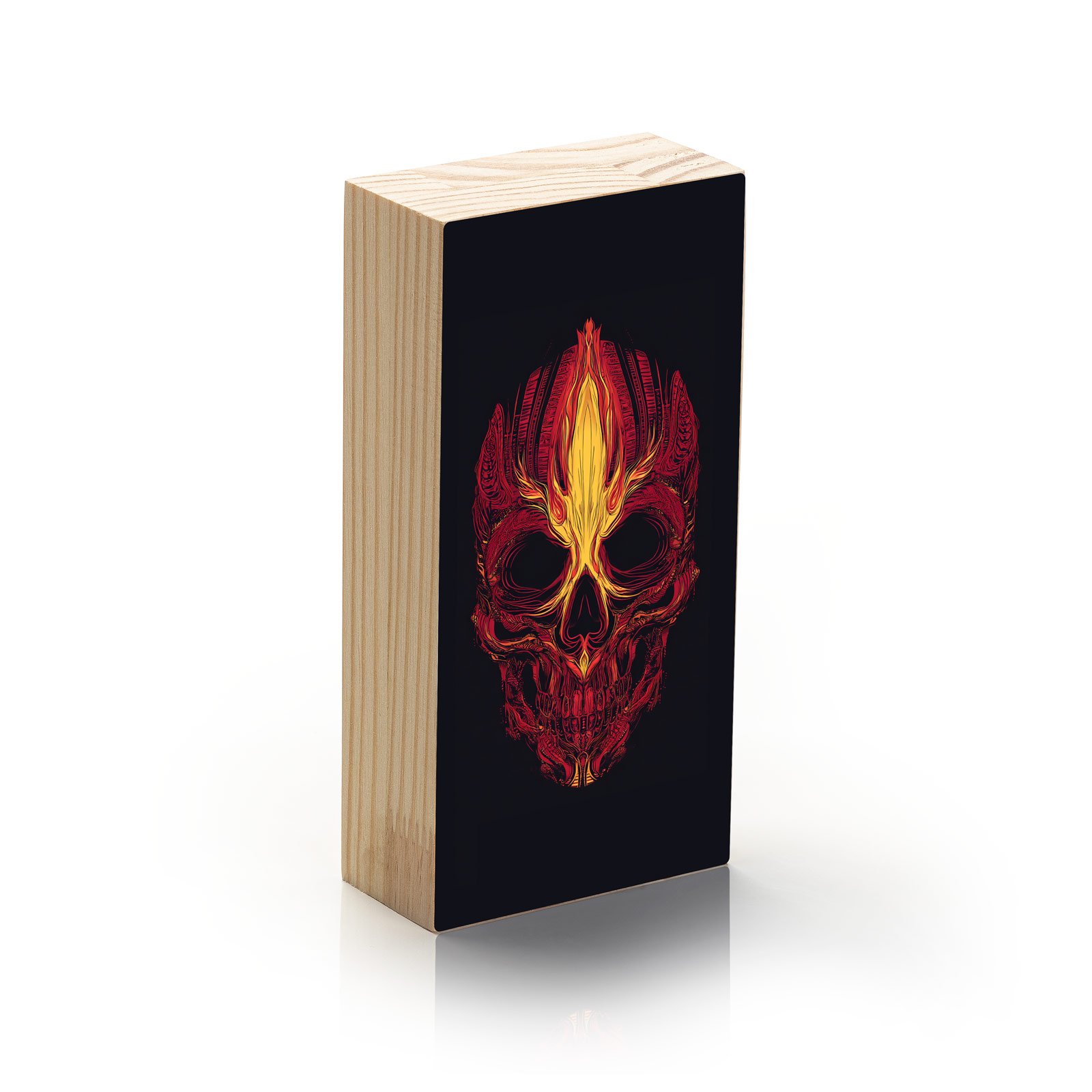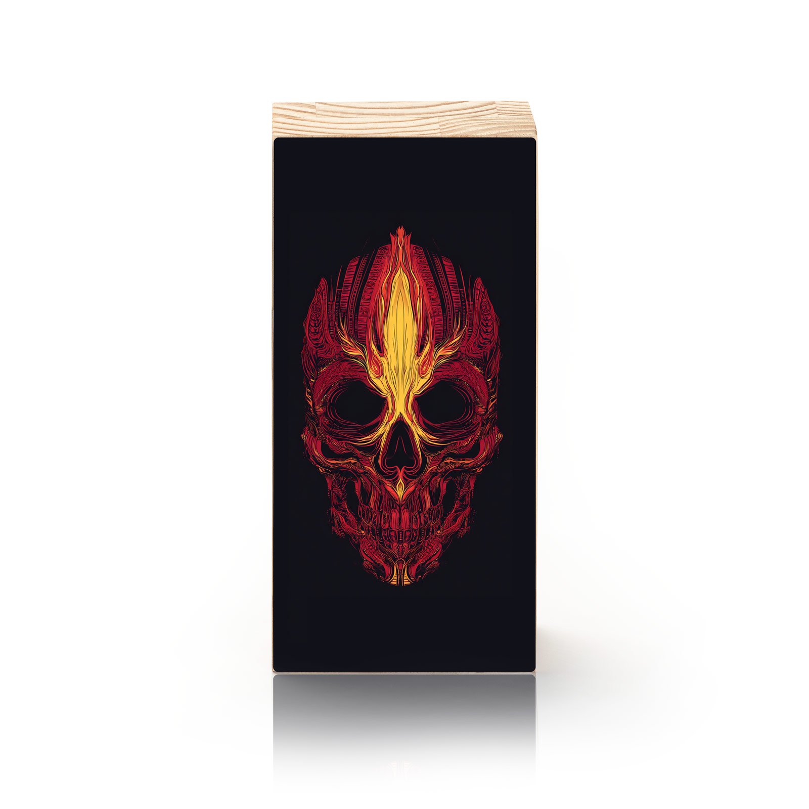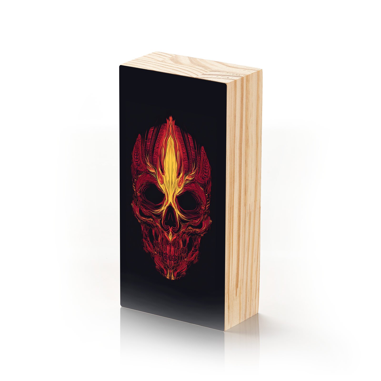 Sinta o calor do espírito indomável com o Totem Decorativo “Fogo Ancestral” da Linha Vert. Esta peça poderosa traz uma caveira envolta em chamas tribais, representando a energia bruta da transformação, da memória dos que vieram antes e da força que arde dentro de cada alma guerreira.