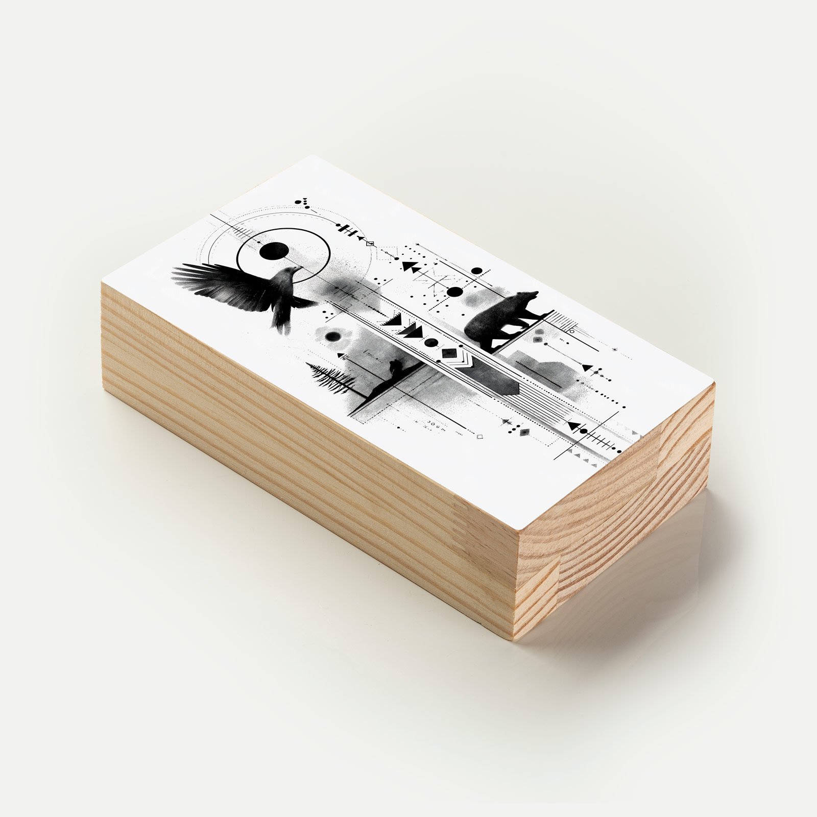 - Material: madeira pinus natural com impressão Fine Art e acabamento em metacrilato;