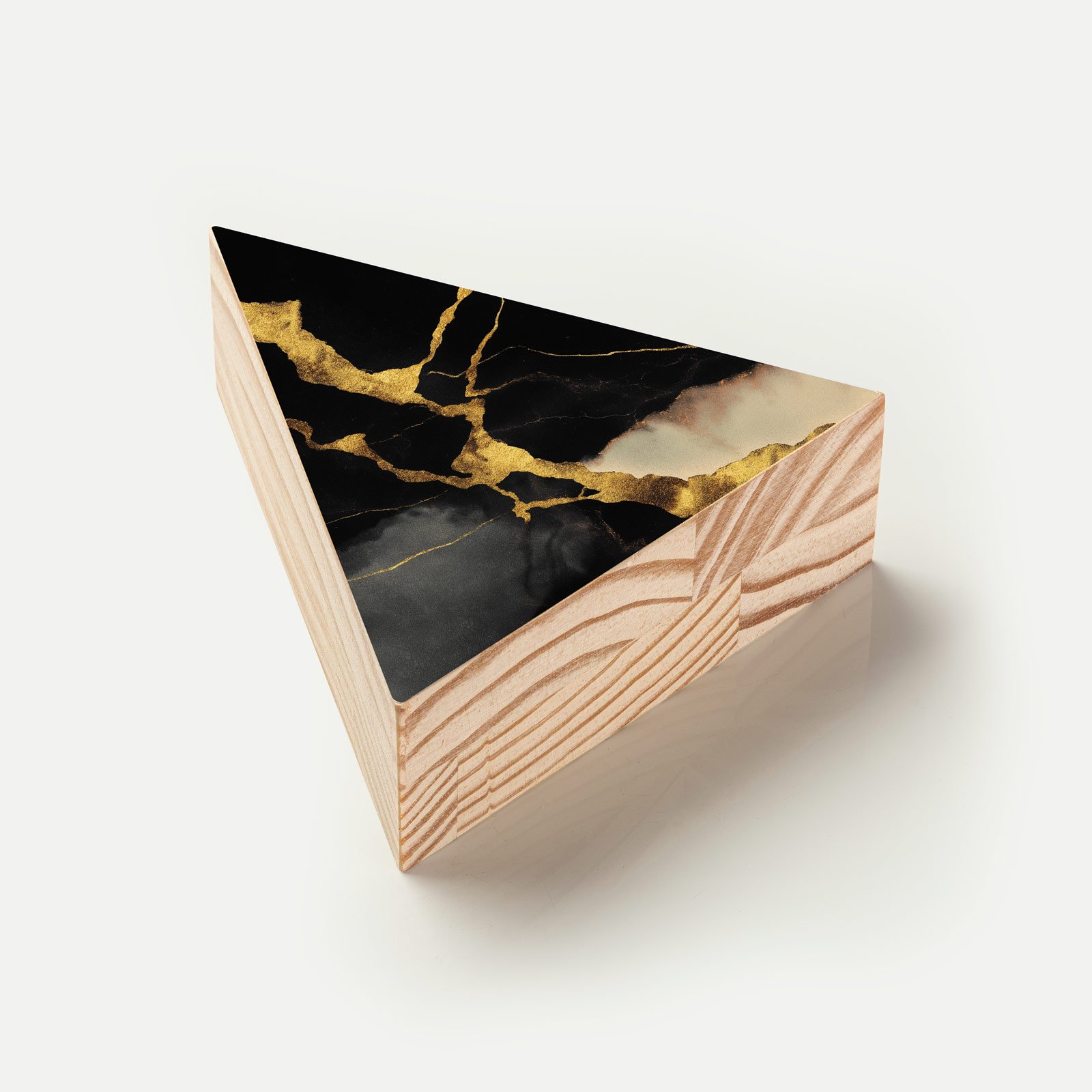 A beleza que emerge da ruptura. O totem “Fratura Nobre” da Linha Trion, é uma ode ao Kintsugi a arte de valorizar as cicatrizes. Com veios dourados que cortam o fundo preto profundo como rachaduras sagradas, ele representa a força que nasce da imperfeição. Luxuoso, simbólico, atemporal.